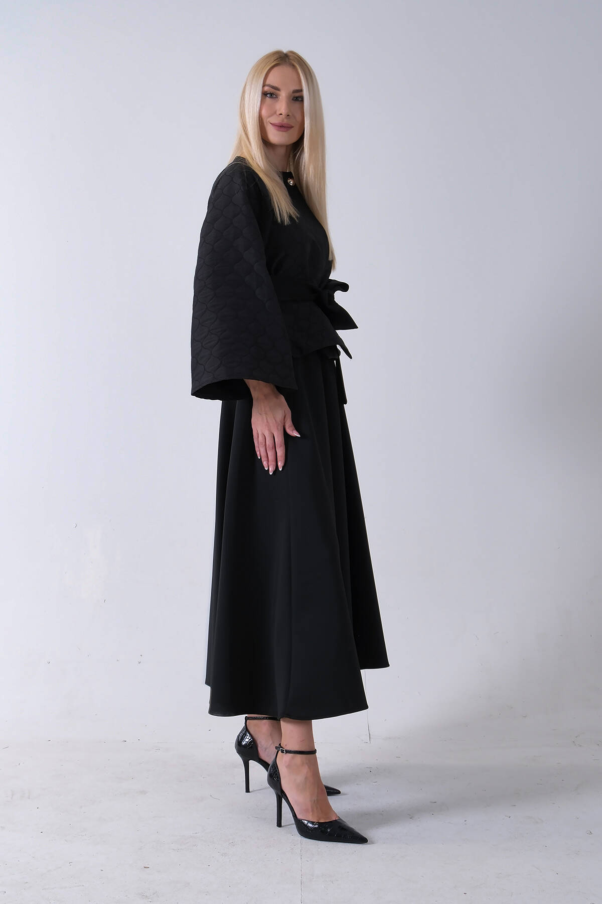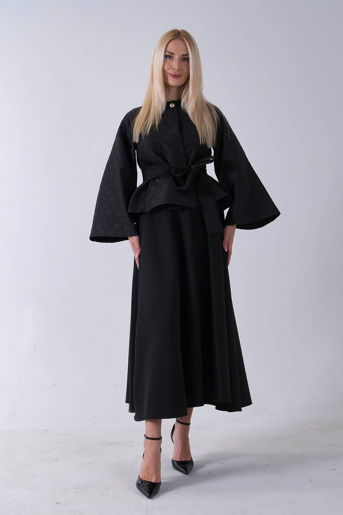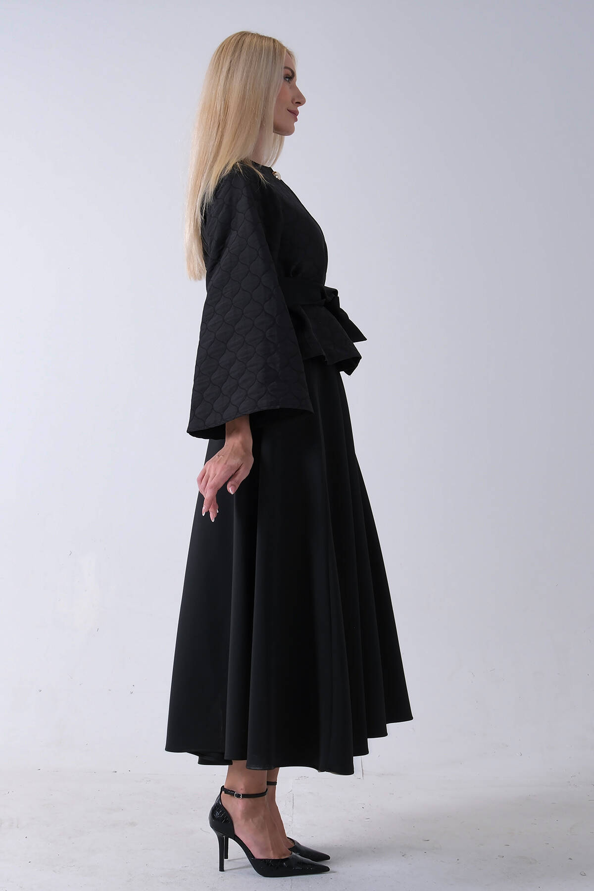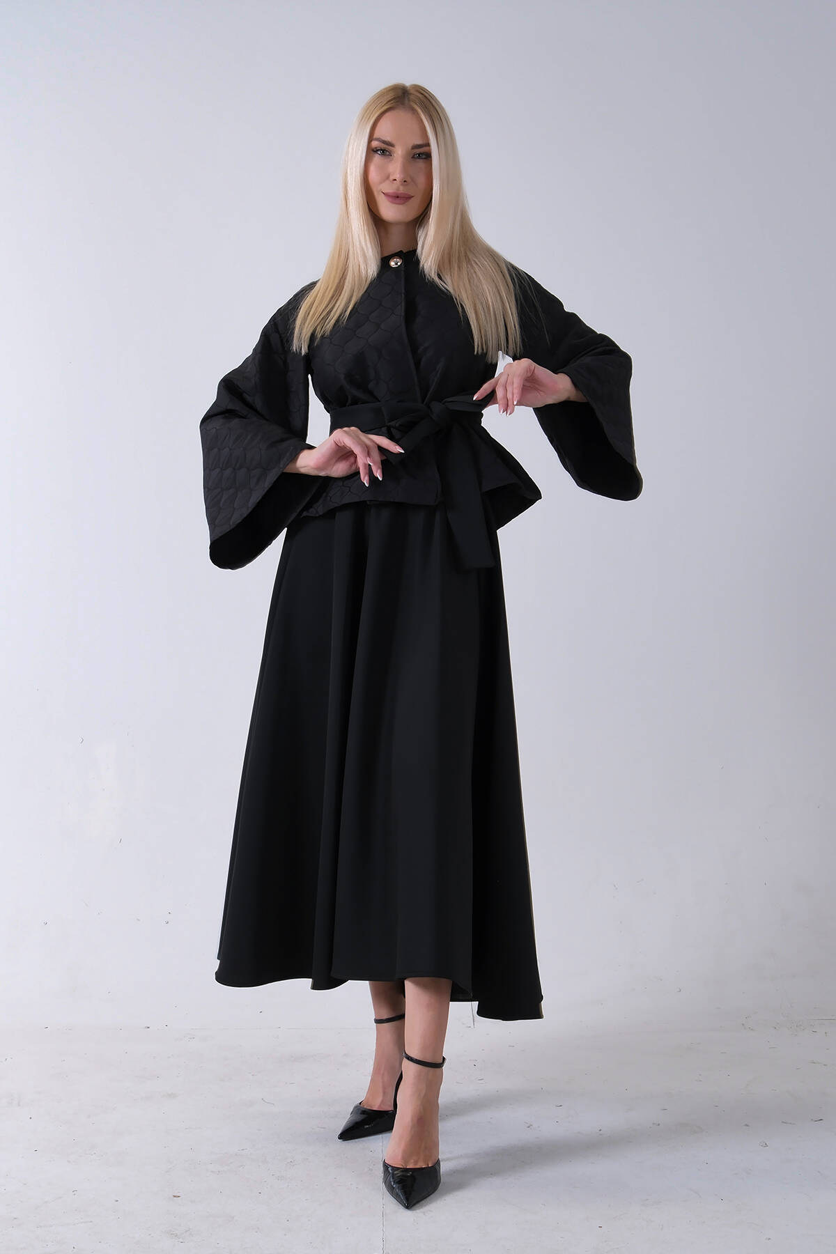 Siyah Kapitone Desenli Ceket Etekli Scuba Takım 5303163.01