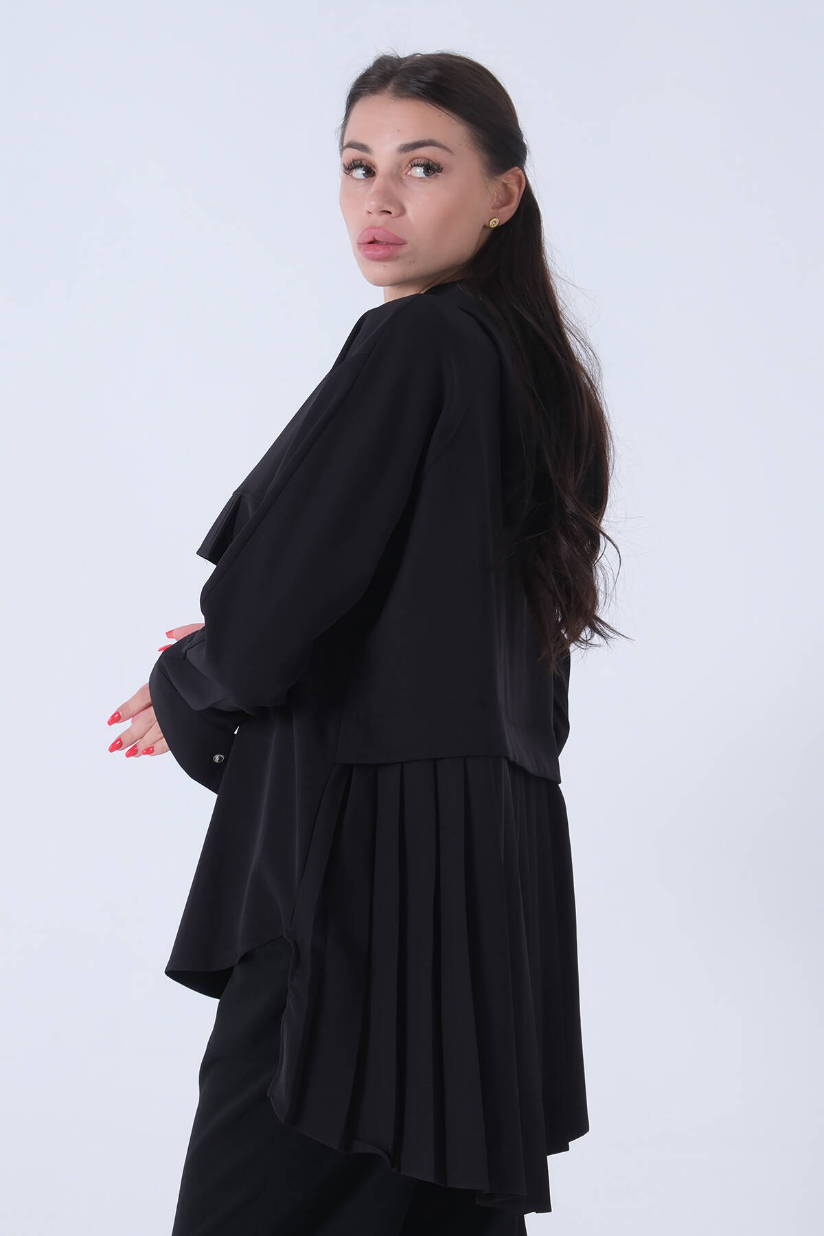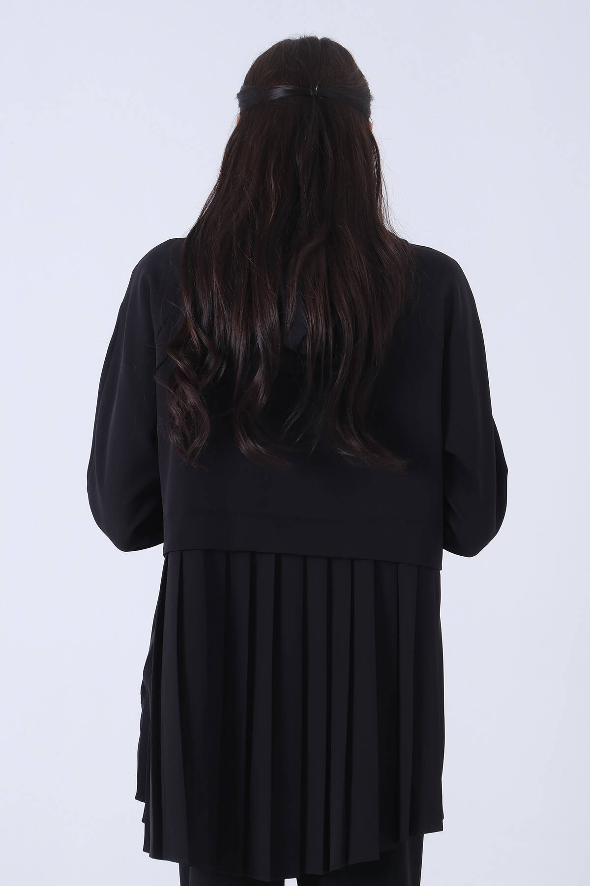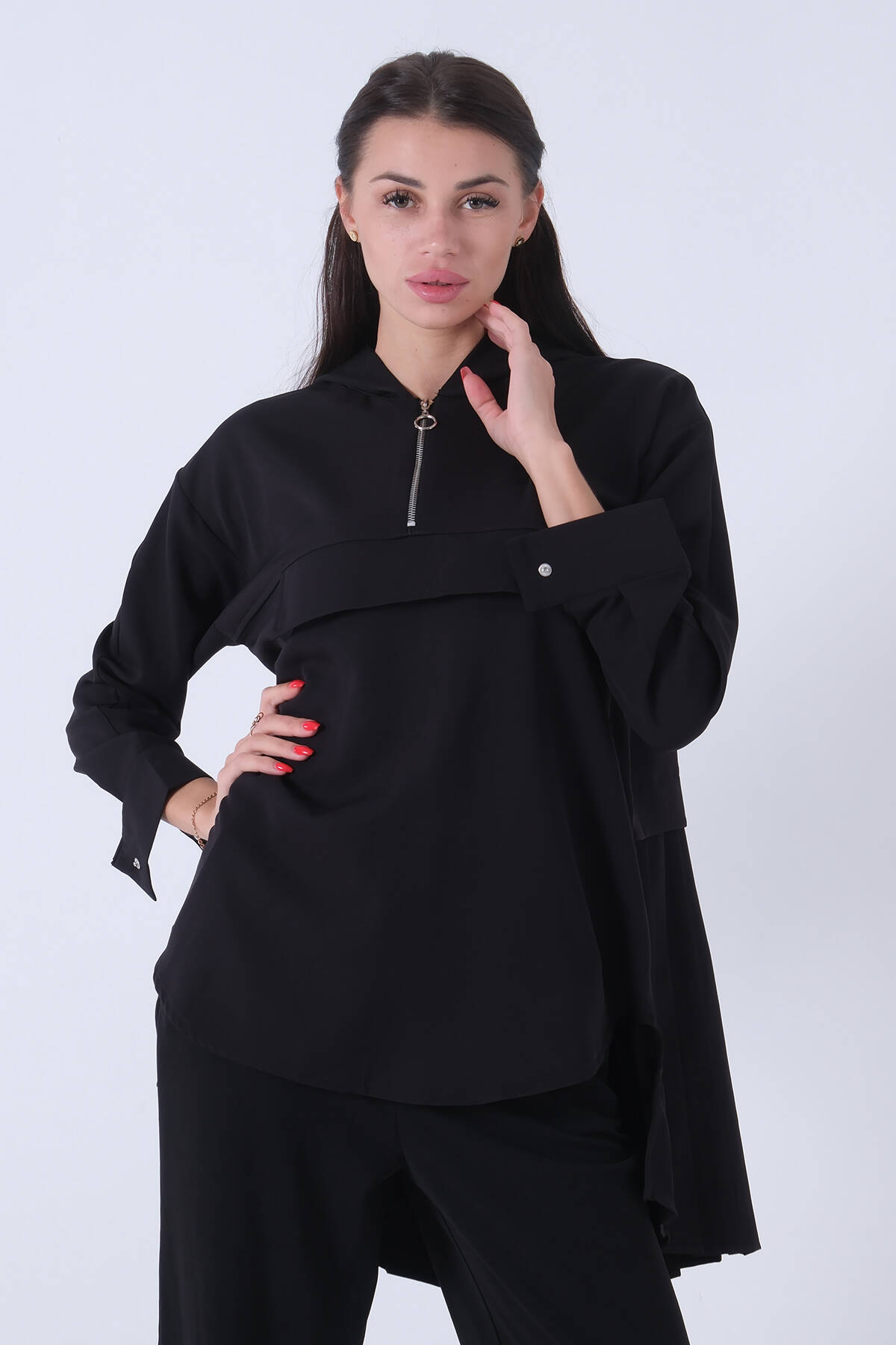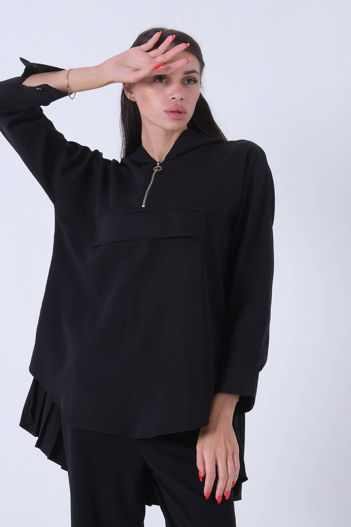 Siyah Kapüşon Fermuarlı Eteği Piliseli Tunik 3972931.01