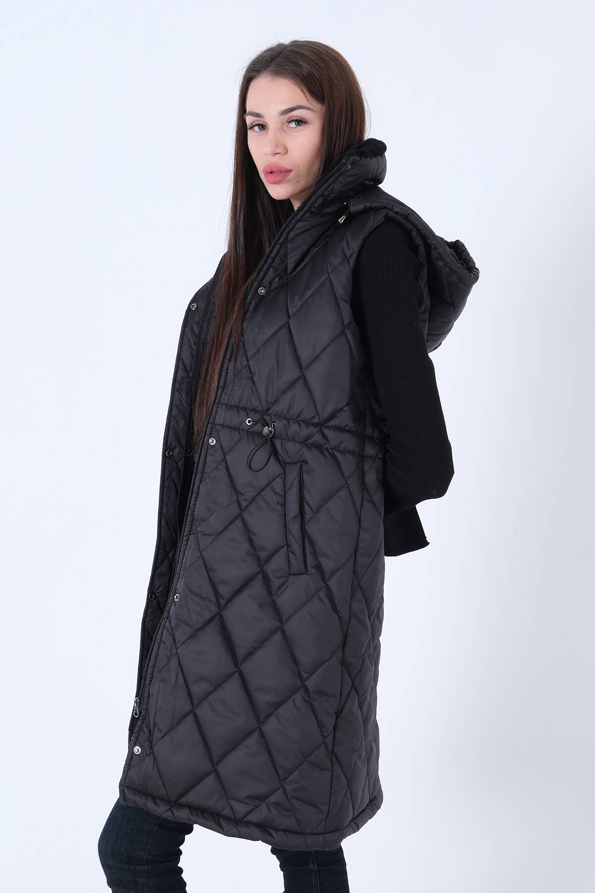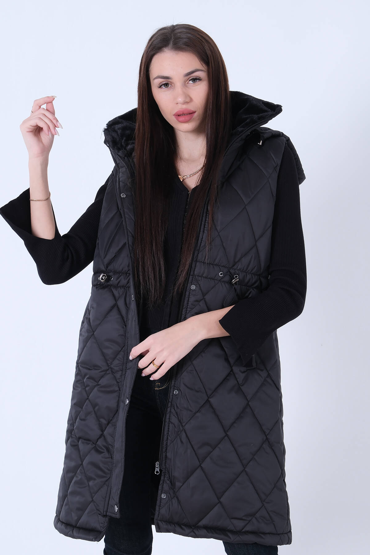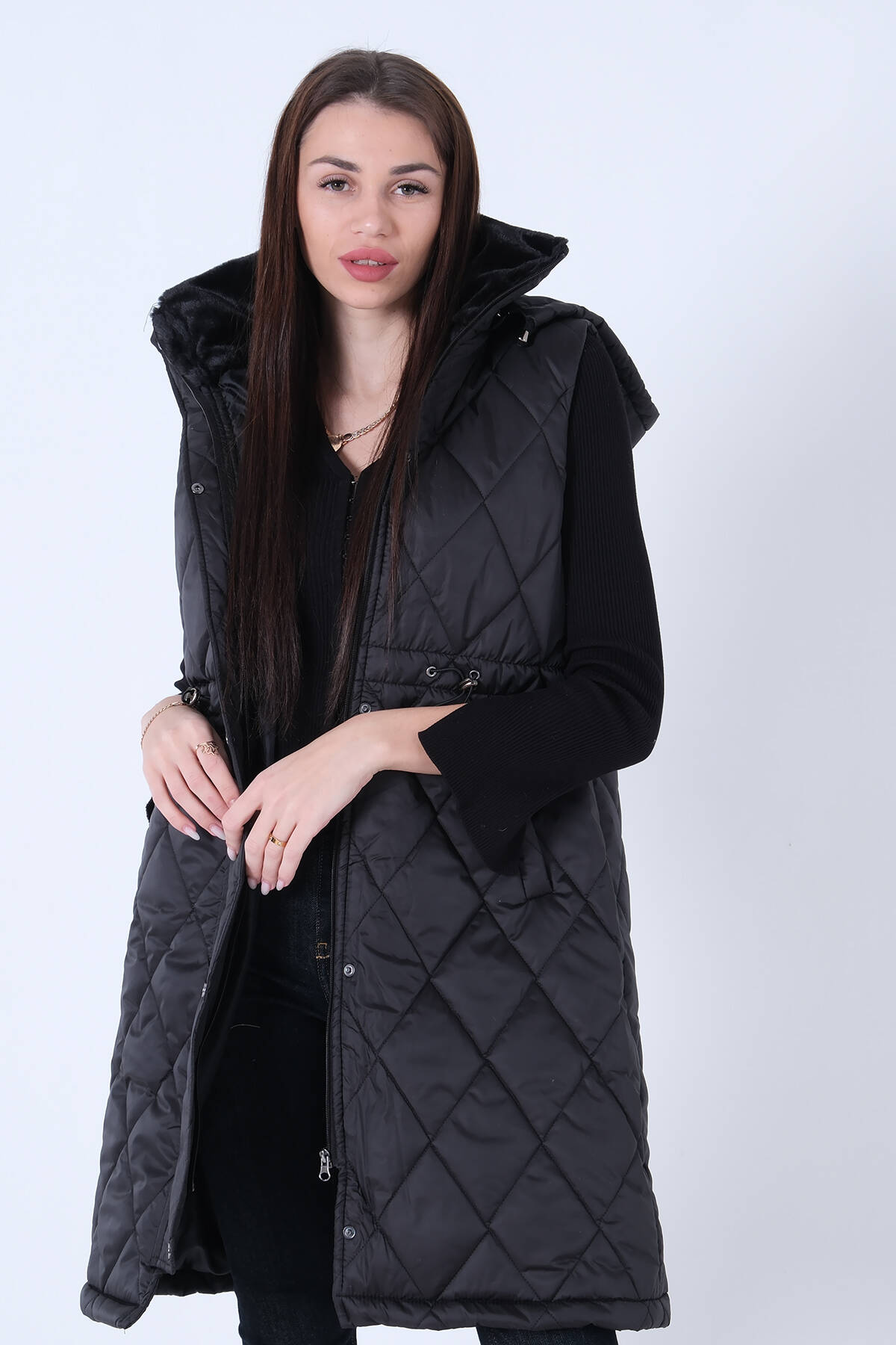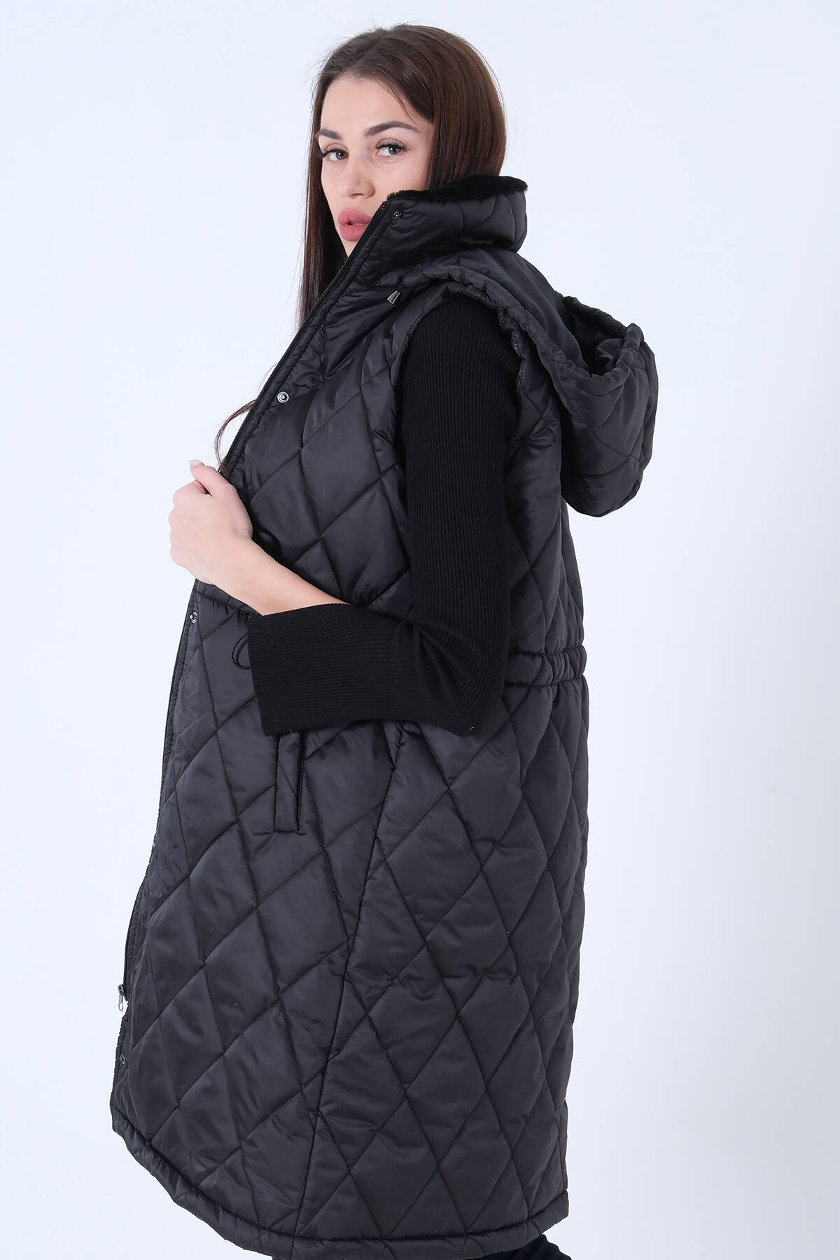 Siyah Kapüşonlu Kapitone Yelek 44510424.01