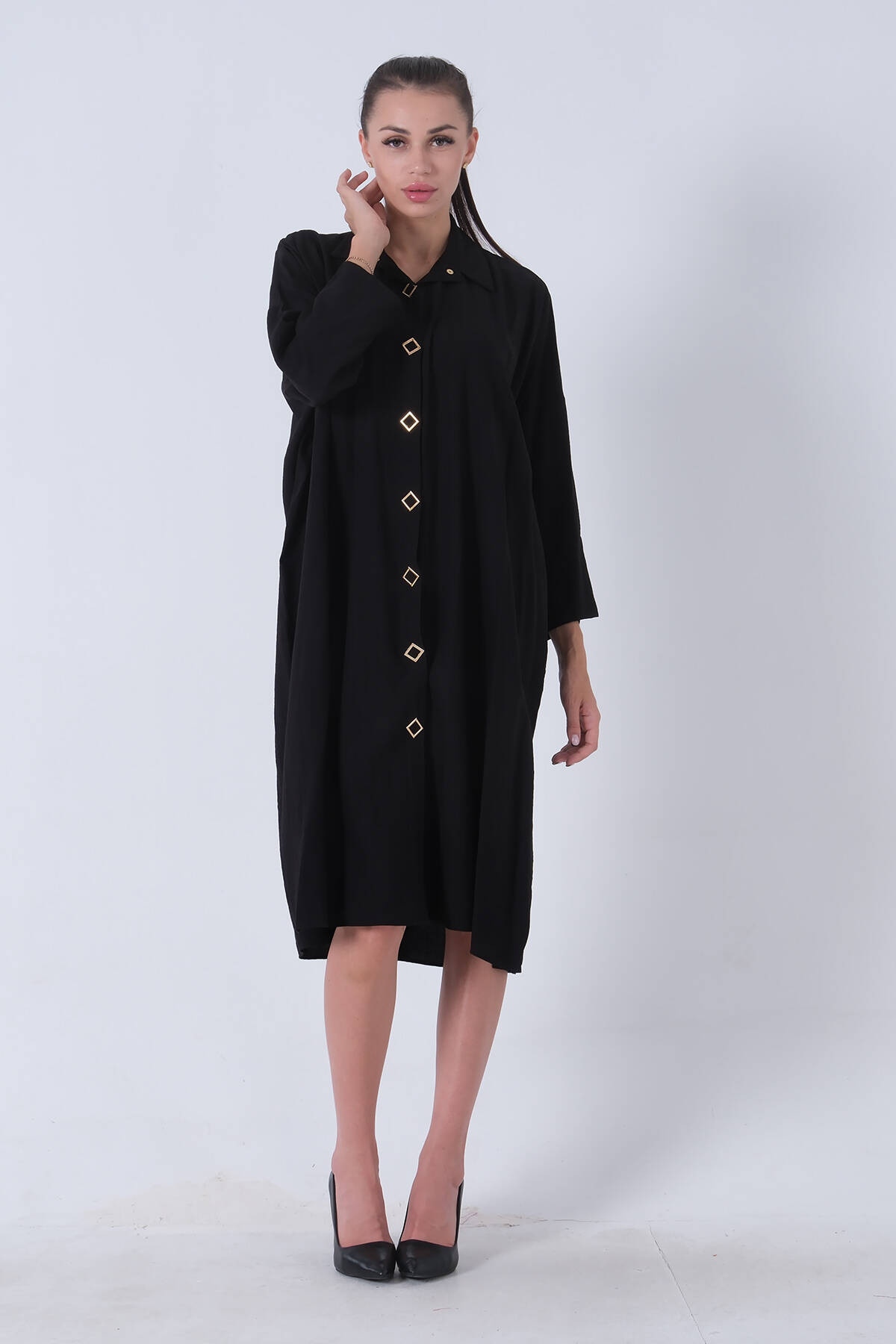 Siyah Kare Düğme Detaylı Tunik 3972871.01