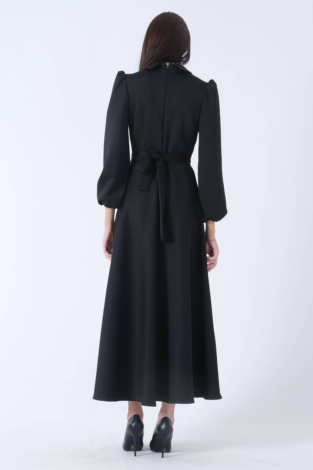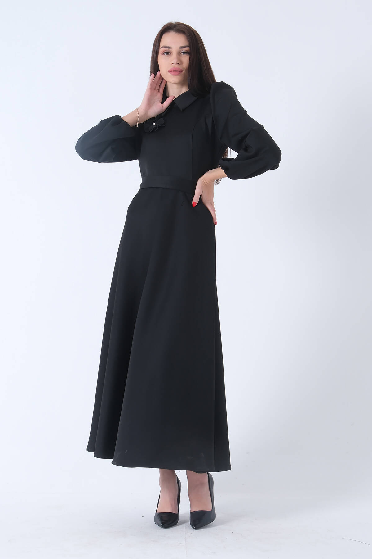 Siyah Kemer Bağlamalı Kloş Elbise 4593260.01
