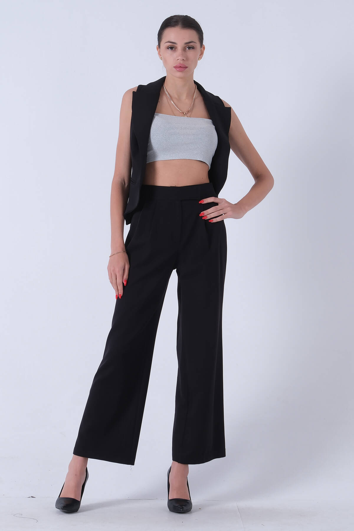 Siyah İnce Kemerli Cepsiz Bol Paça Uzun Pantolon 03030306.01