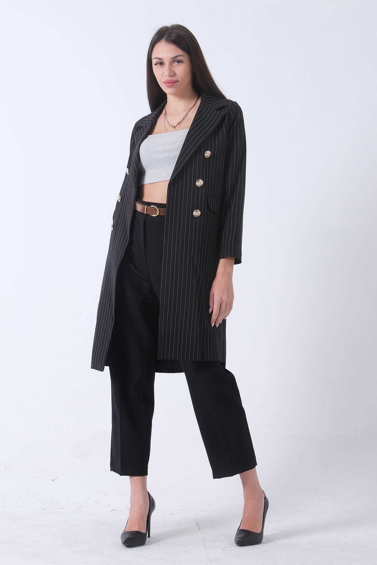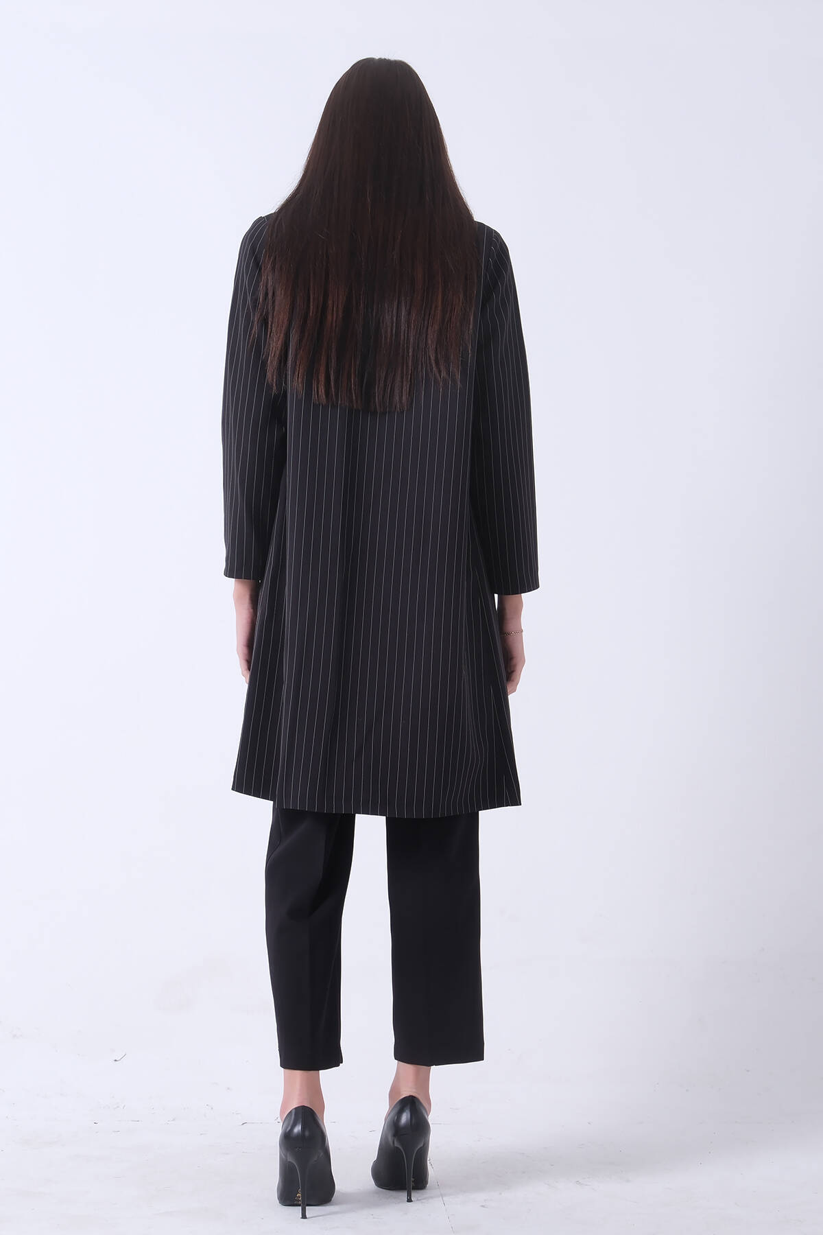 Siyah Klasik Yaka Çizgili Uzun Ceket 08091161.01