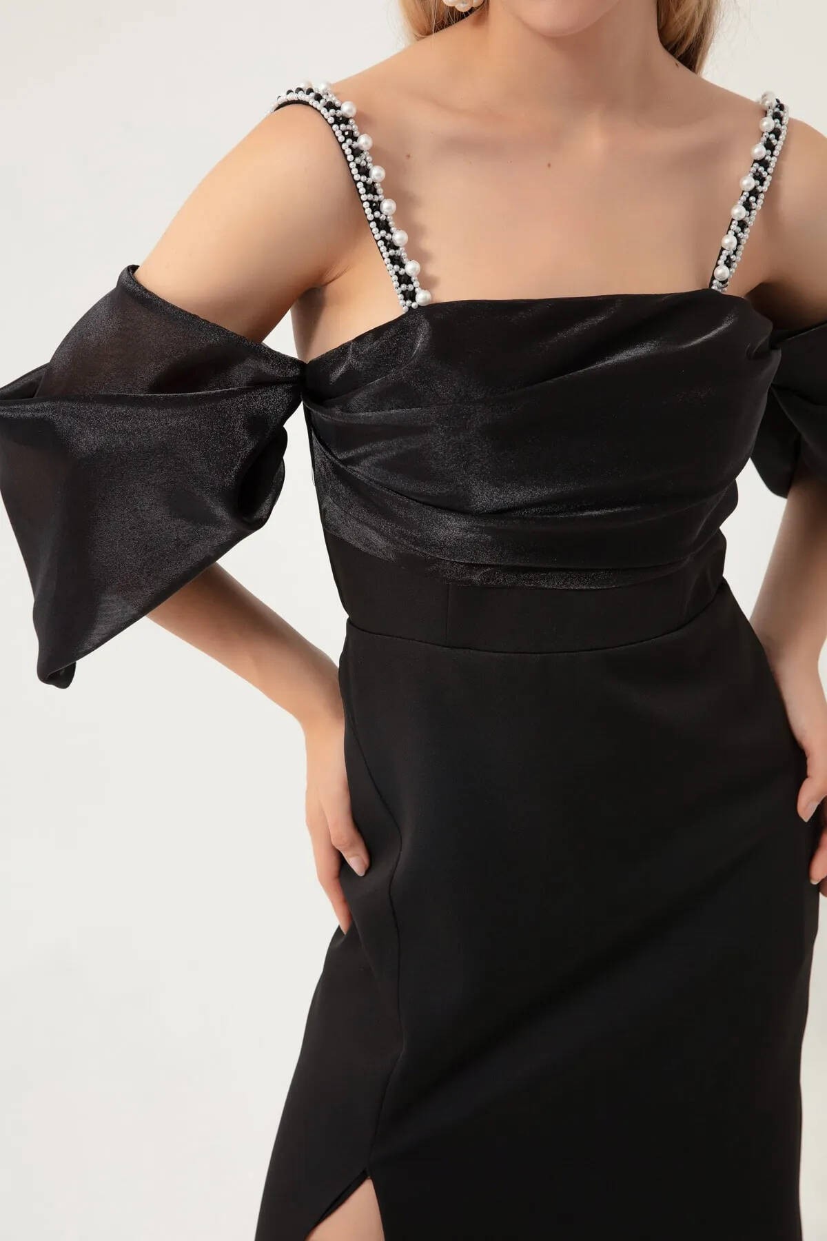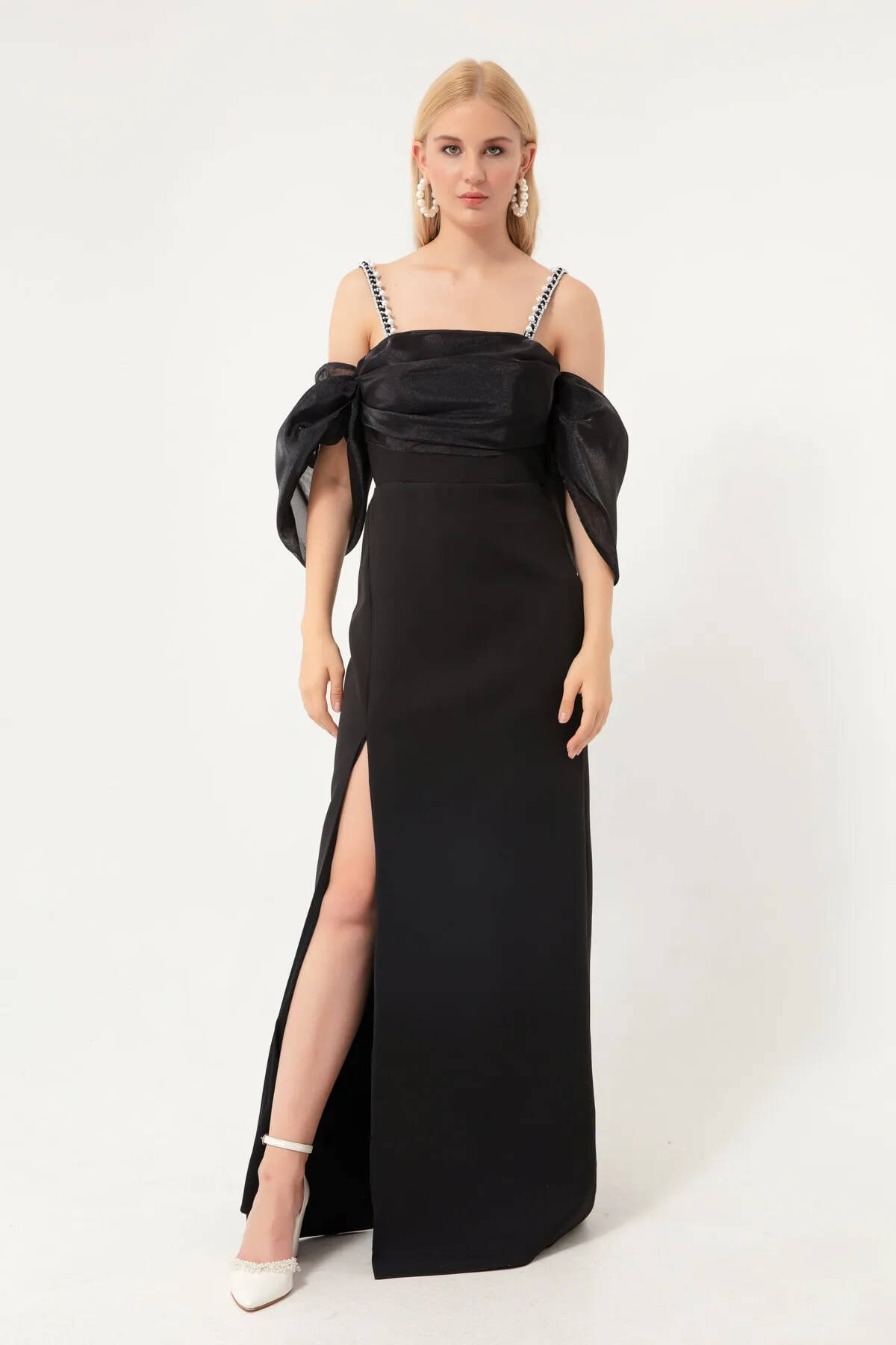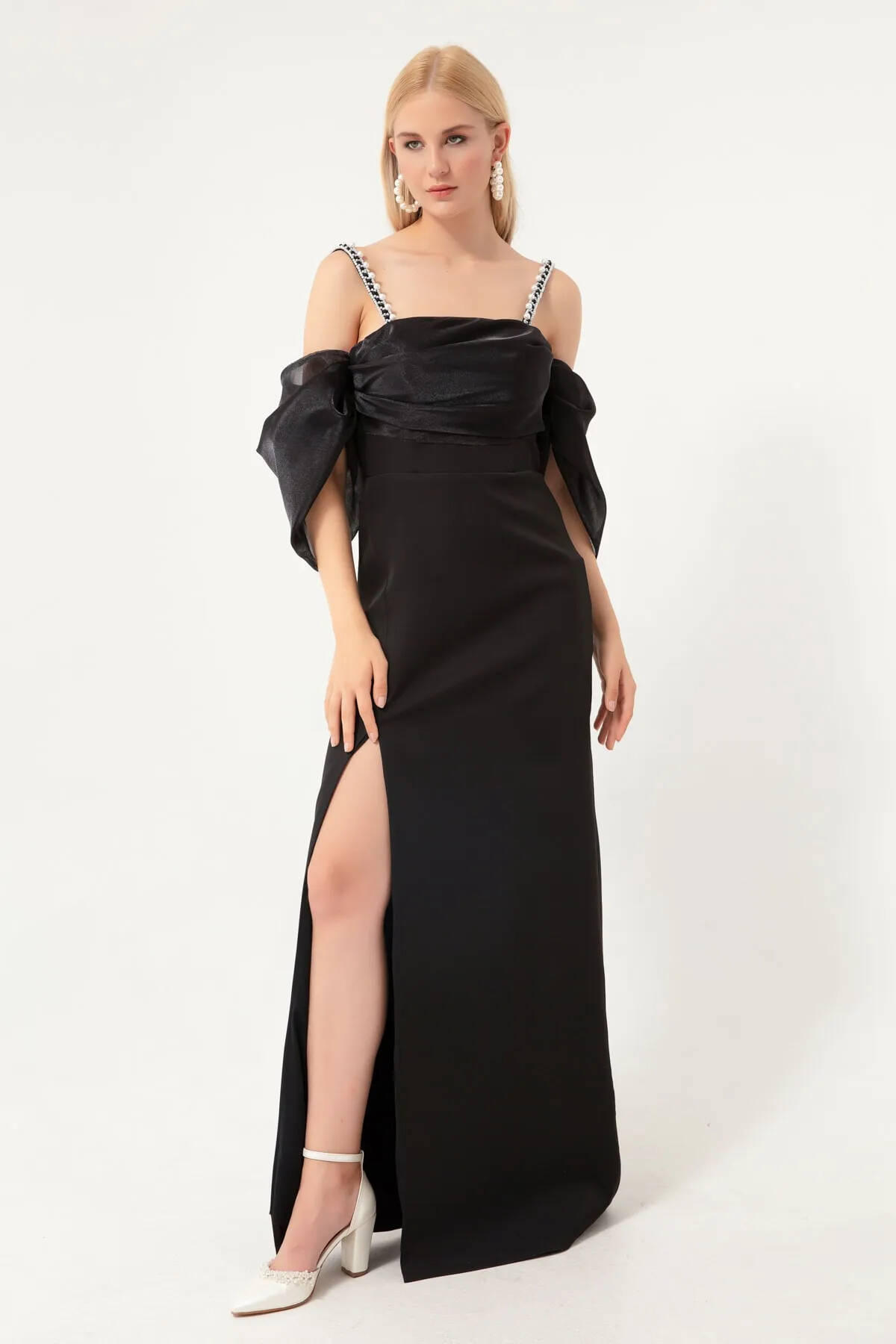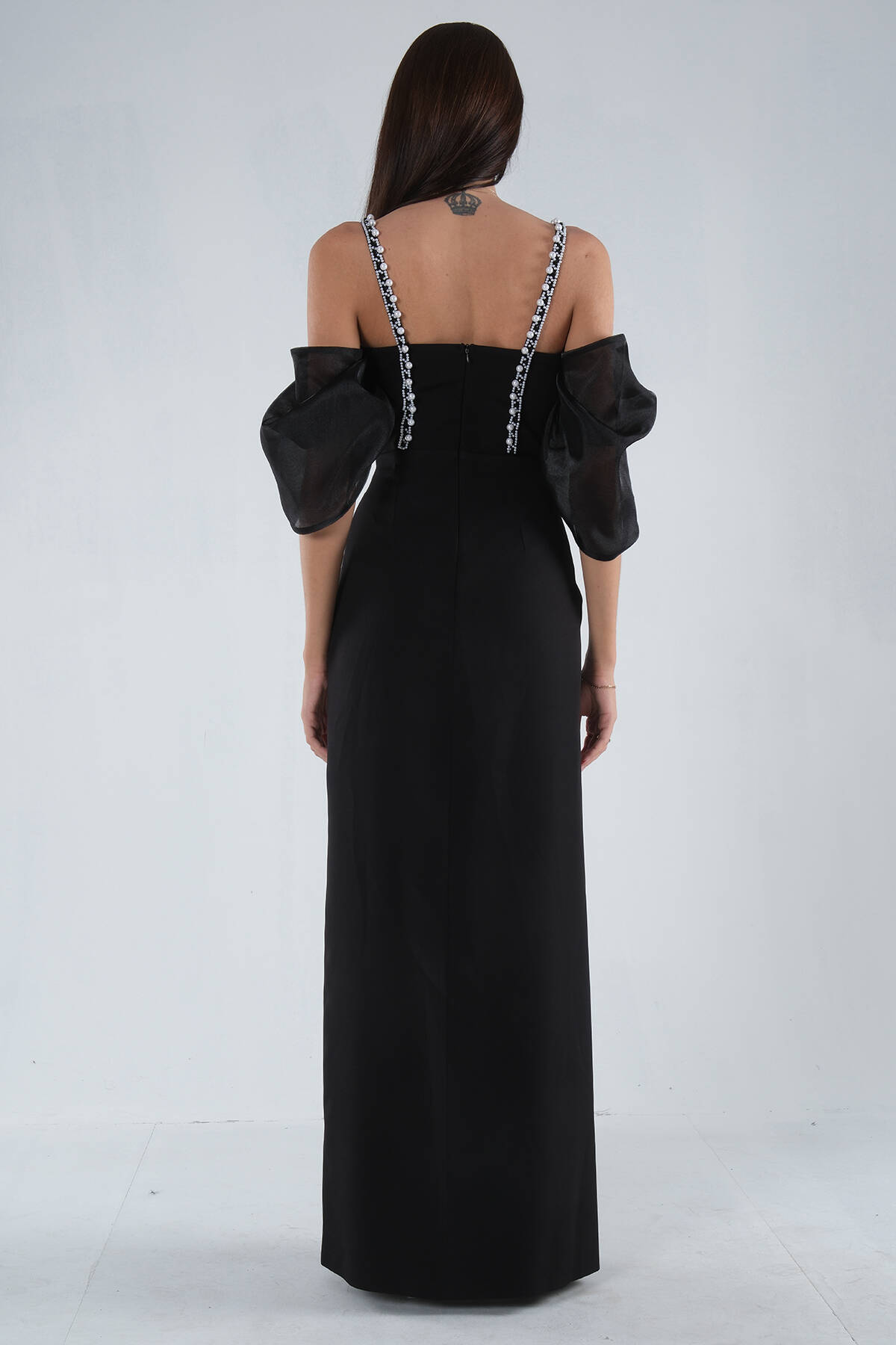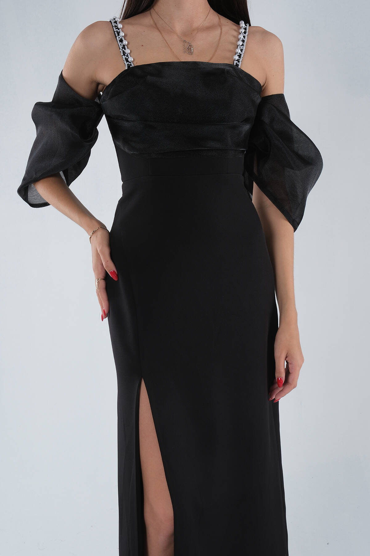 Siyah Kolları Şifon Yırtmaçlı Abiye 9705139.01