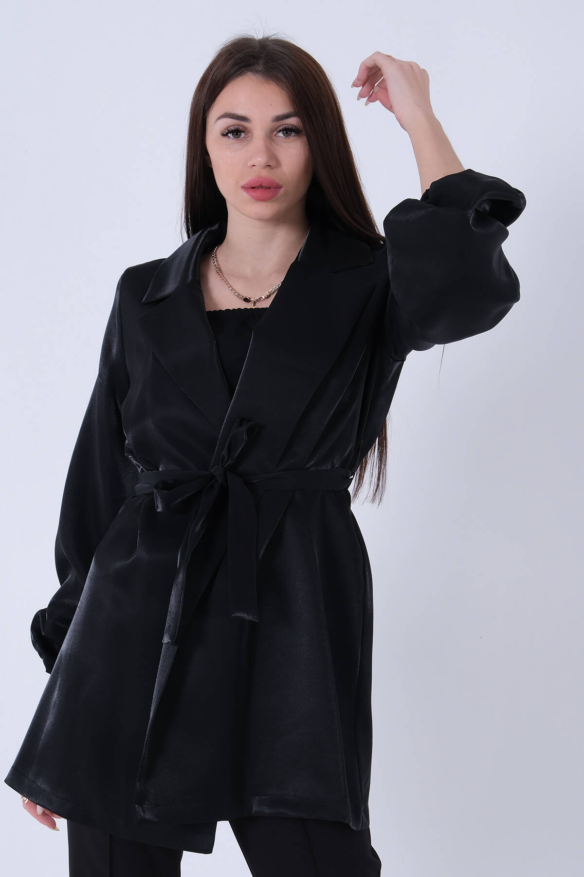 Siyah Kolları Volanlı Monoray Saten Ceket 31050689.01
