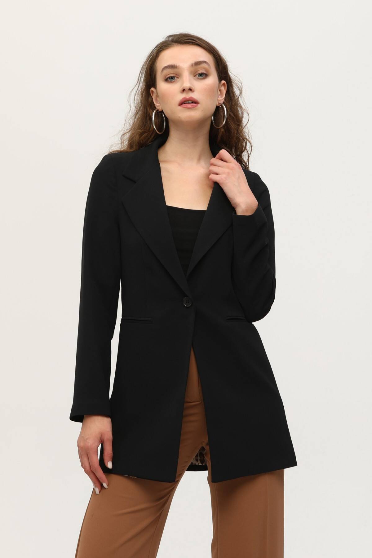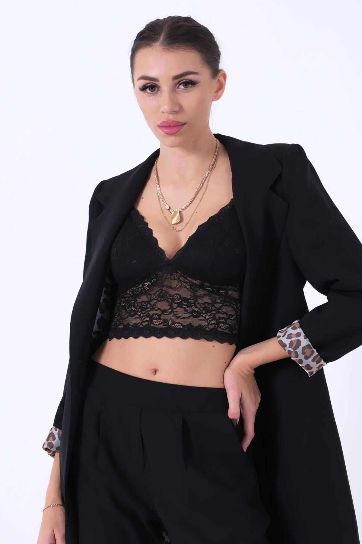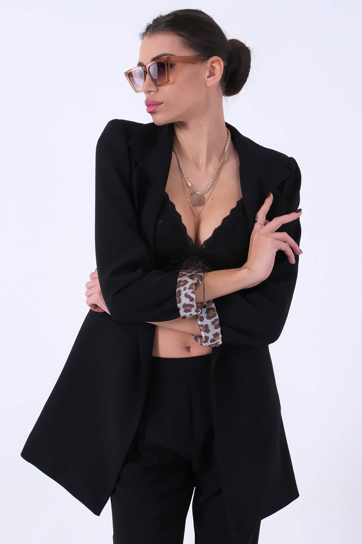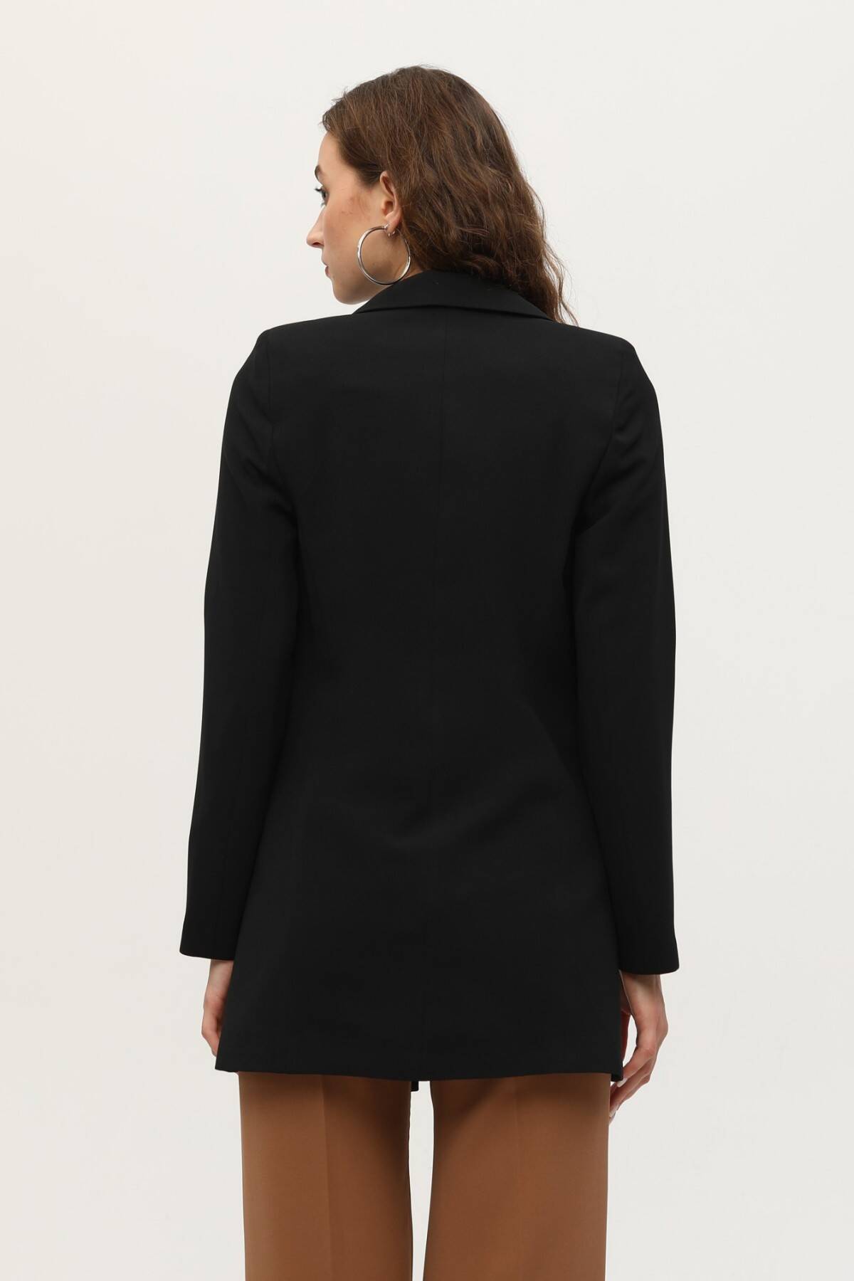 Siyah Leopar Astar Detaylı Krep Blazer Ceket 0105120.01
