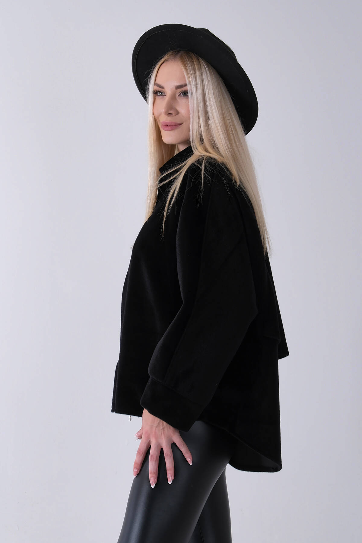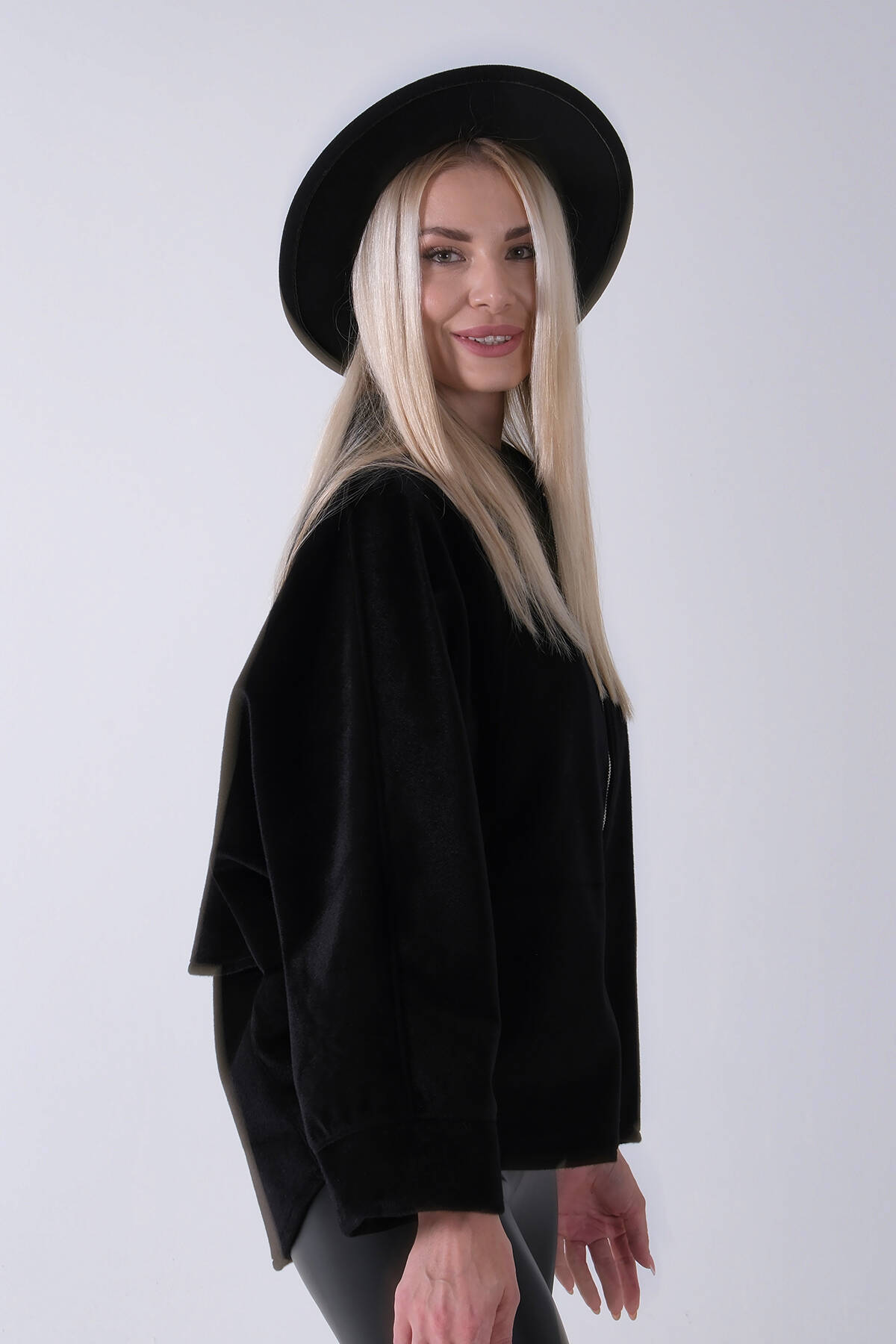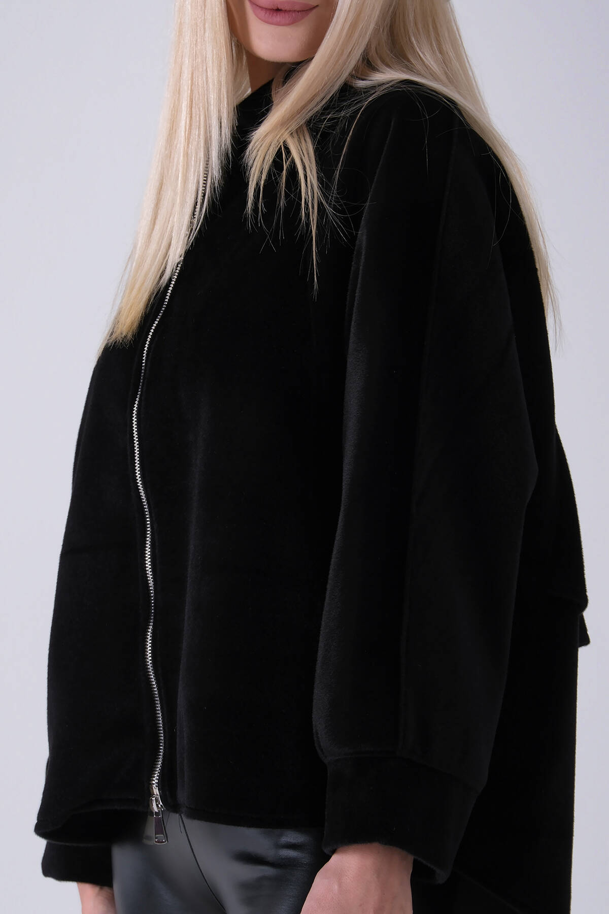 Siyah Ön Fermuarlı Yarasa Kol Detaylı Yün Kısa Ceket 3971215.01