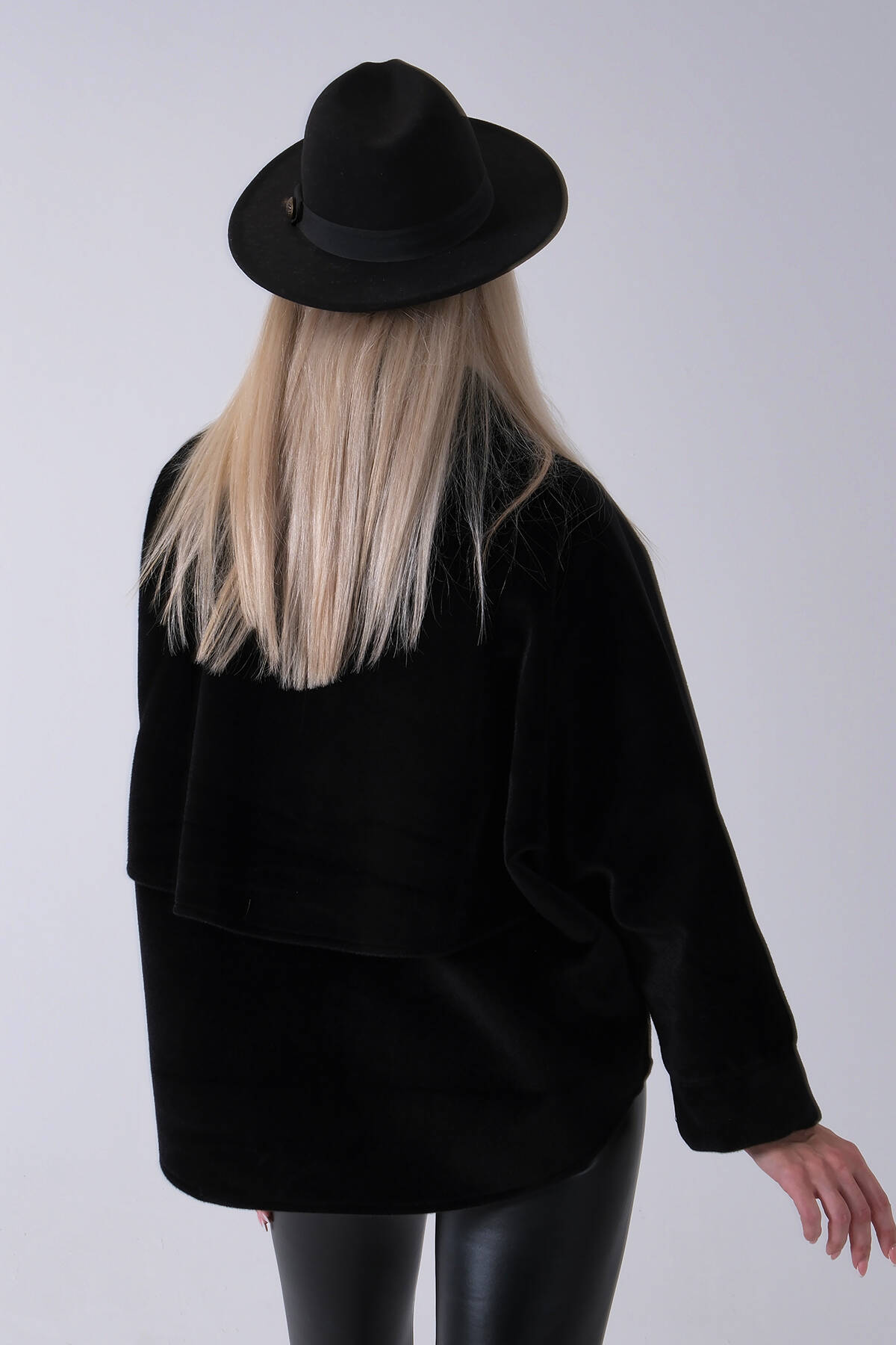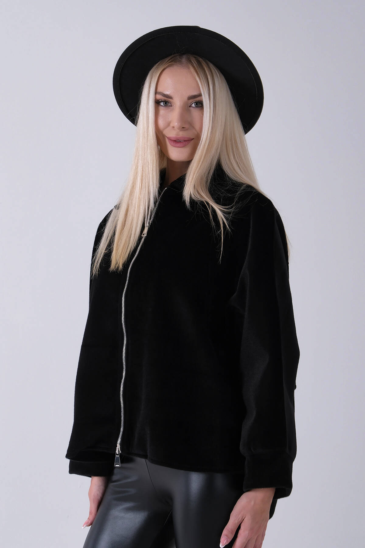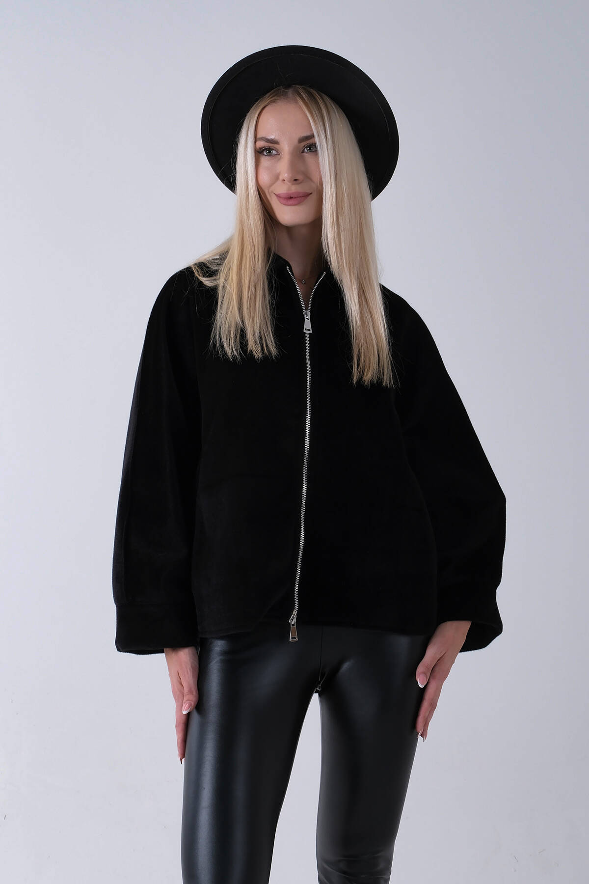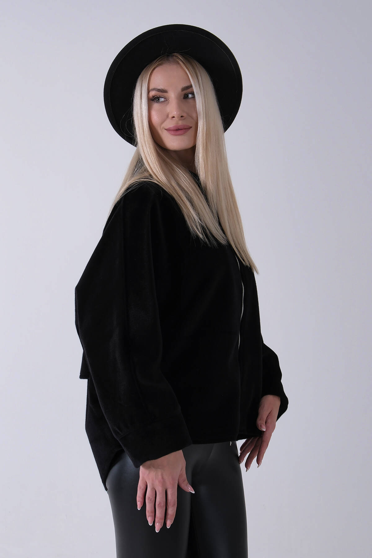 Siyah Ön Fermuarlı Yarasa Kol Detaylı Yün Kısa Ceket 3971215.01