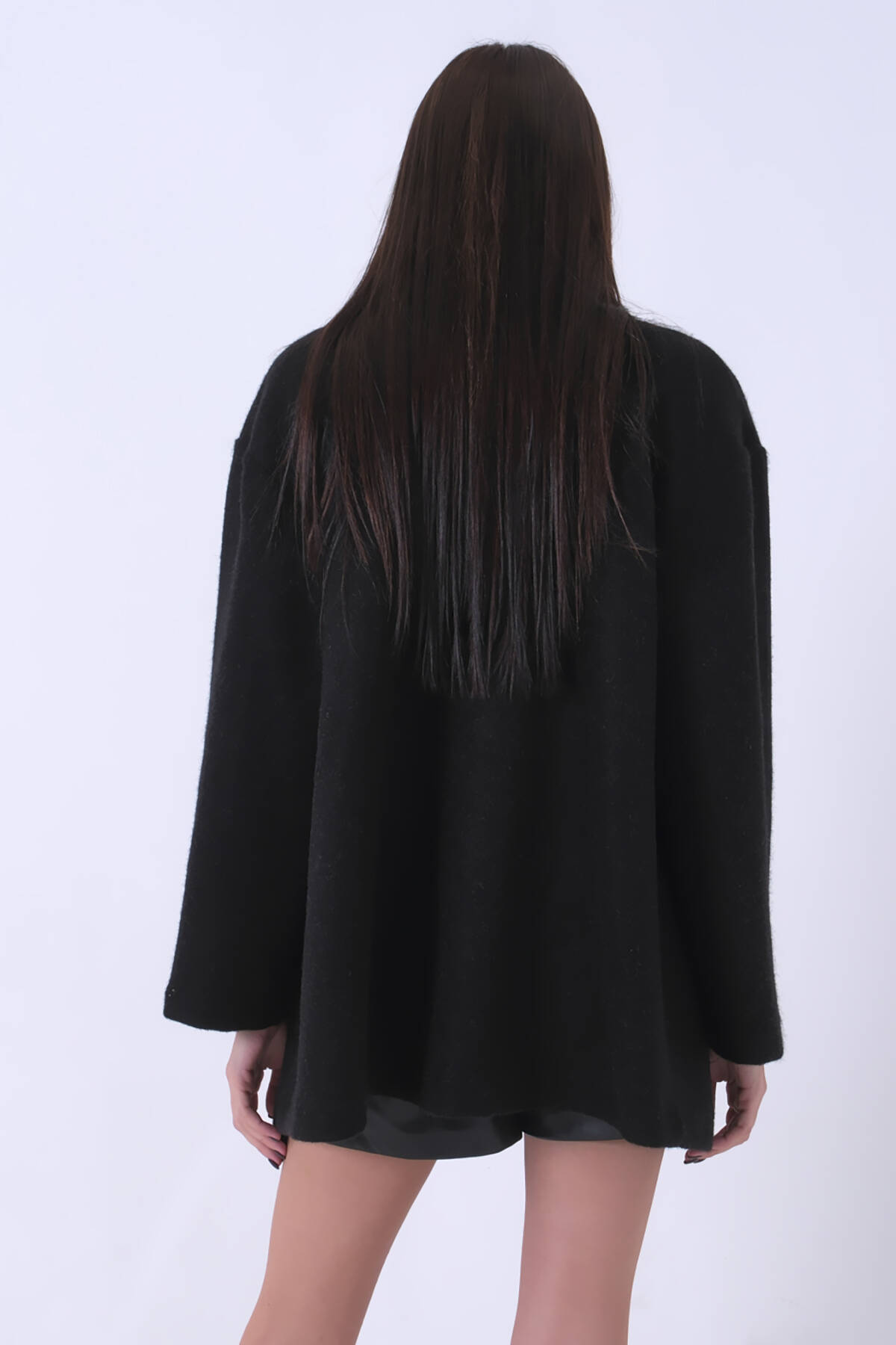 Siyah Önü Kapamalı Seyyar Kemerli Peluş Ceket 0105140.01