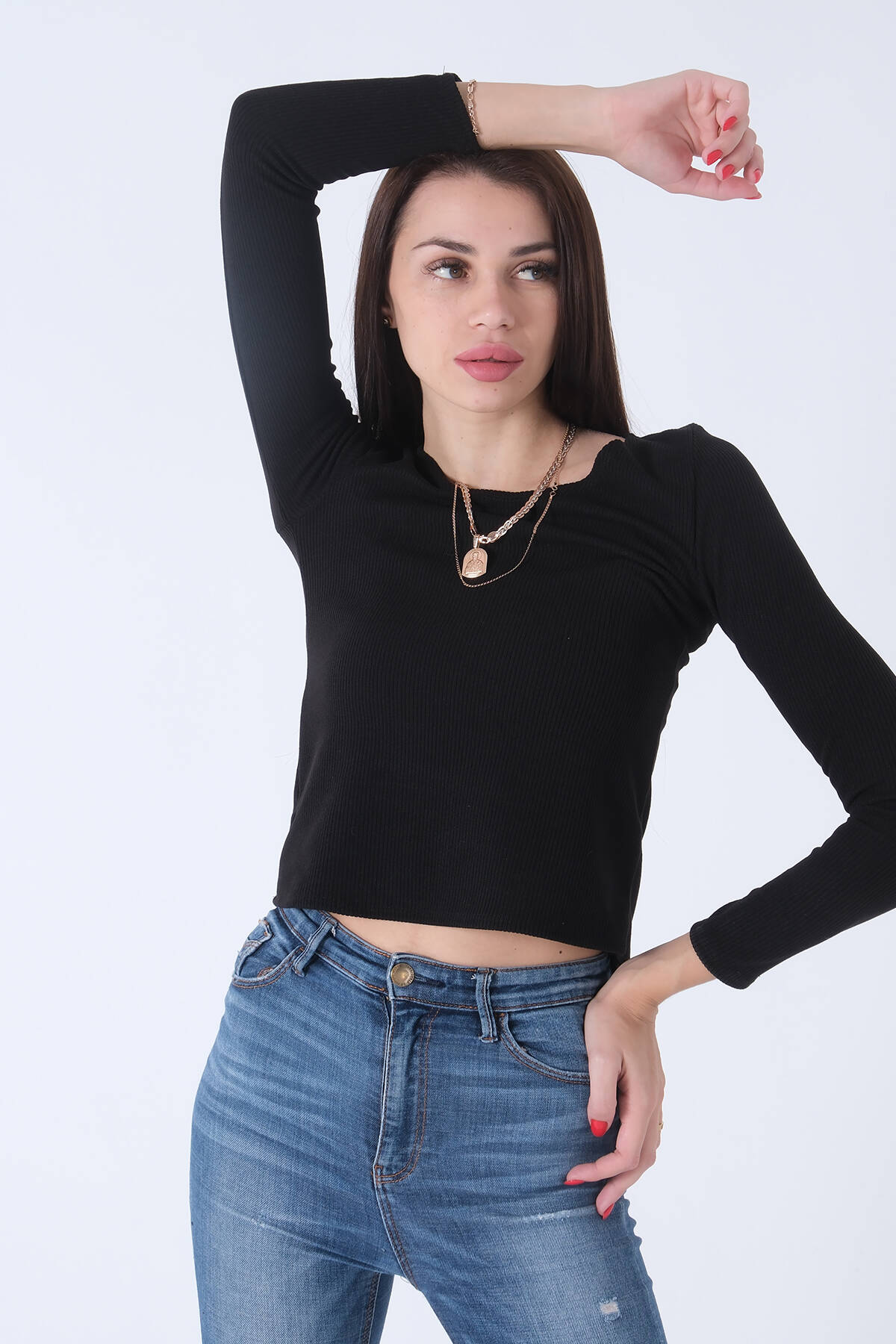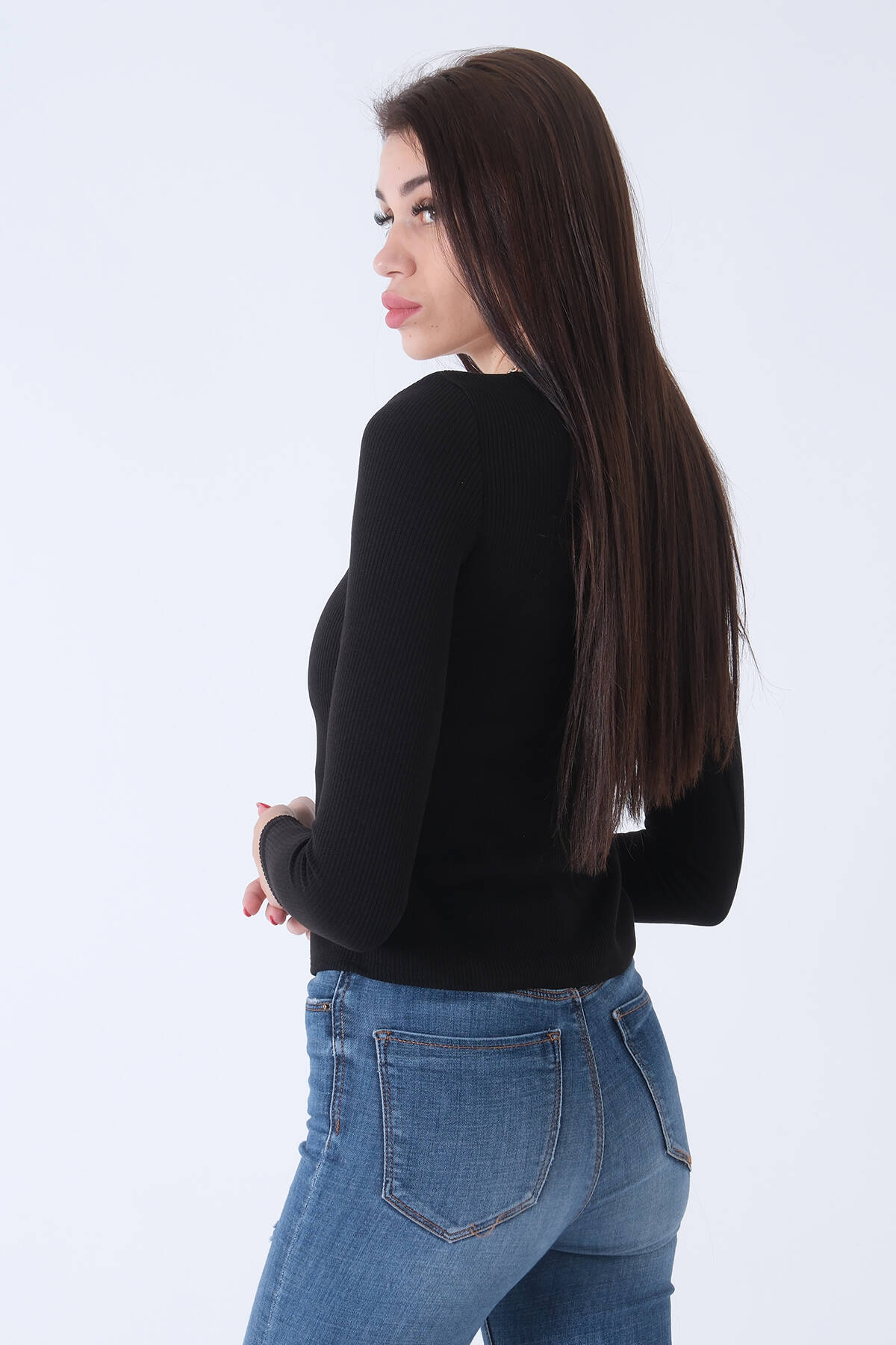 Mürdüm V Yaka Beli Lastikli Triko Kazak 46892623.21