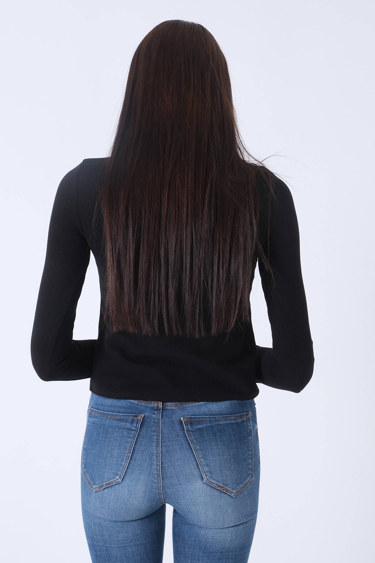 Siyah V Yaka Beli Lastikli Triko Kazak 46892623.01
