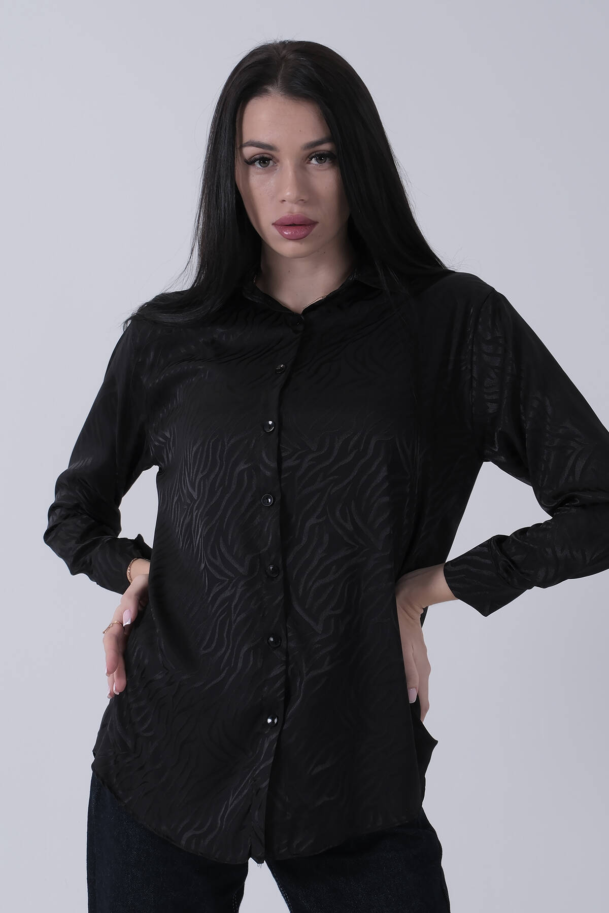 Siyah Önü 4 Düğme Detaylı Taş İşlemeli Bluz 4202891.01