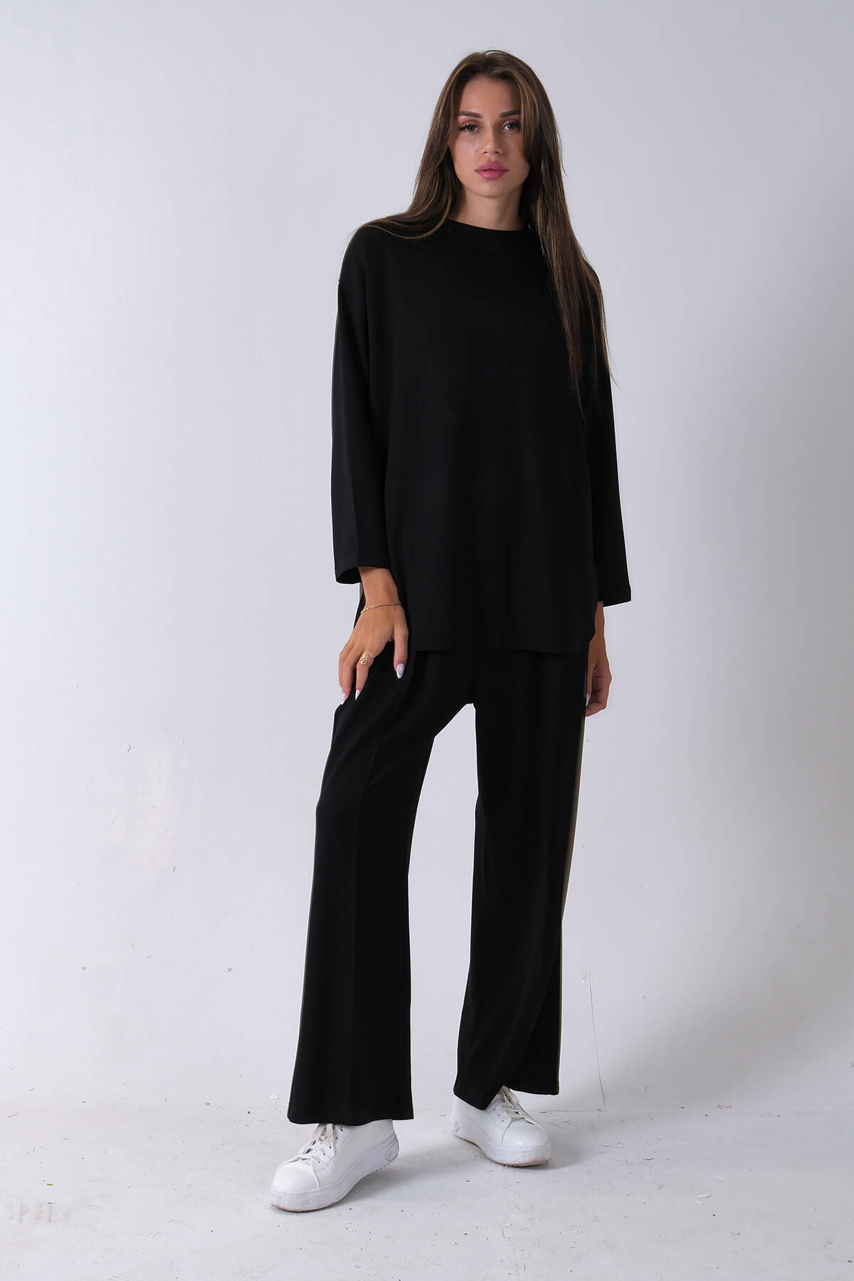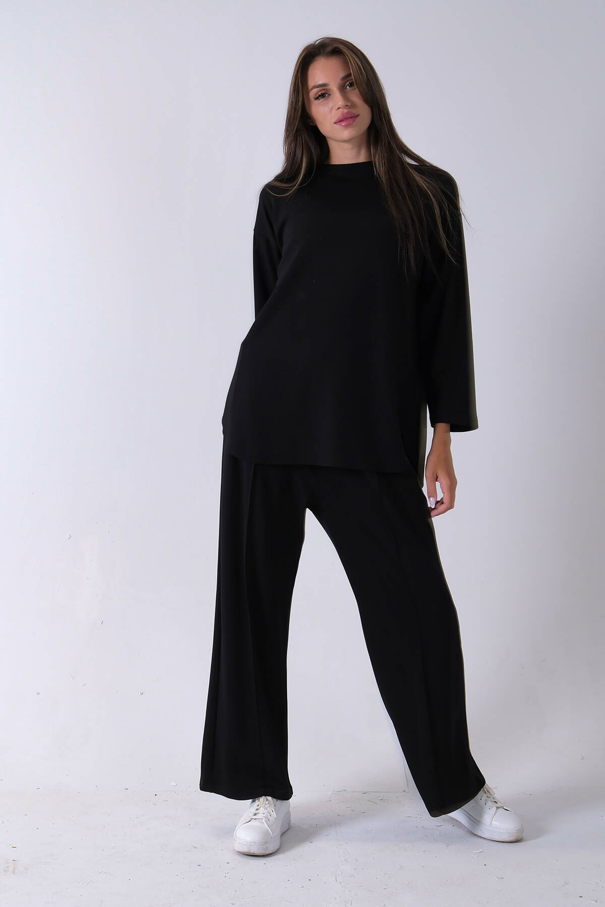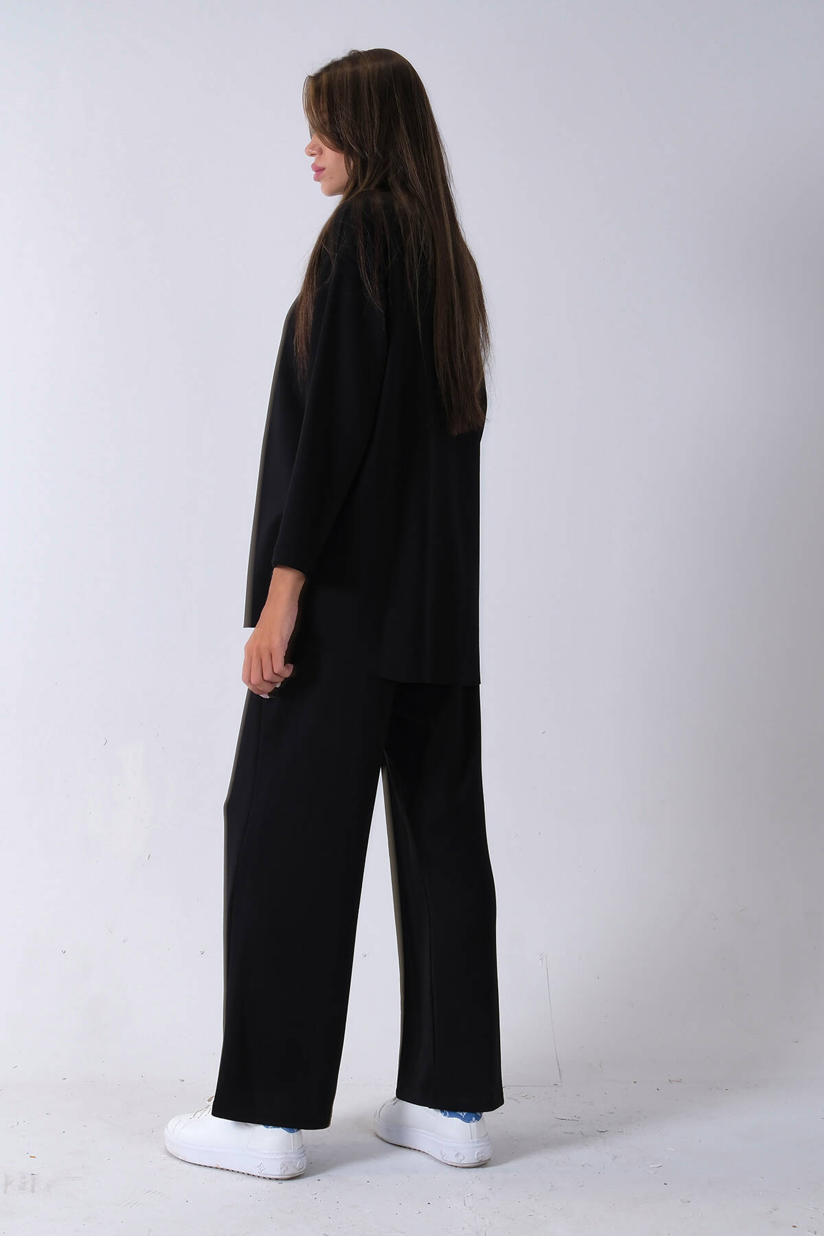 Siyah Rahat Kumaş Basic Pantolonlu Takım 31040630.01