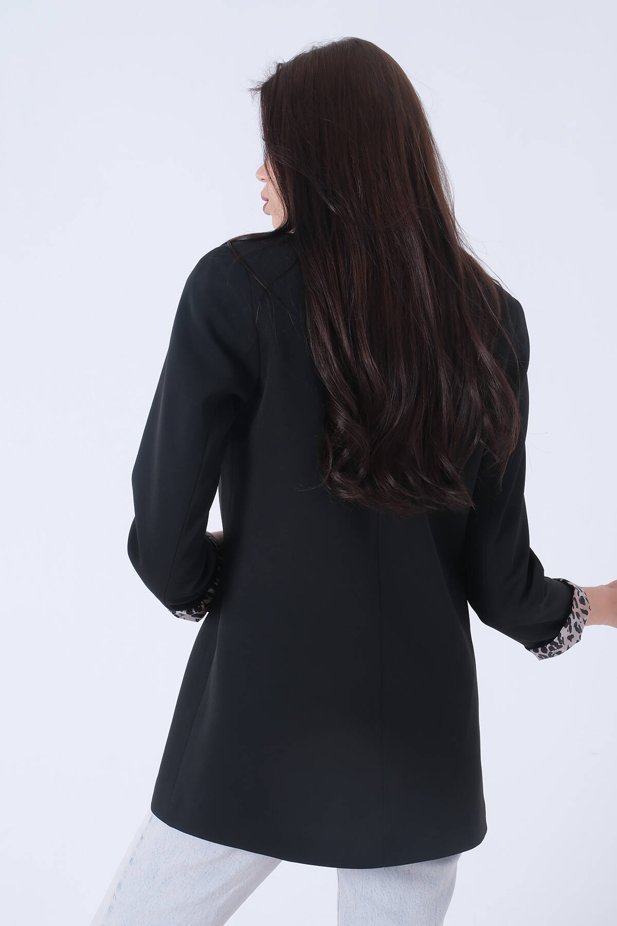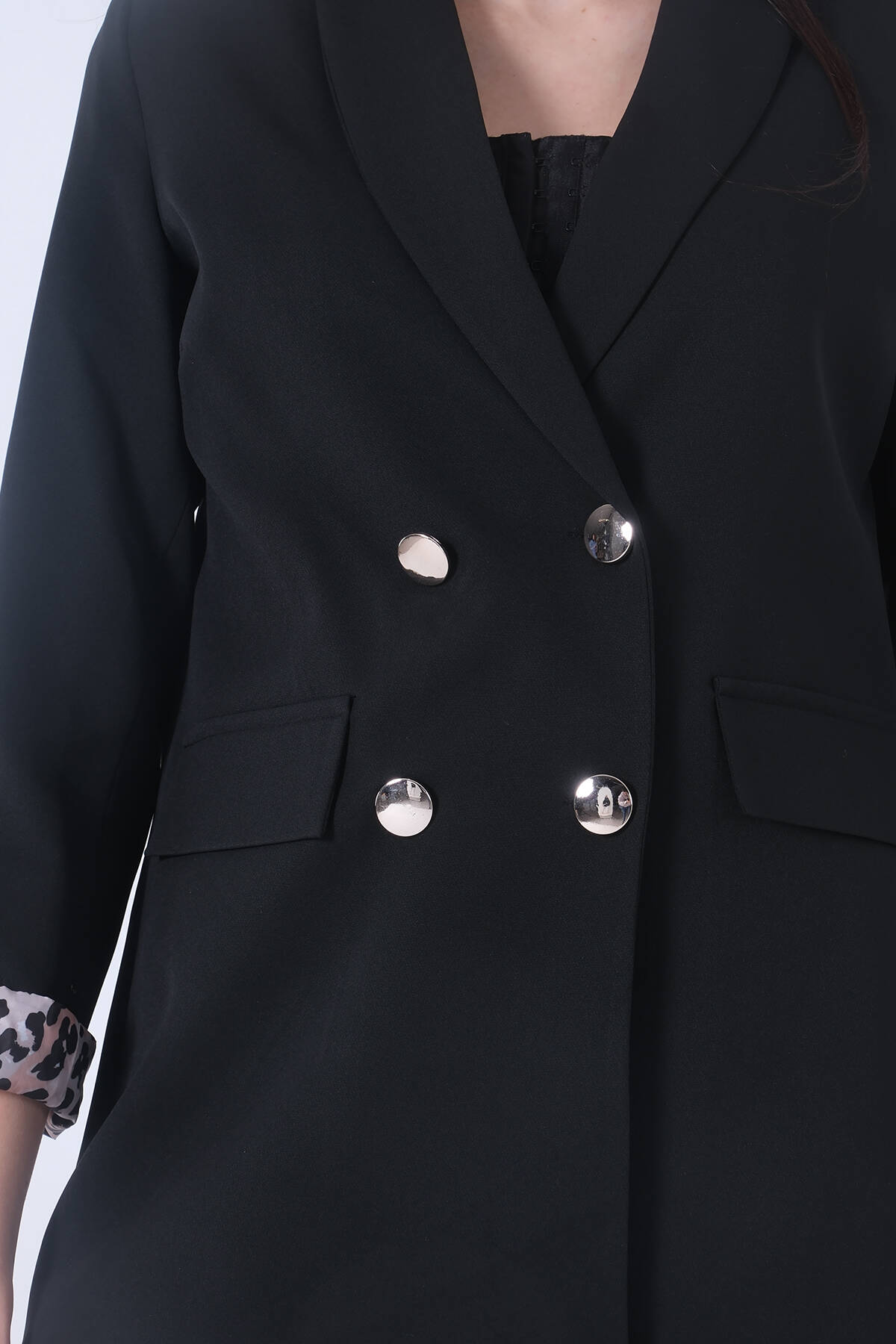 Siyah Şal Yaka Leopar Astarlı Kruvaze Ceket 39711561.01