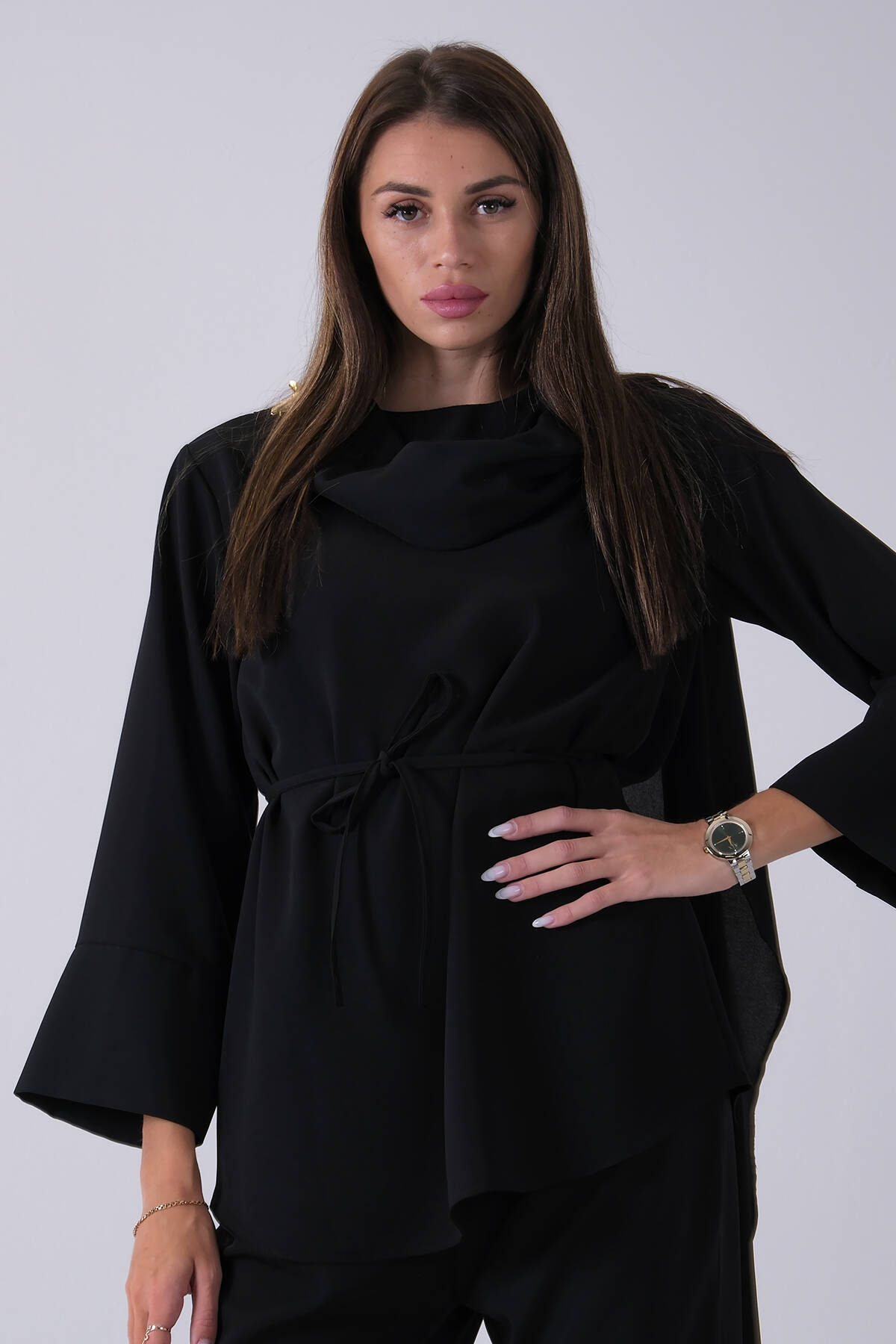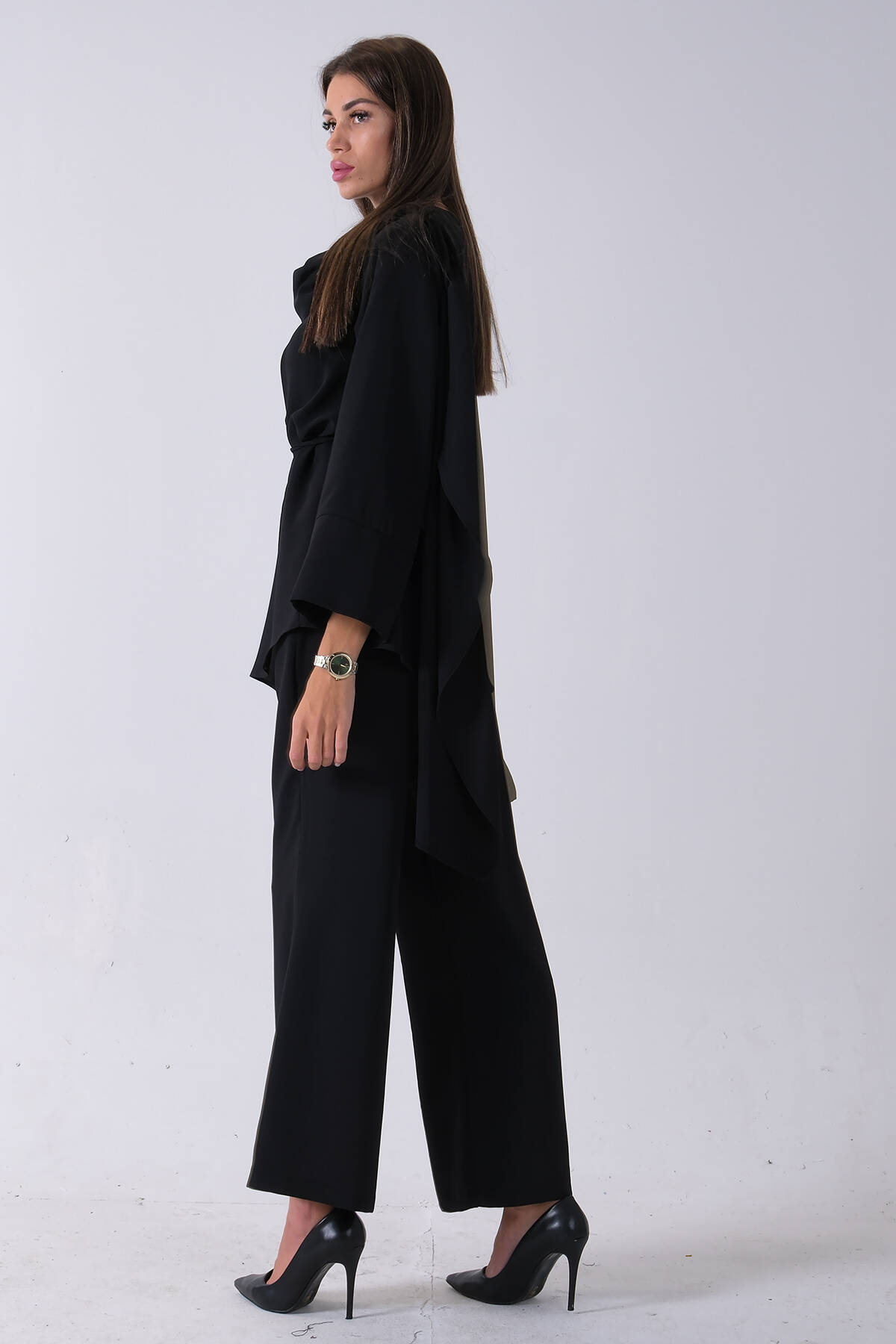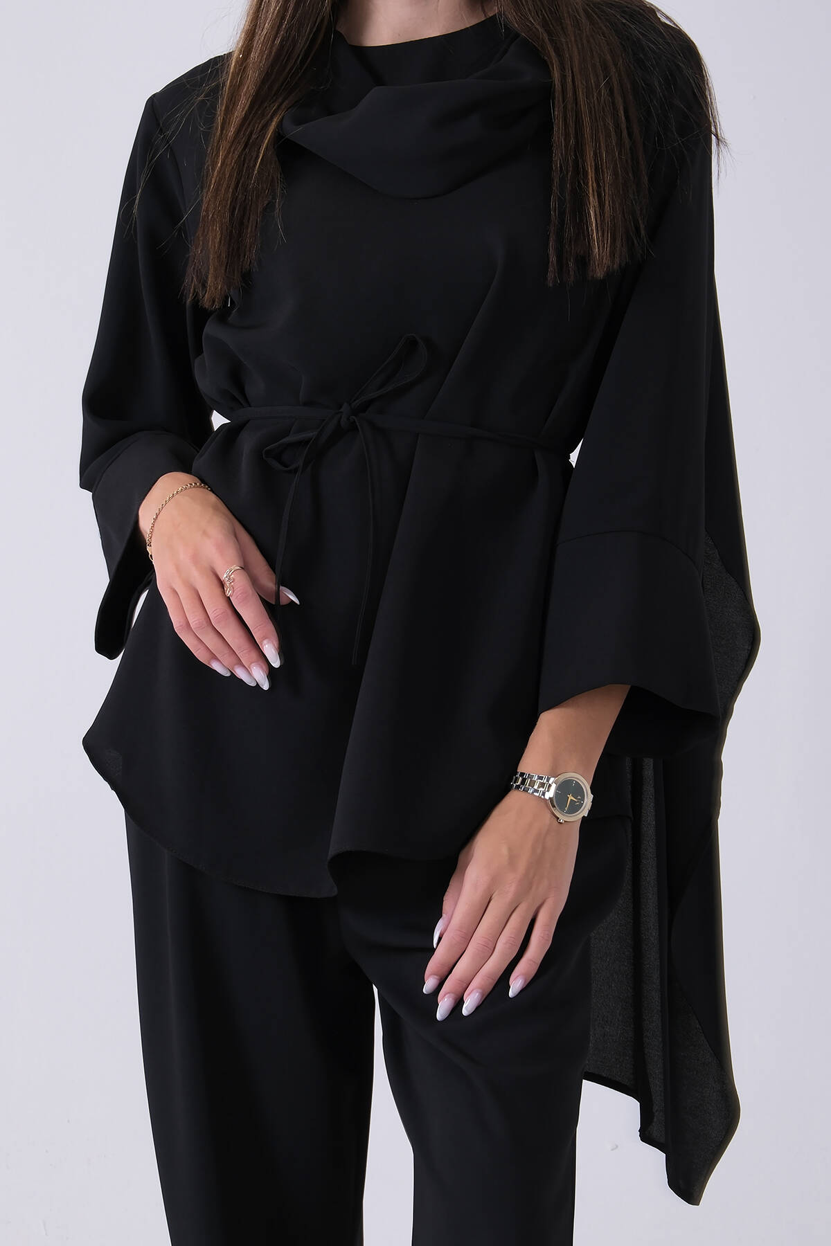 Siyah Tunik Yaka Fermuar Kapamalı File Detaylı Pantolonlu Takım 4577283.01