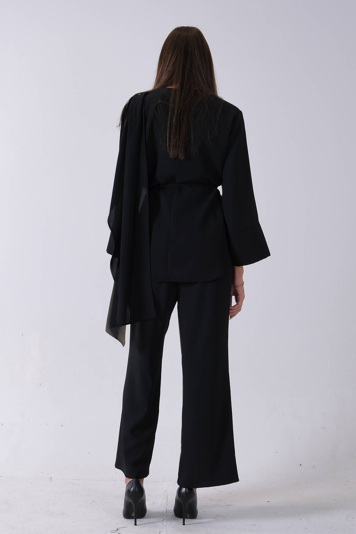 Siyah Şal Yaka Üzeri Broş Detaylı Pantolonlu Takım 4592270.01