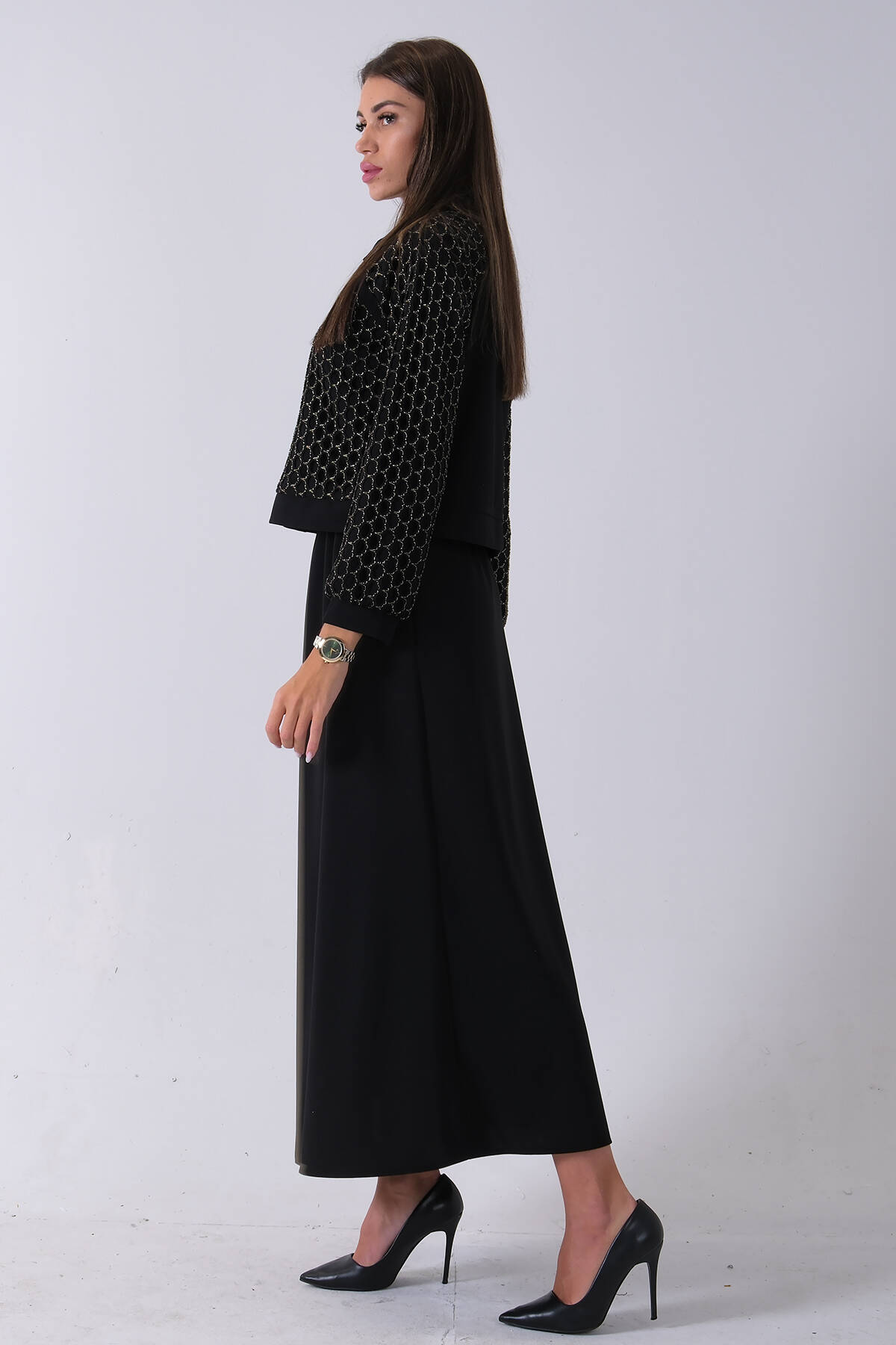 Siyah Tunik Yaka Fermuar Kapamalı File Detaylı Pantolonlu Takım 4577283.01