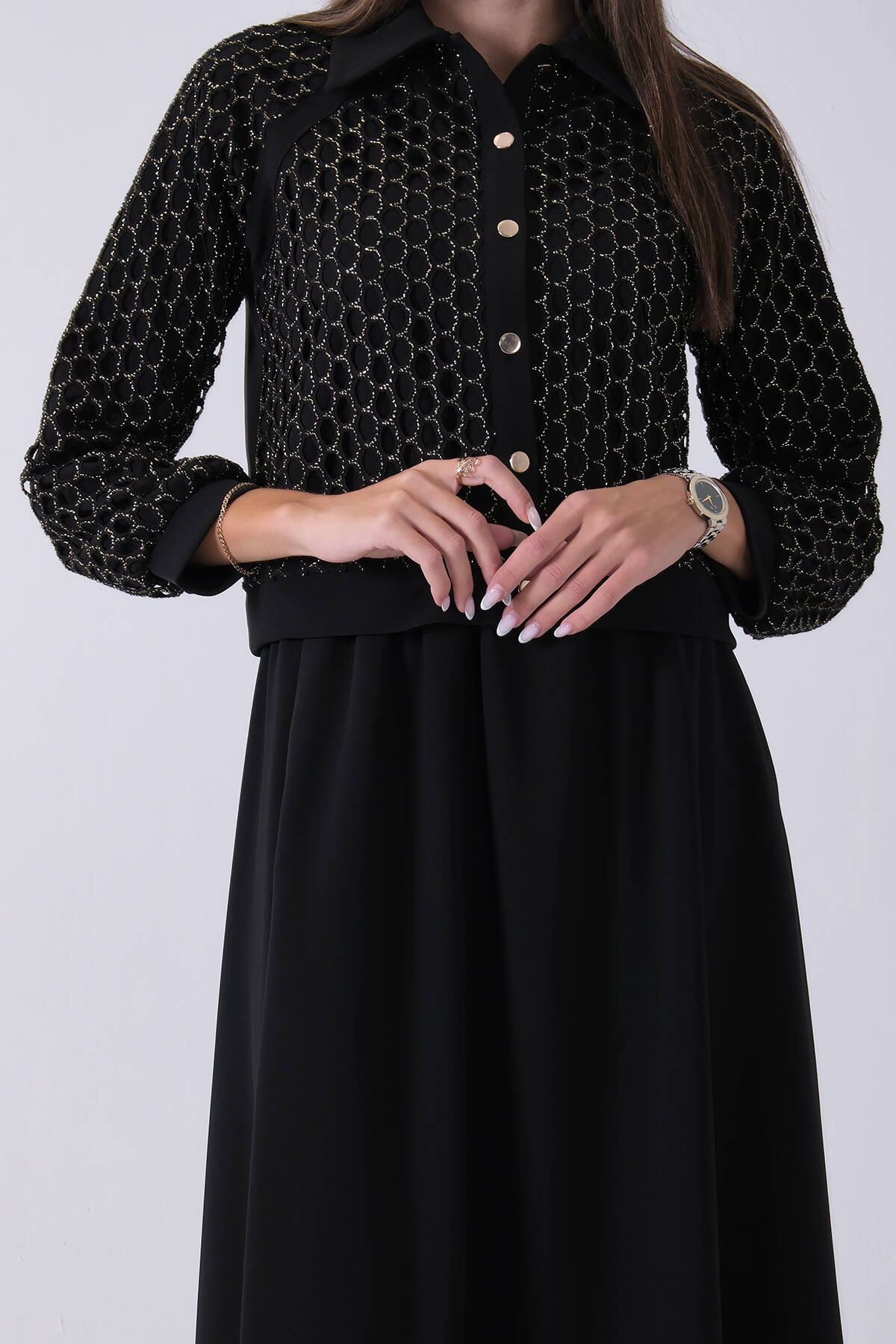 Siyah Sarı Petek Motifli Etekli Takım 4577253.01