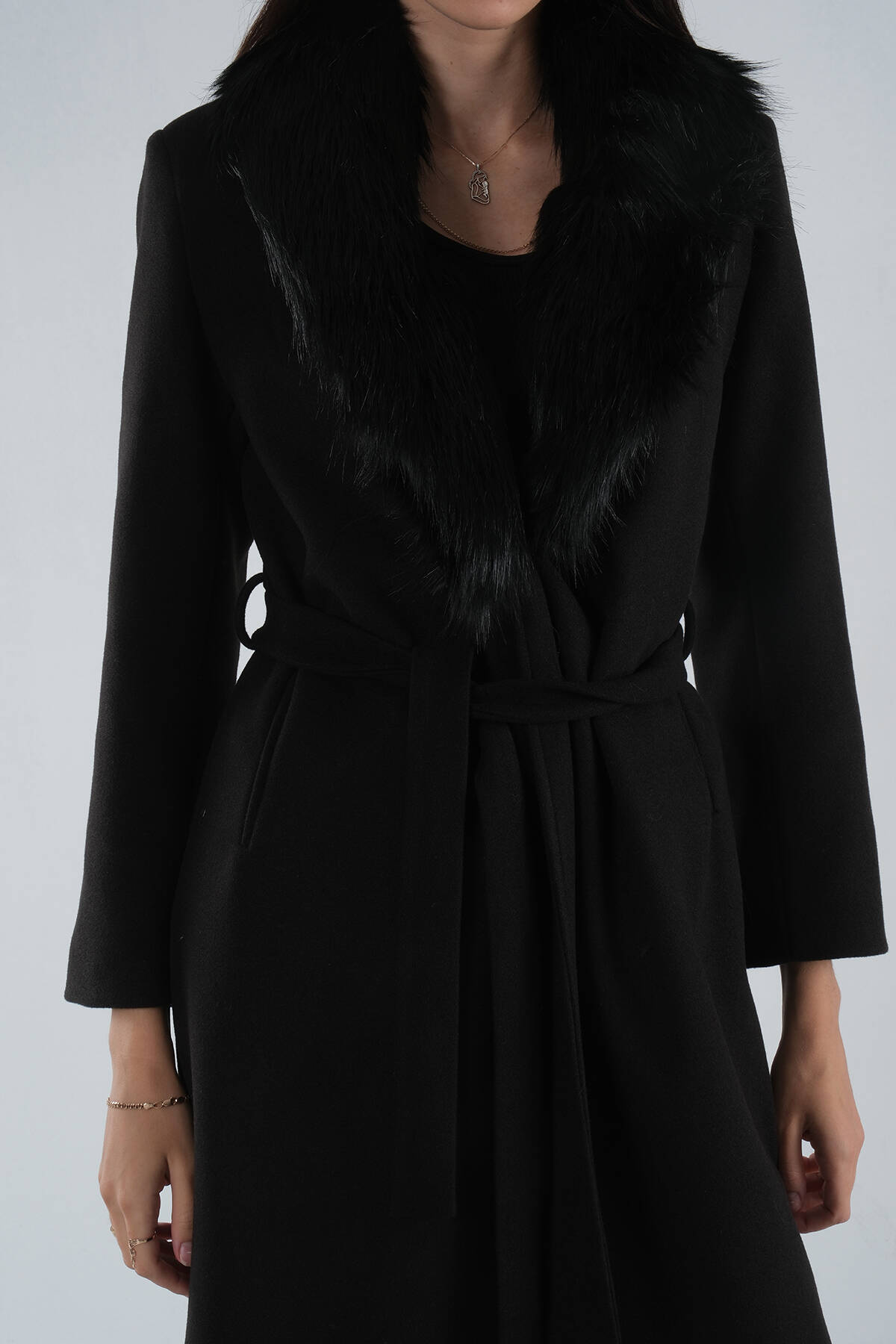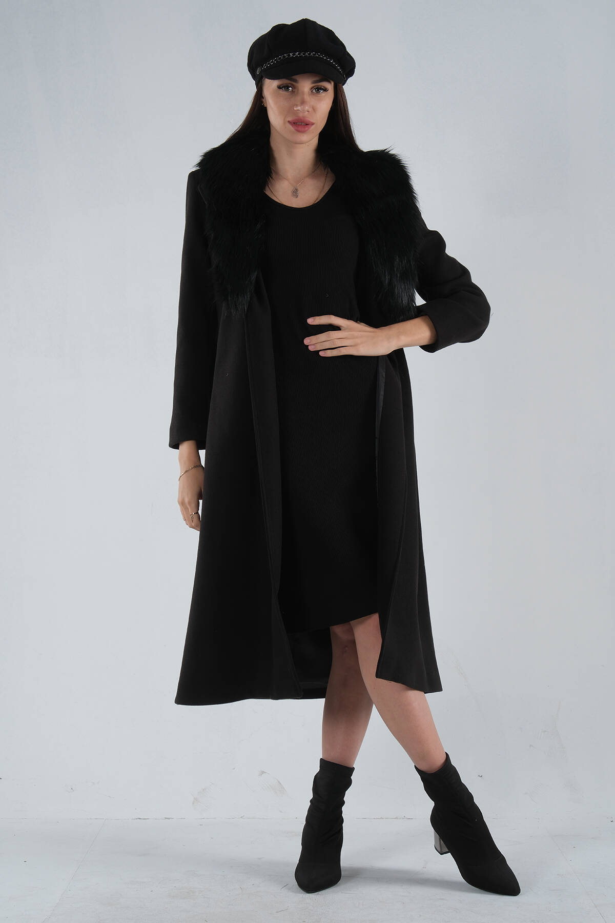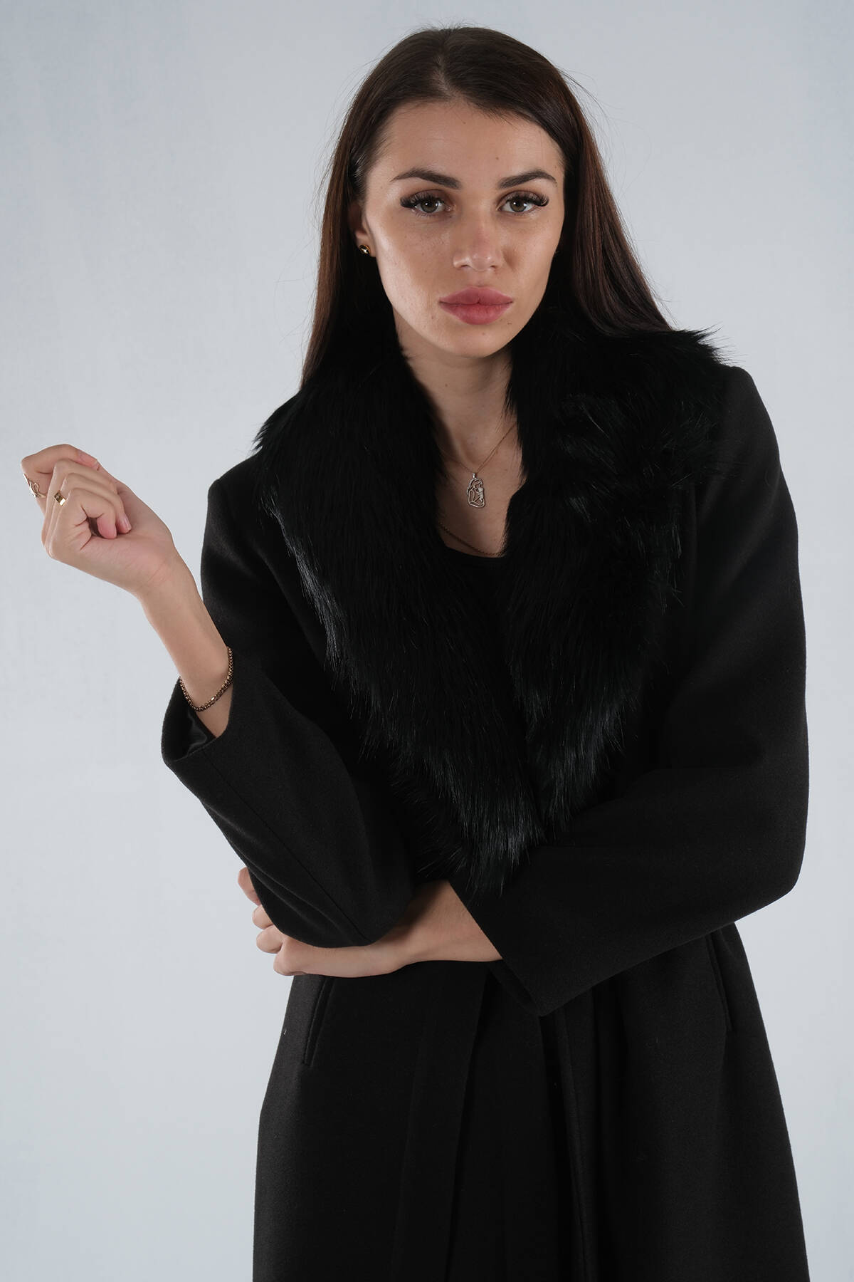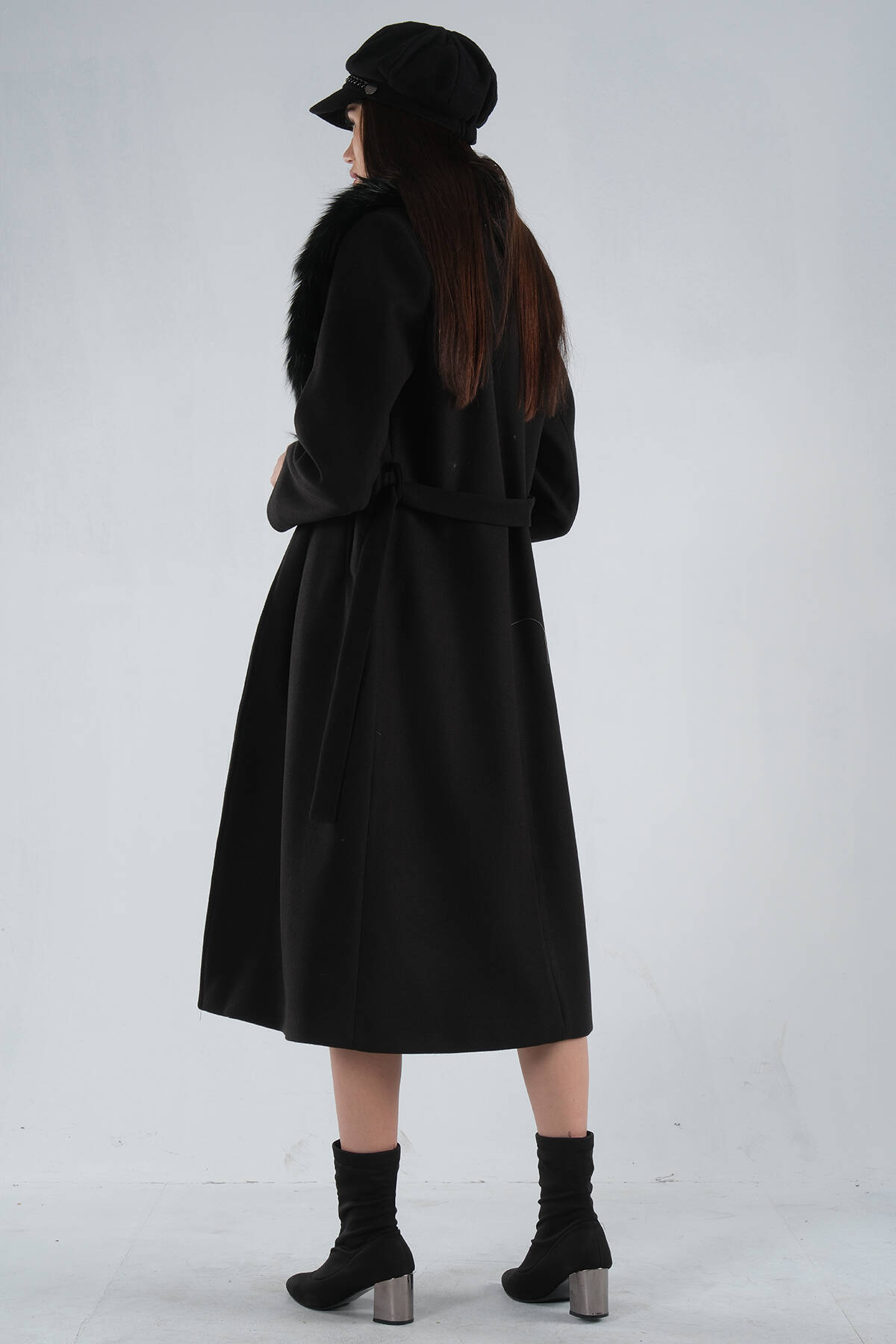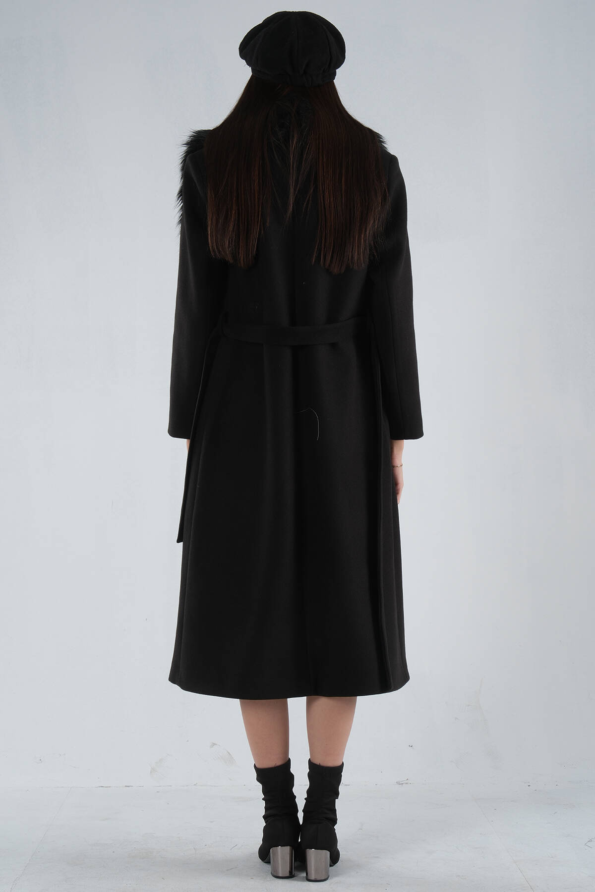 Siyah Seyyar Kürklü Astarlı Kaşe Kaban 0108070.01