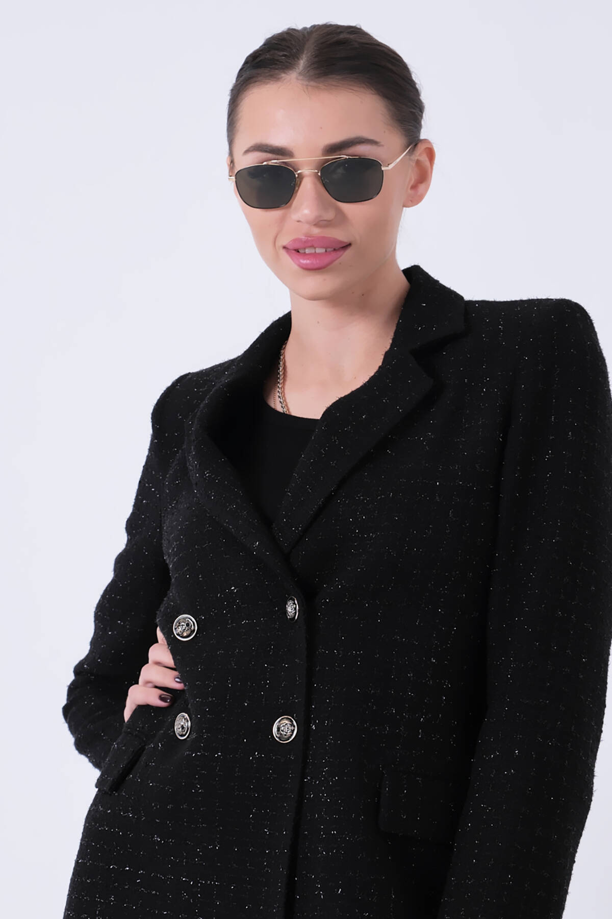 Siyah Simli Tüvit Metal Düğmeli Ceket 0105138.01
