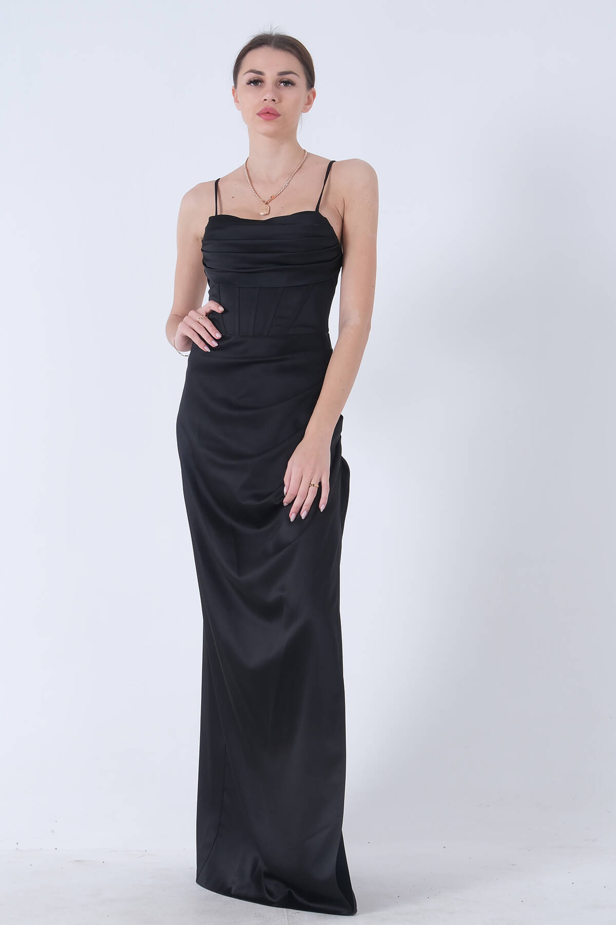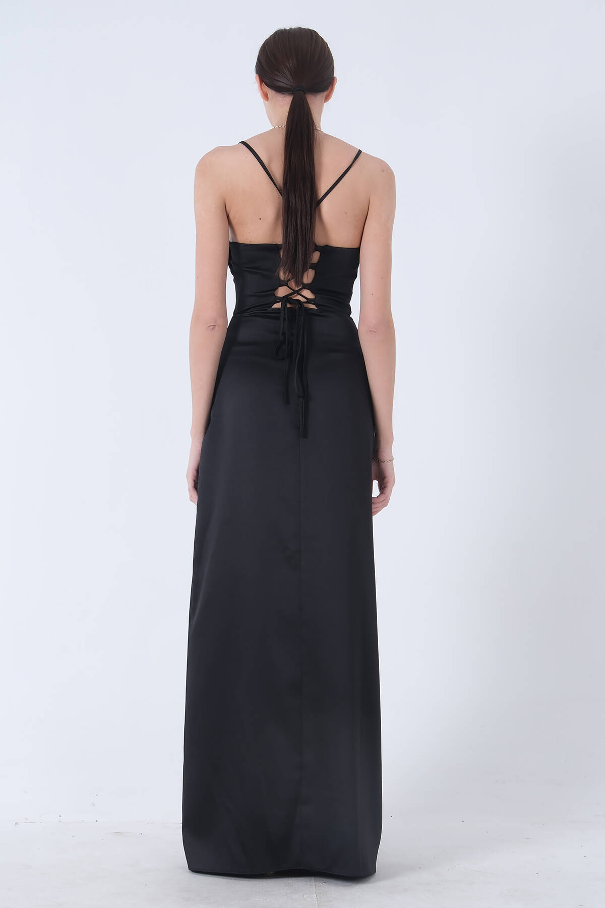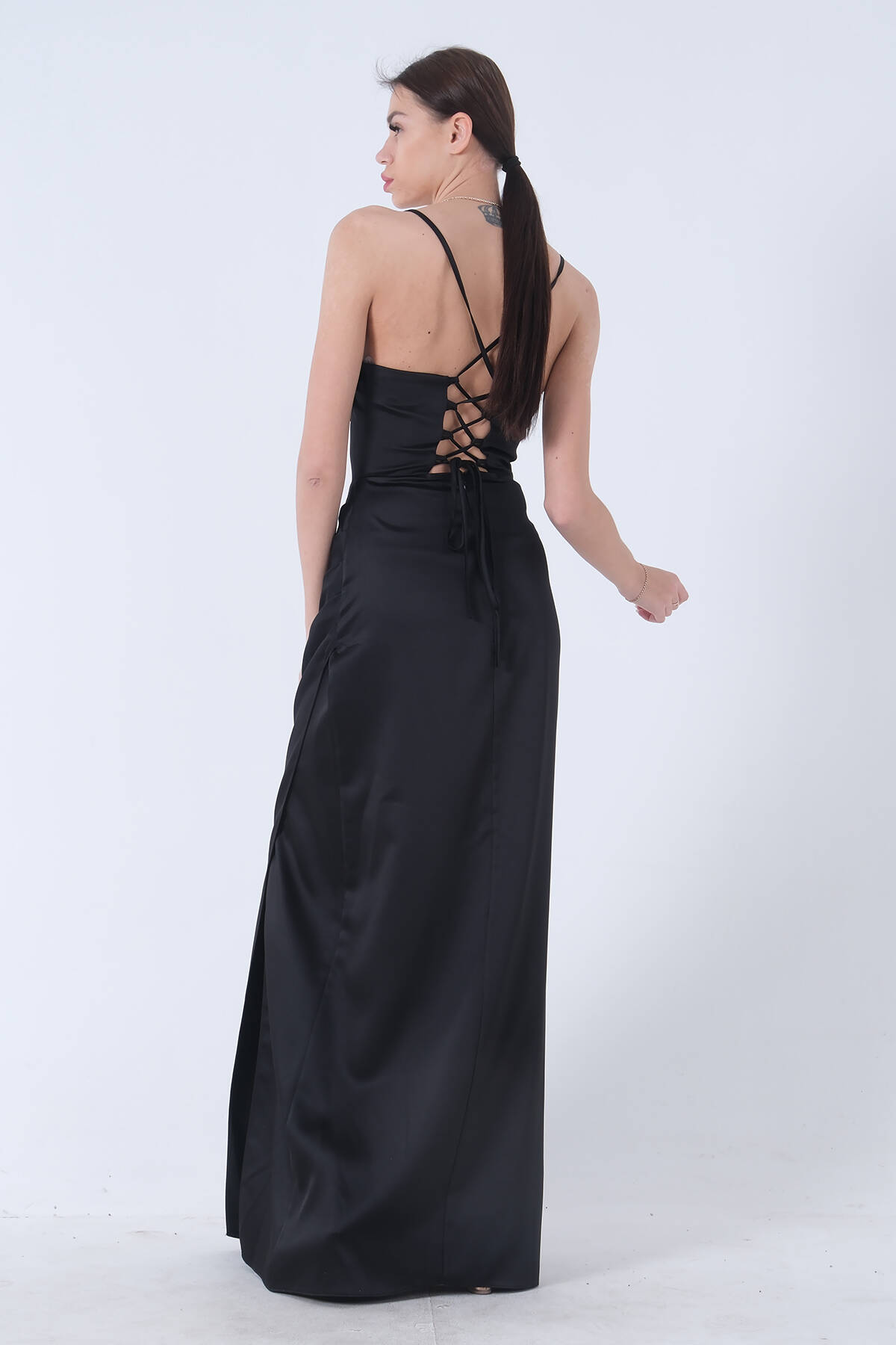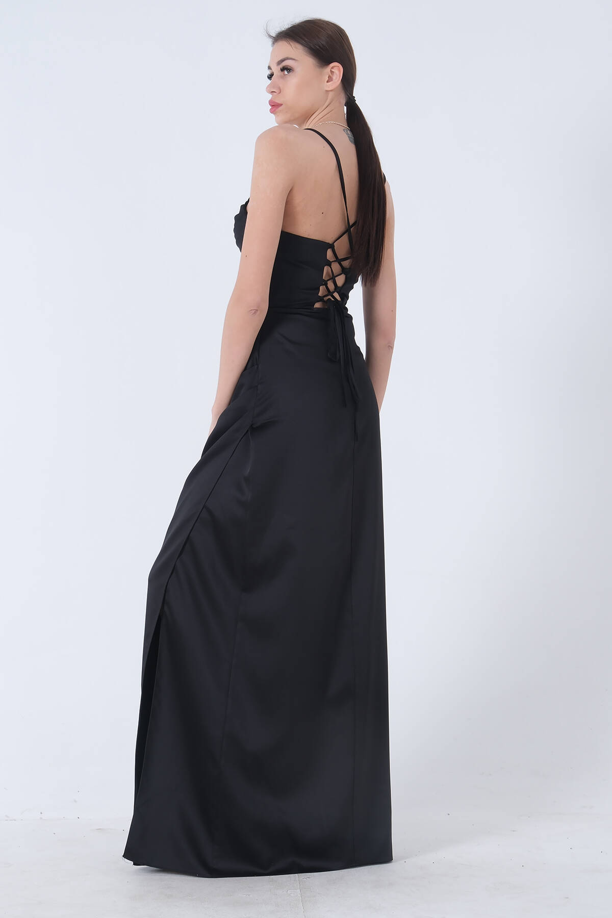 Siyah Sırtı Bağlamalı Yırtmaçlı Abiye 4522018.01