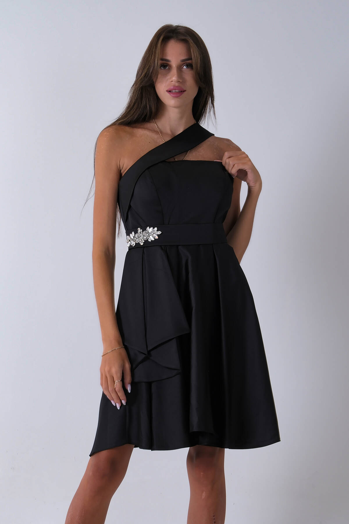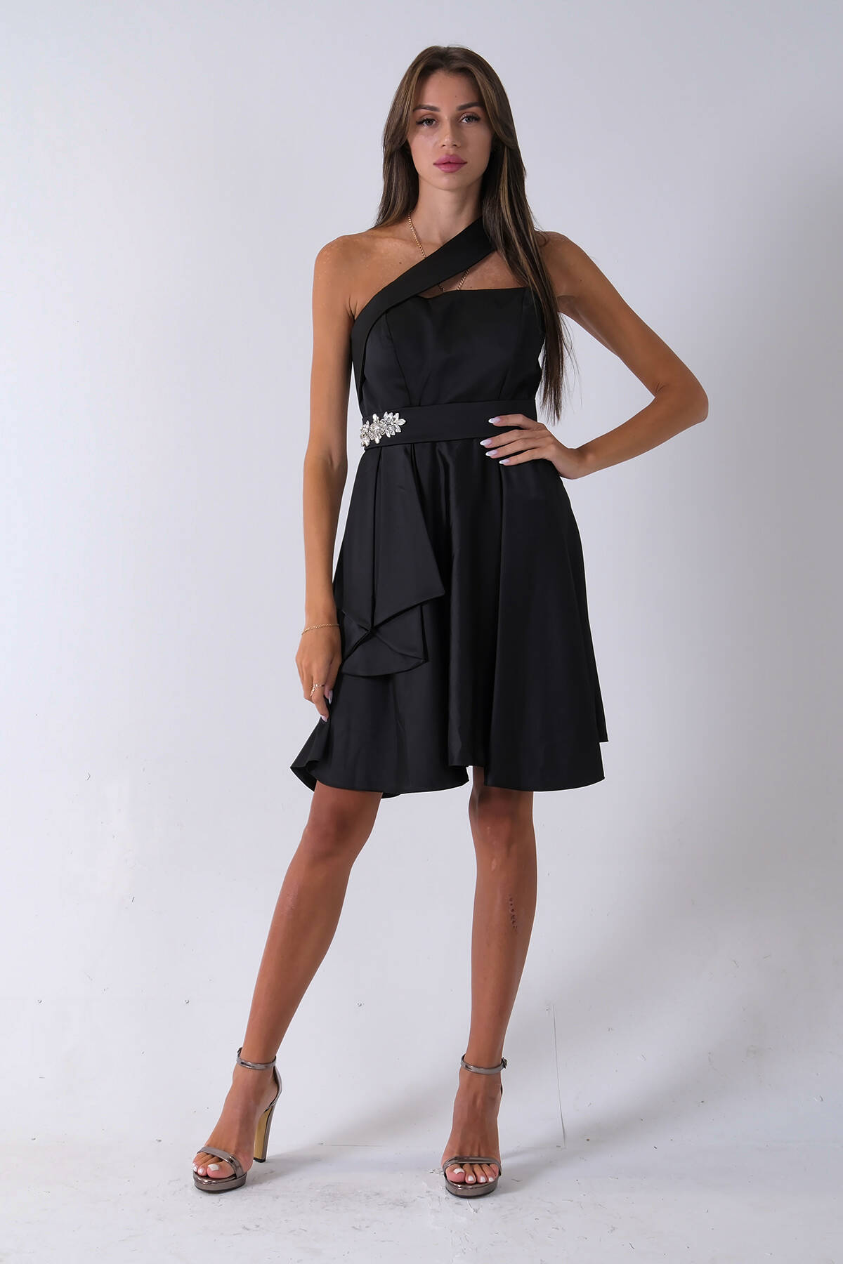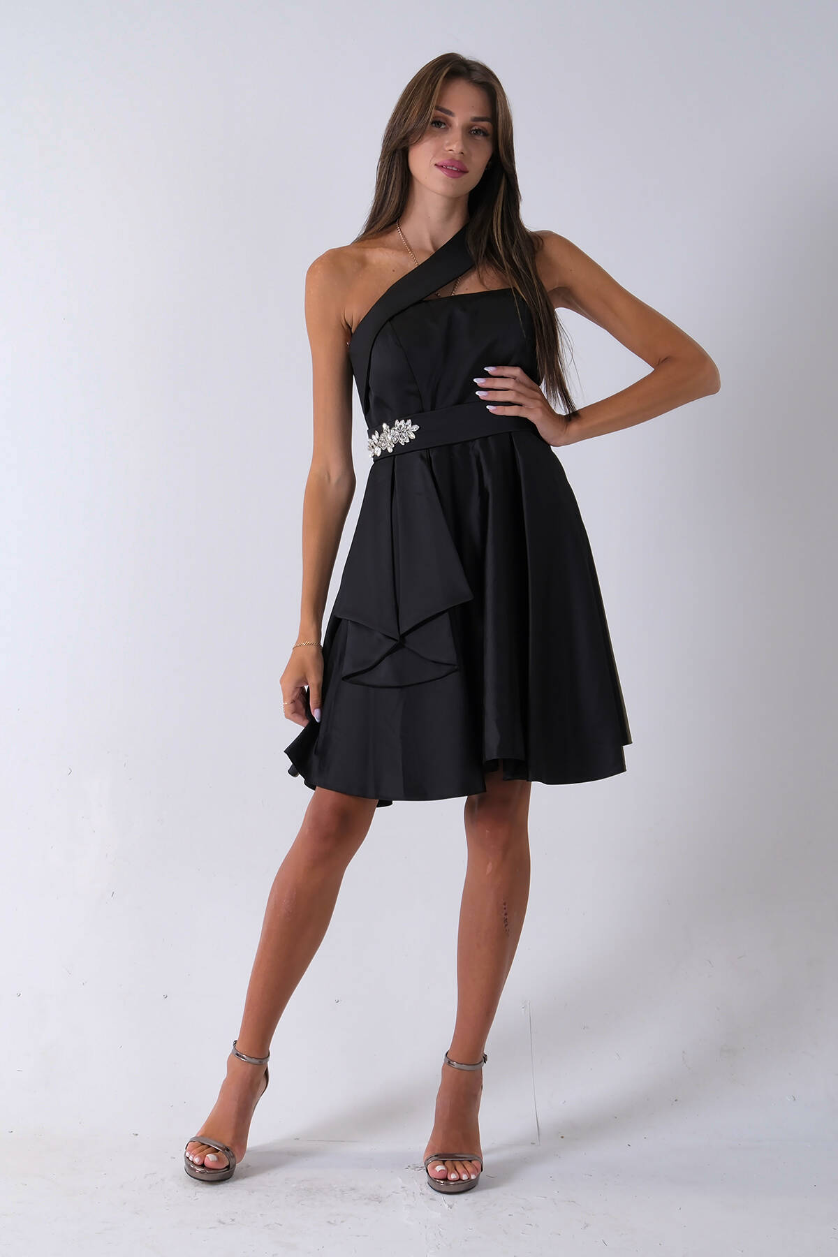 Siyah Straplez Kısa Drapeli Taş Detaylı Abiye 0801094.01