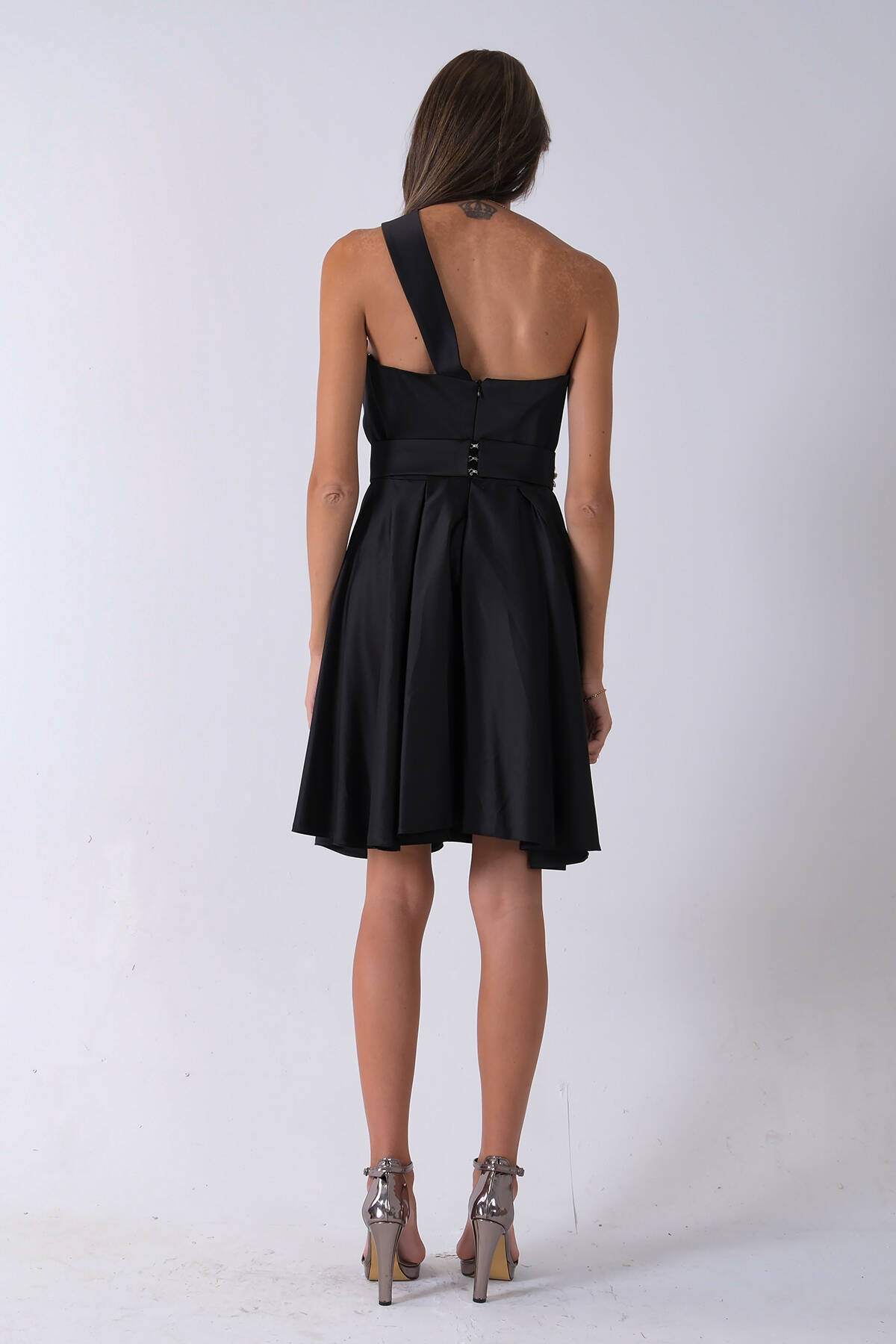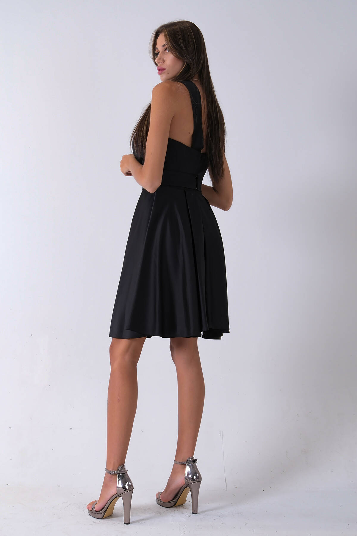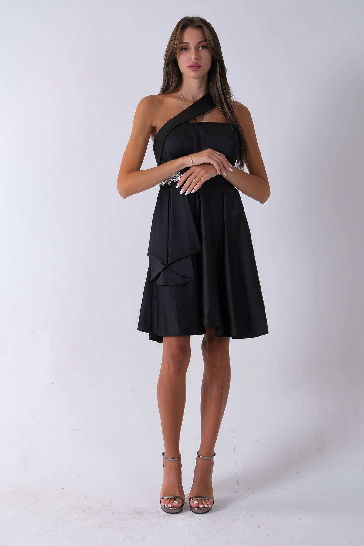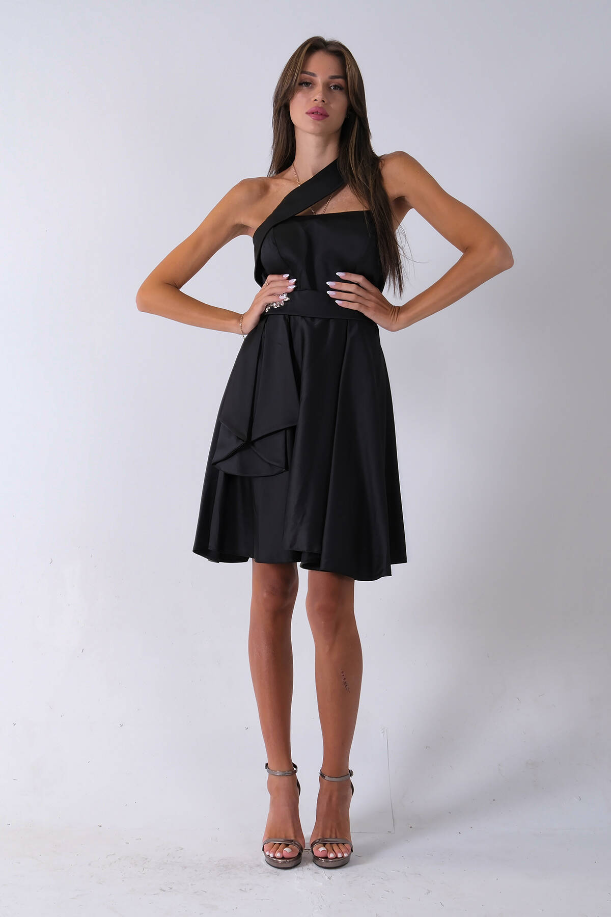 Siyah Straplez Kısa Drapeli Taş Detaylı Abiye 0801094.01