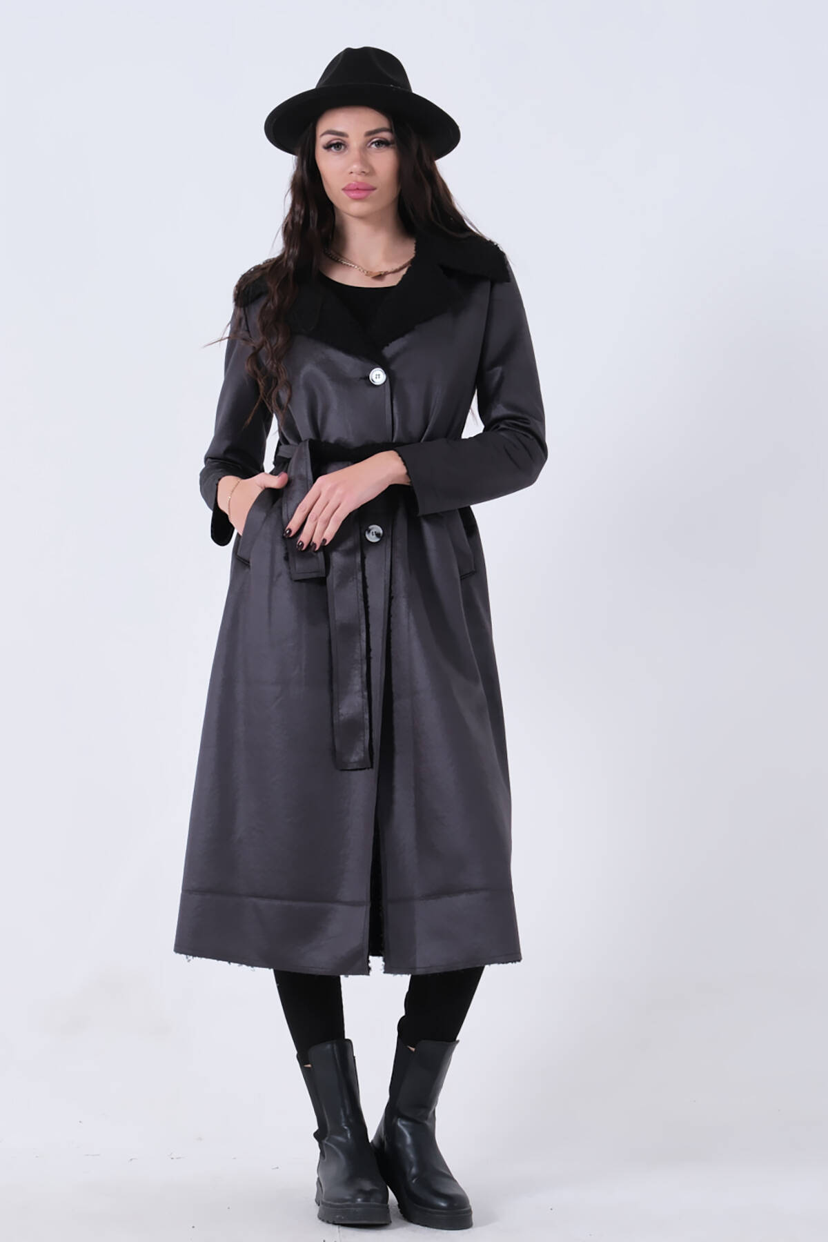 Siyah Süet Düğmeli Seyyar Kemerli Kaban 0108087.01