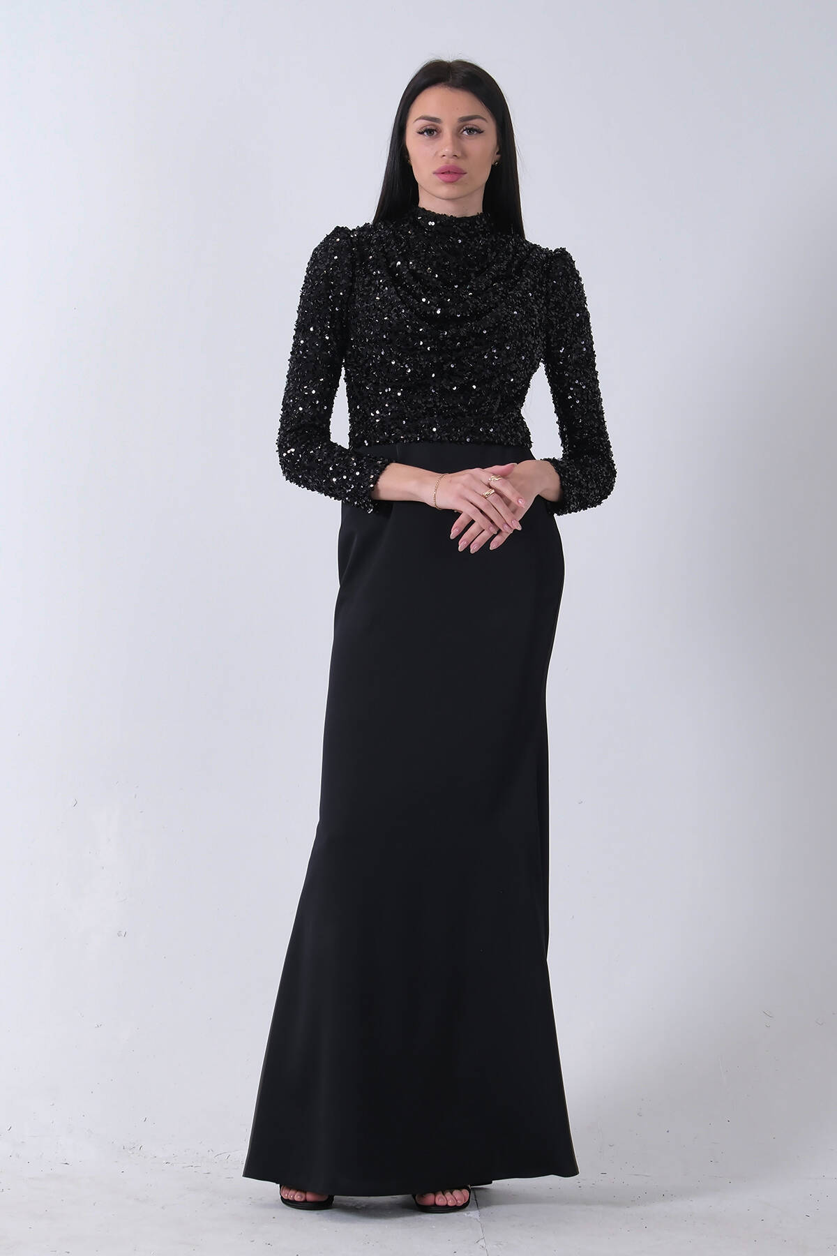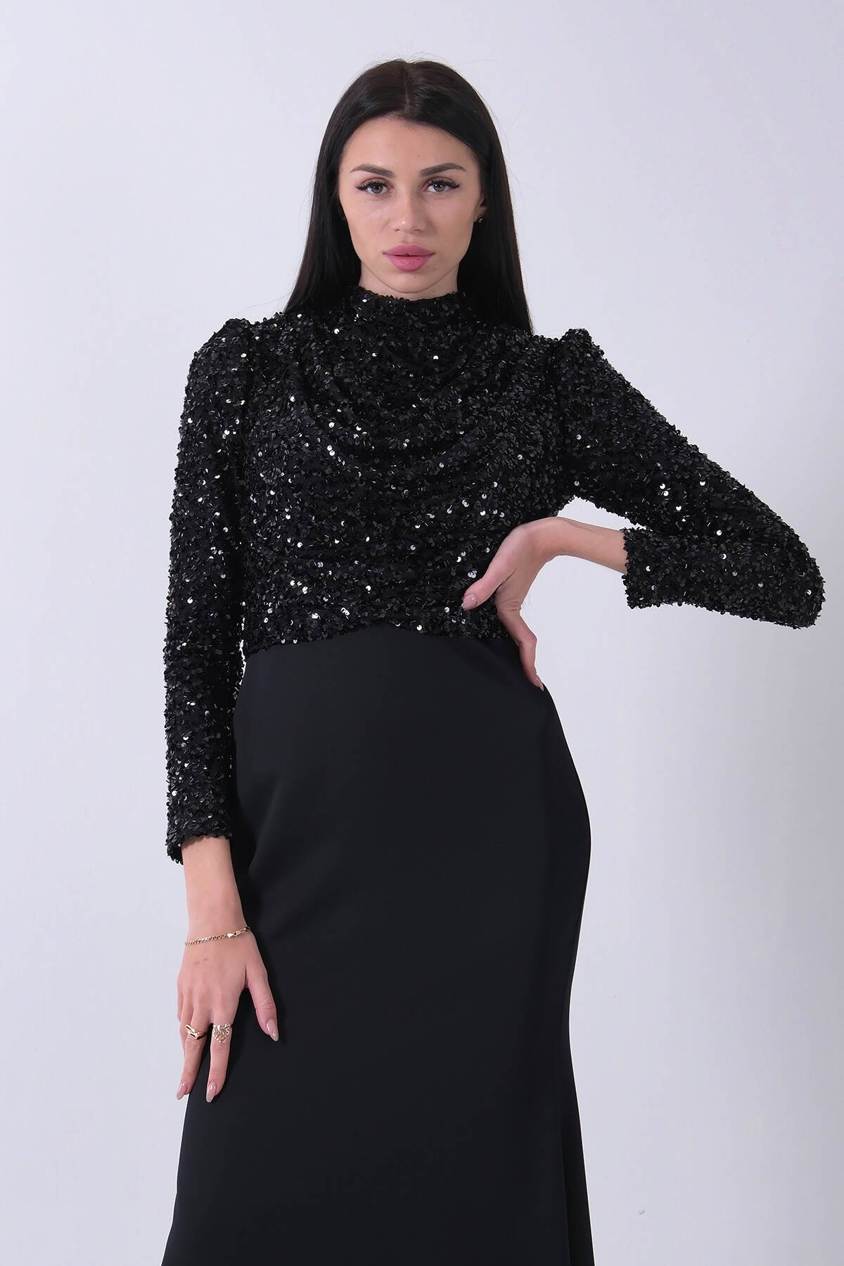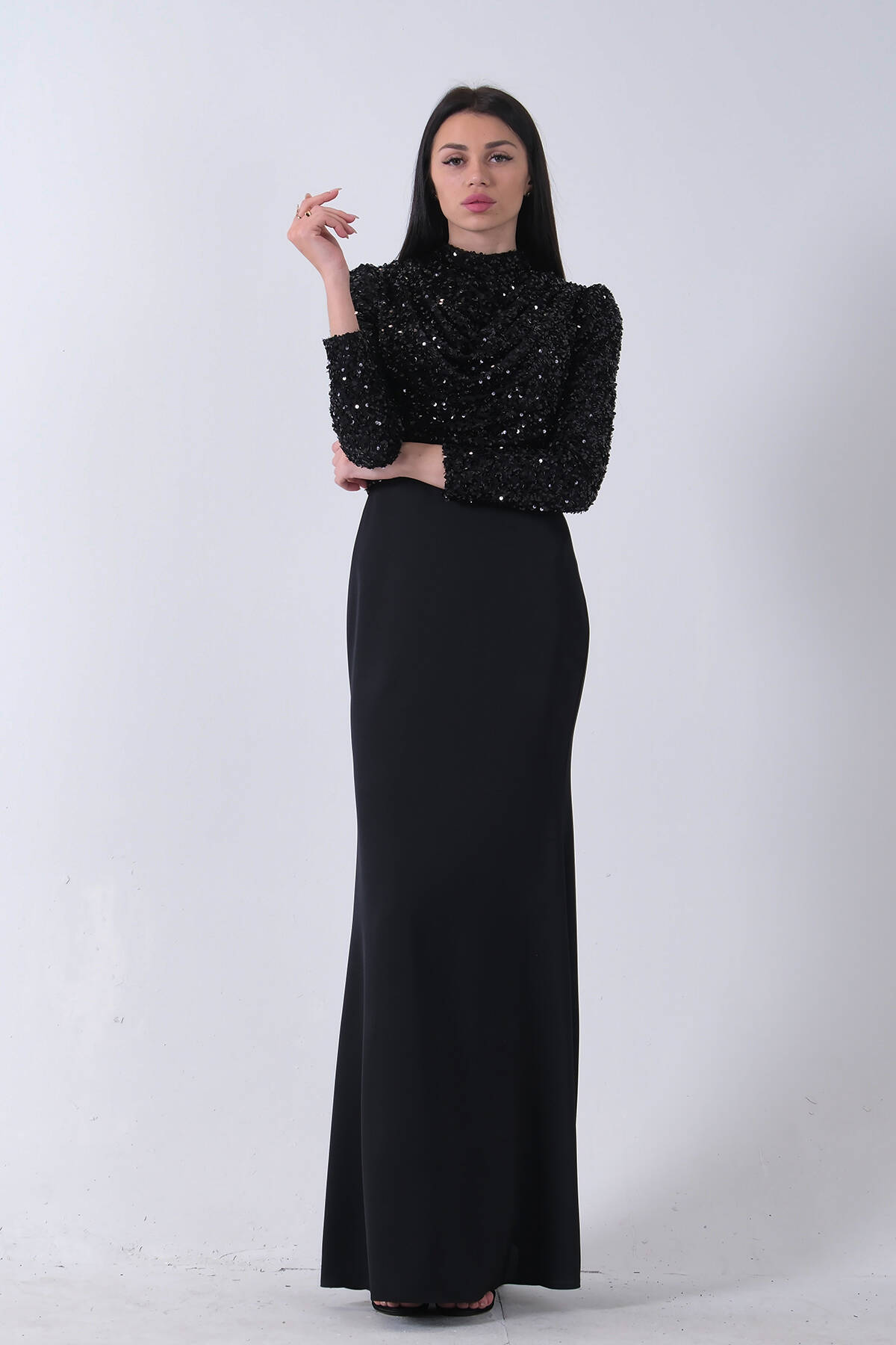 Siyah Üst Pul Payet Alt Krep Tesettür Abiye 6502497.01