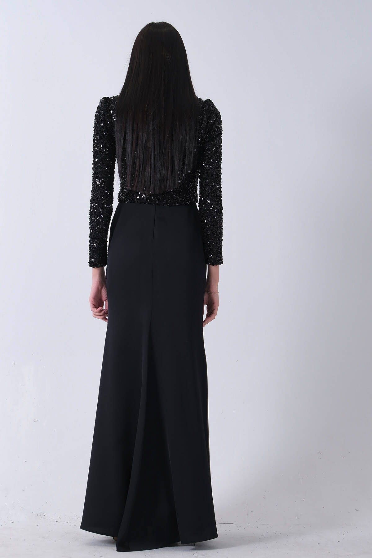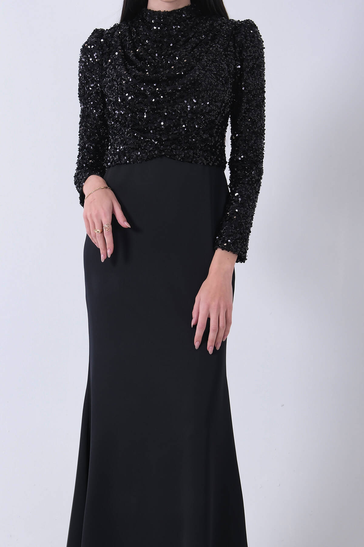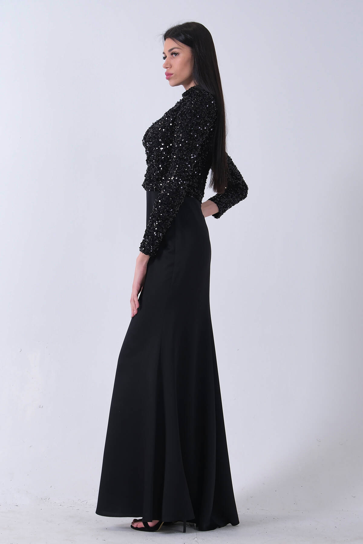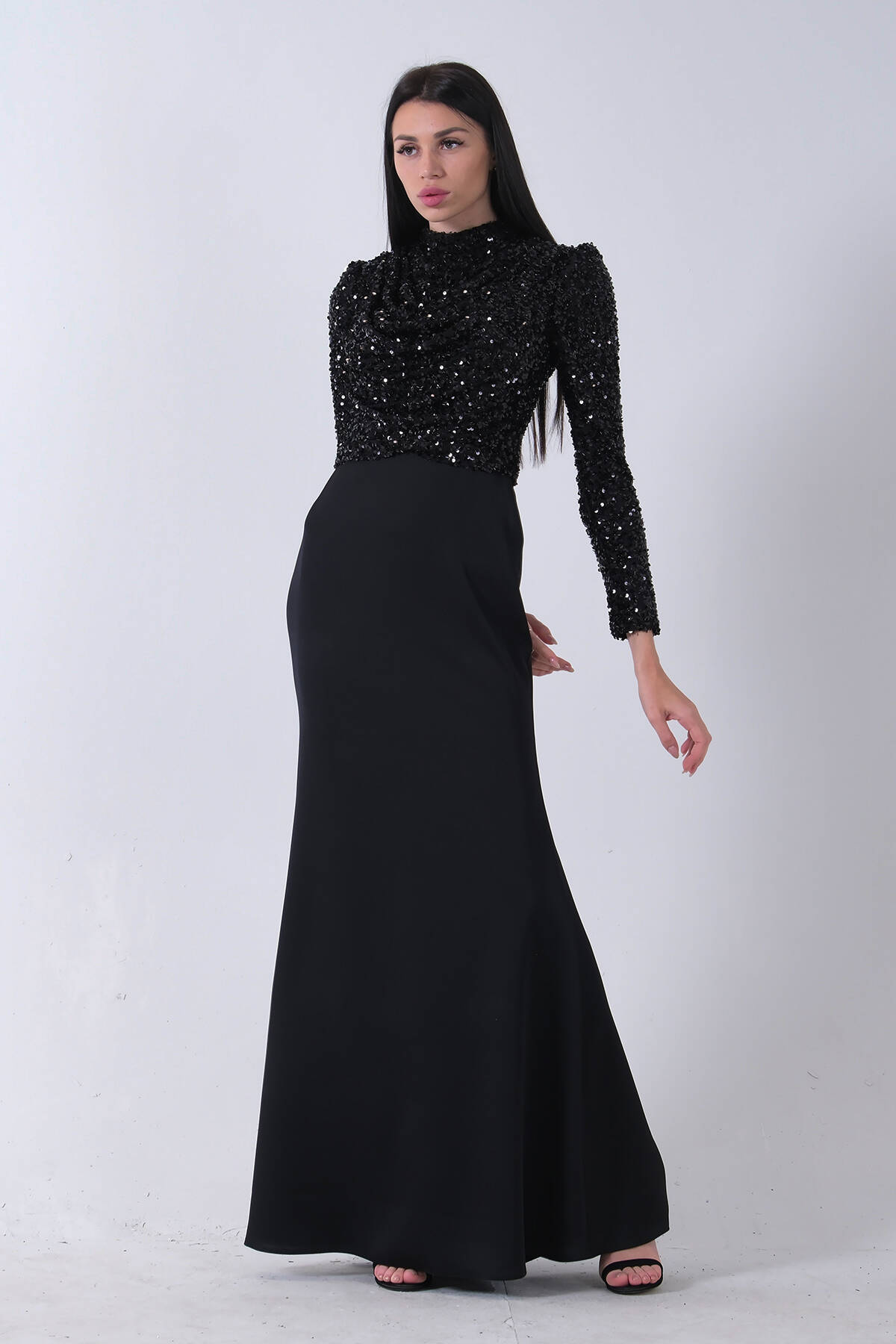 Siyah Üst Pul Payet Alt Krep Tesettür Abiye 6502497.01