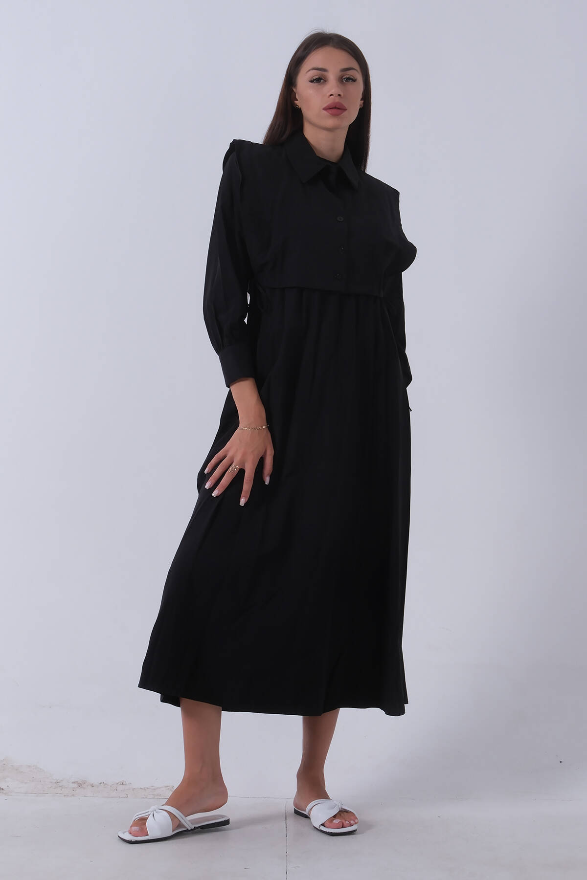 Siyah Üzeri Kendinden Gömlek Detaylı Tesettür Elbise 4593306.01