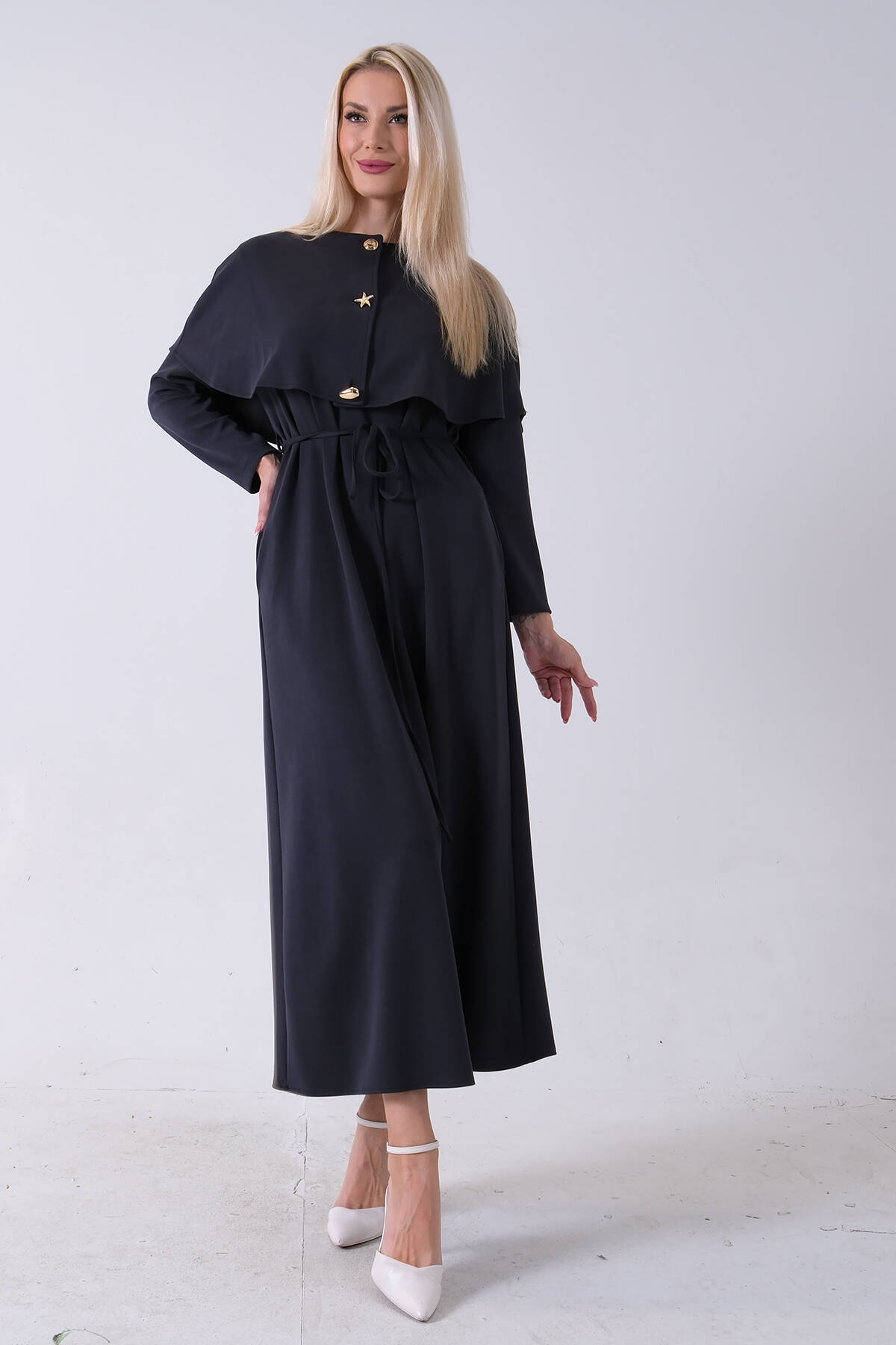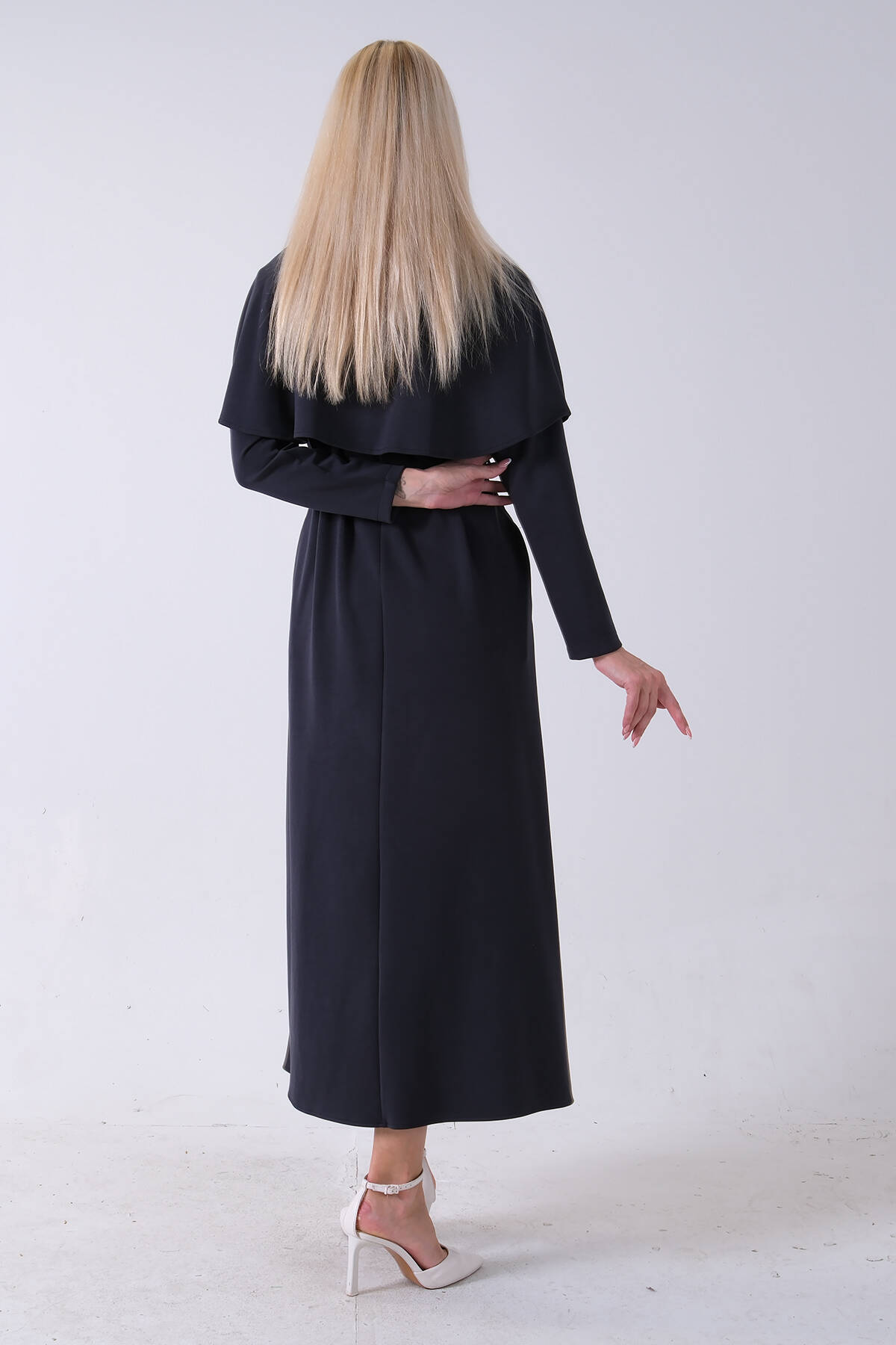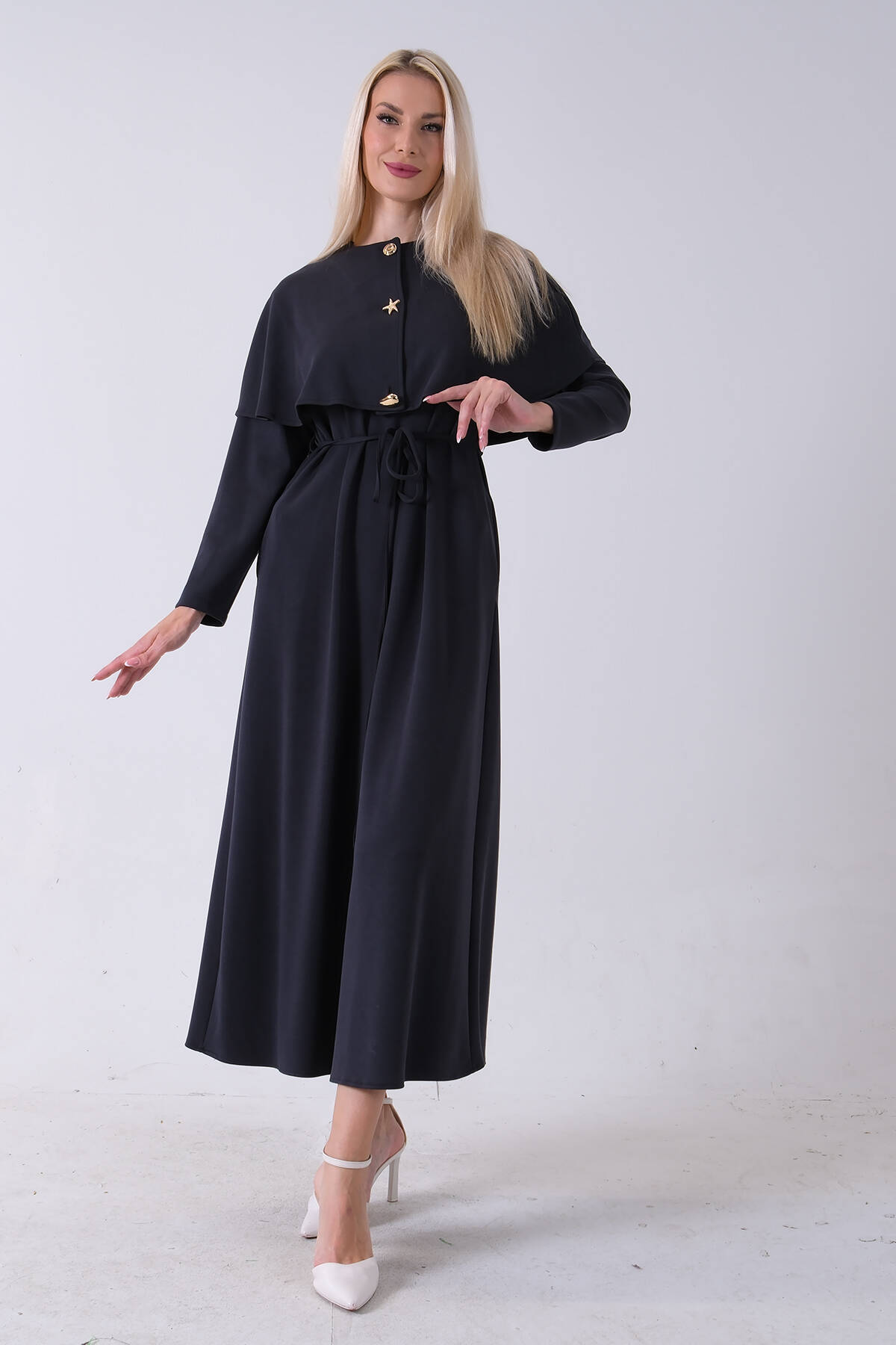 Siyah Üzeri Kendinden Şallı Kemer Bağlamalı Tesettür Elbise 4571581.01