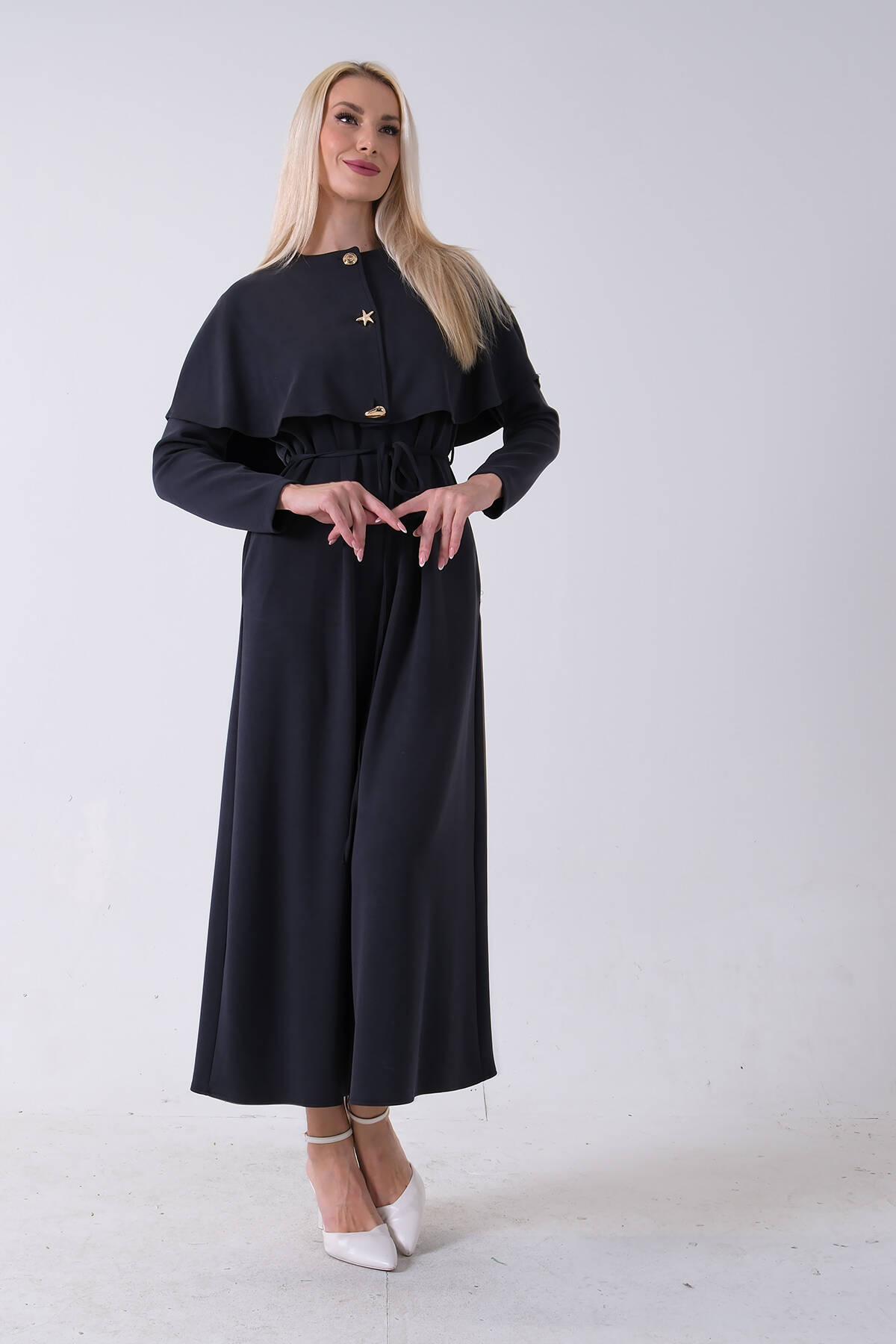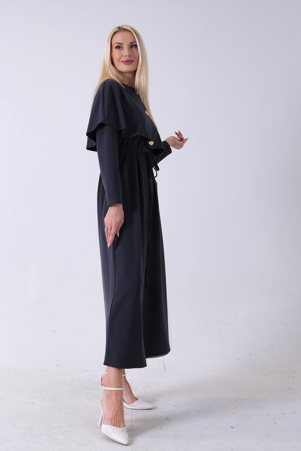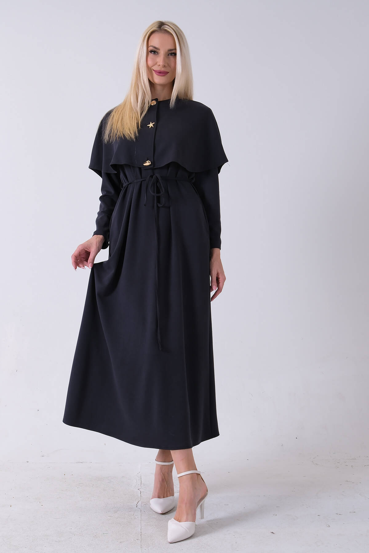 Siyah Üzeri Kendinden Şallı Kemer Bağlamalı Tesettür Elbise 4571581.01