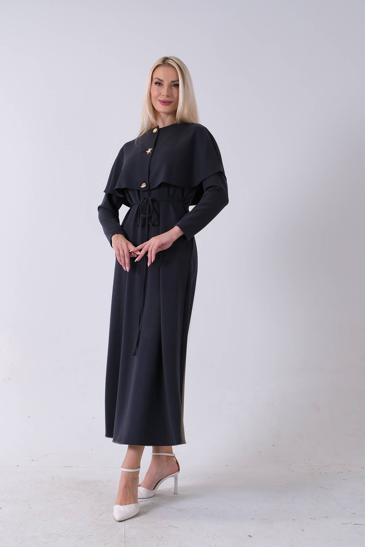 Haki Omuz Fiyonk Detaylı Kemerli Bisiklet Yaka Scuba Tesettür Elbise 4593456.23