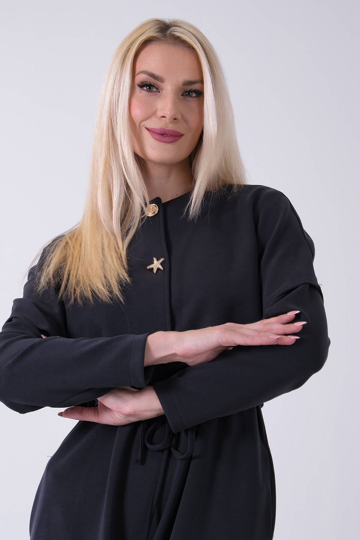 Haki Boydan Düğme Kapamalı Bileği Lastikli Beli Kemerli Elbise 4593459.23