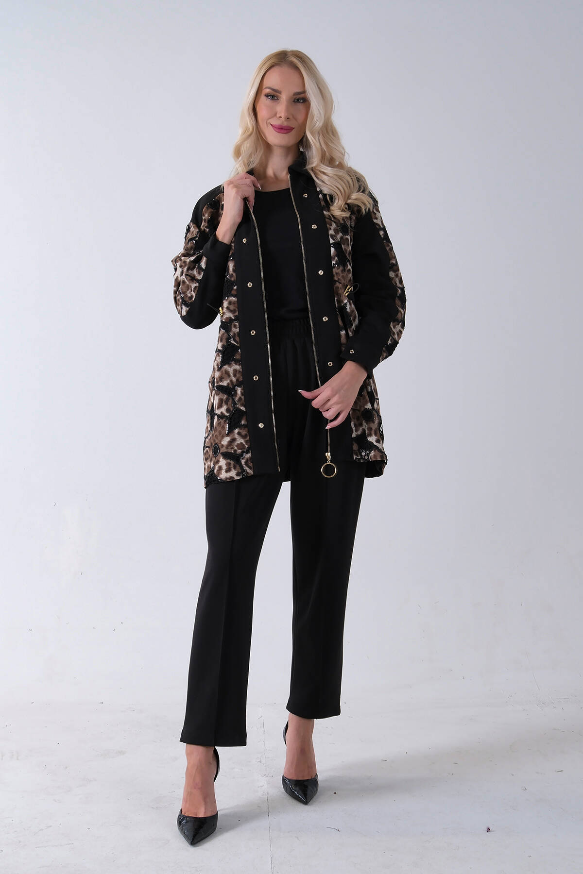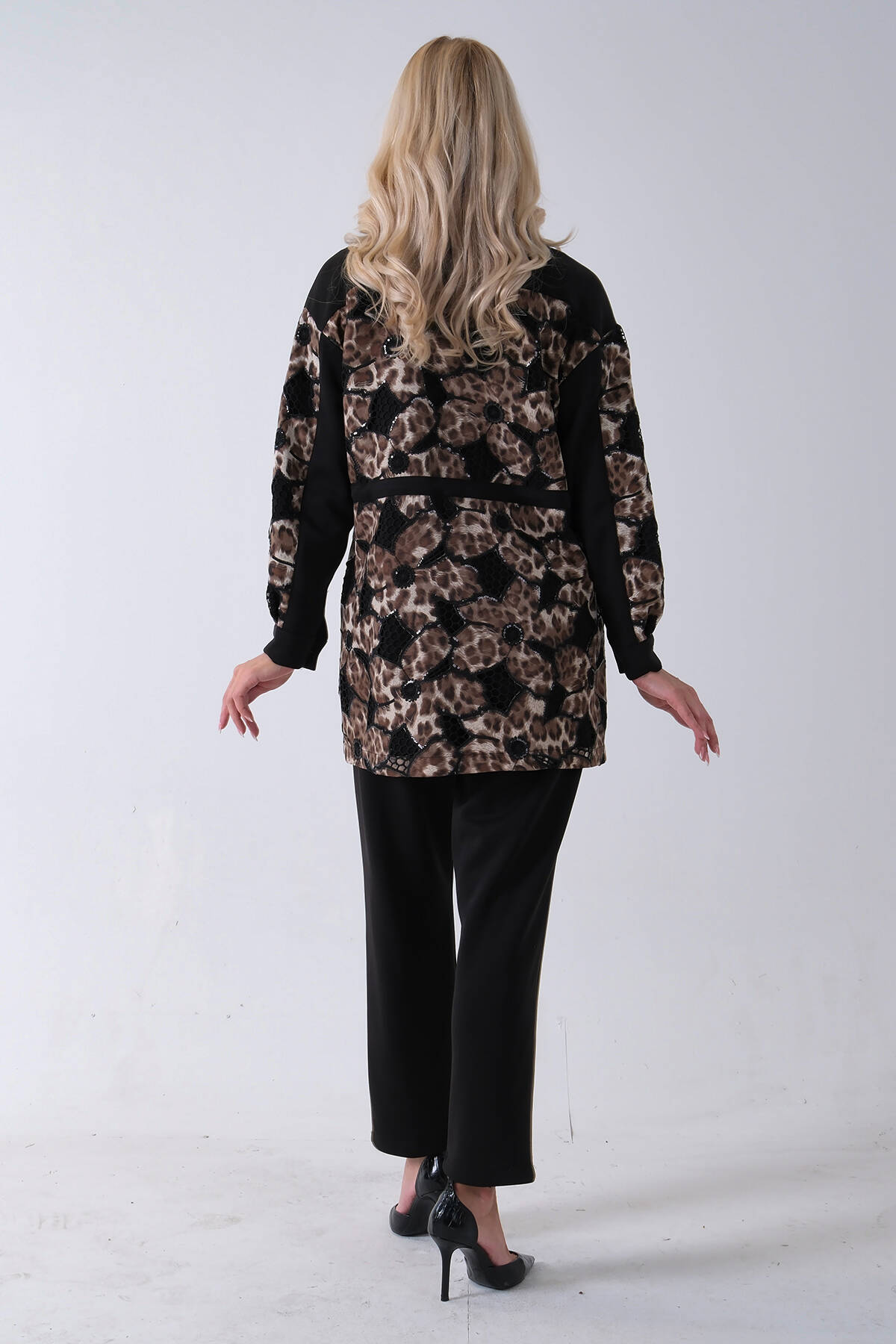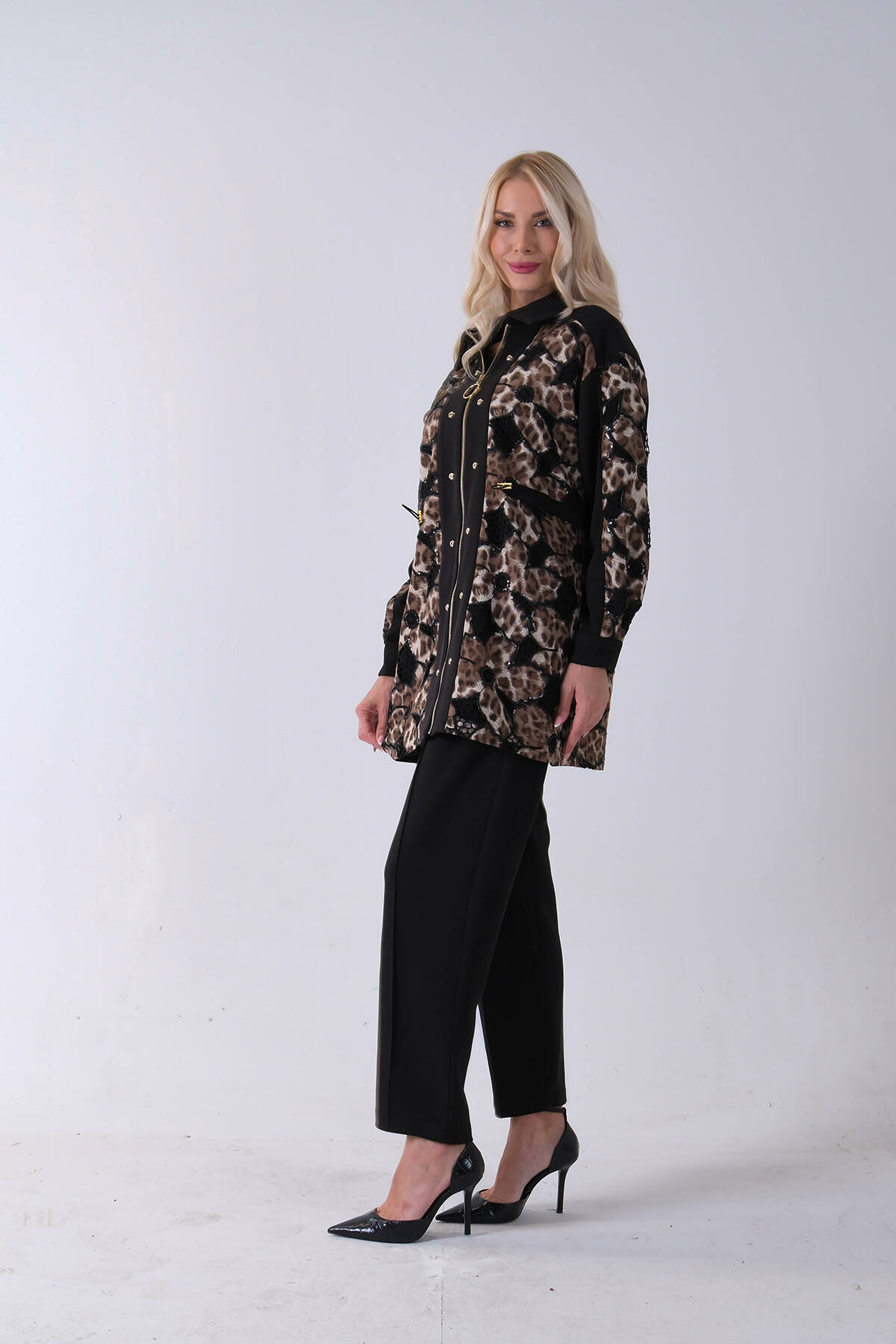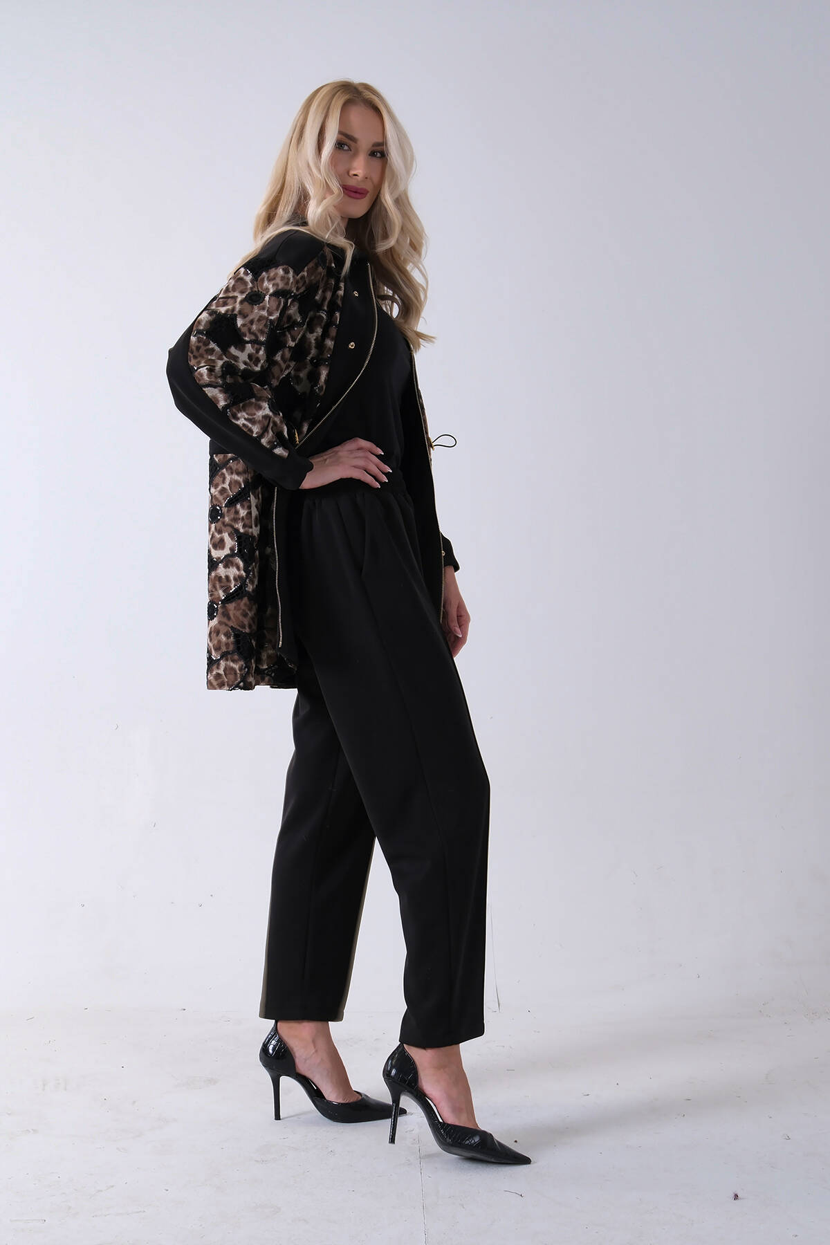 Siyah Üzeri Leopar Desenli Belden Lastikli Pantolon Tunikli Takım 4701402.01