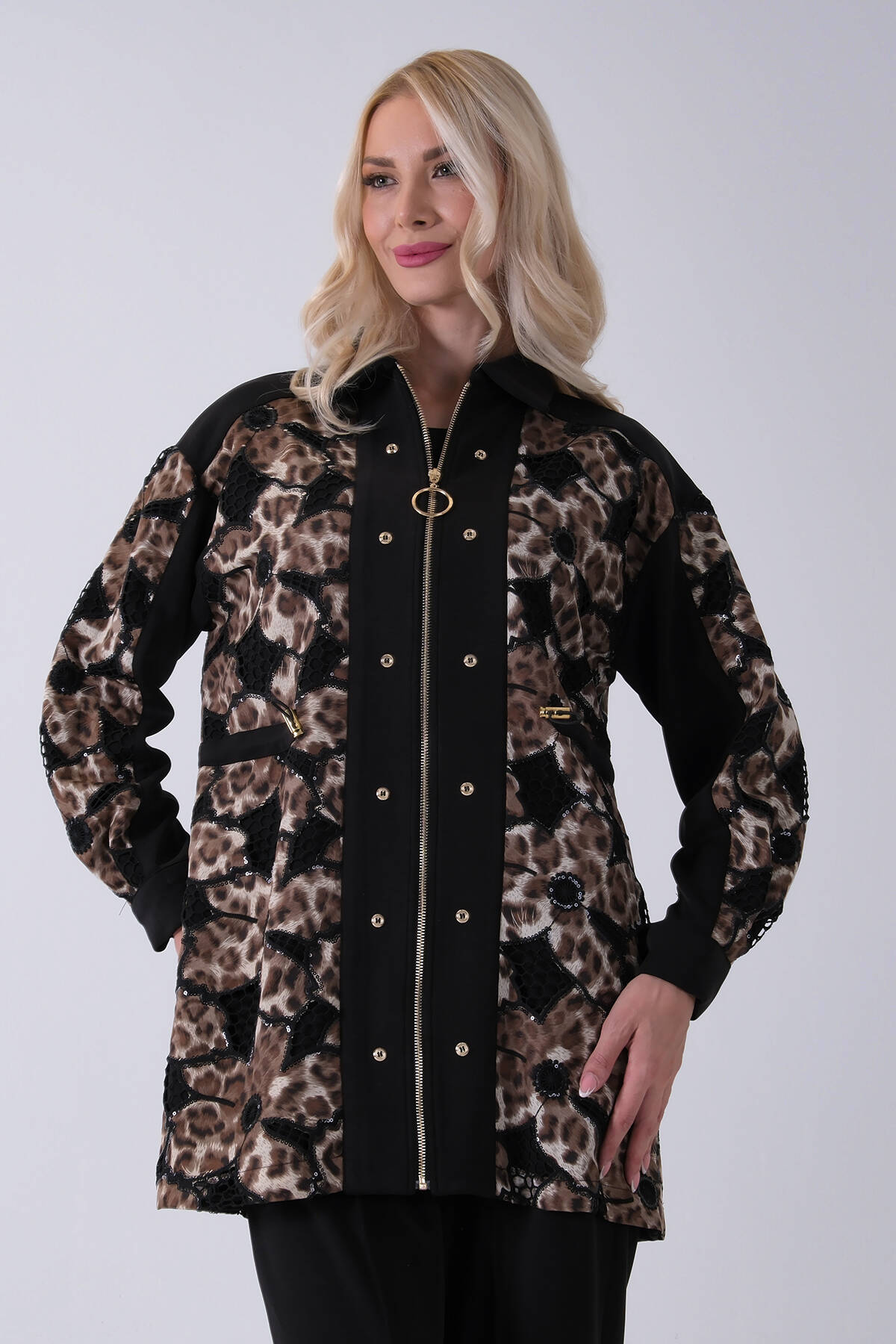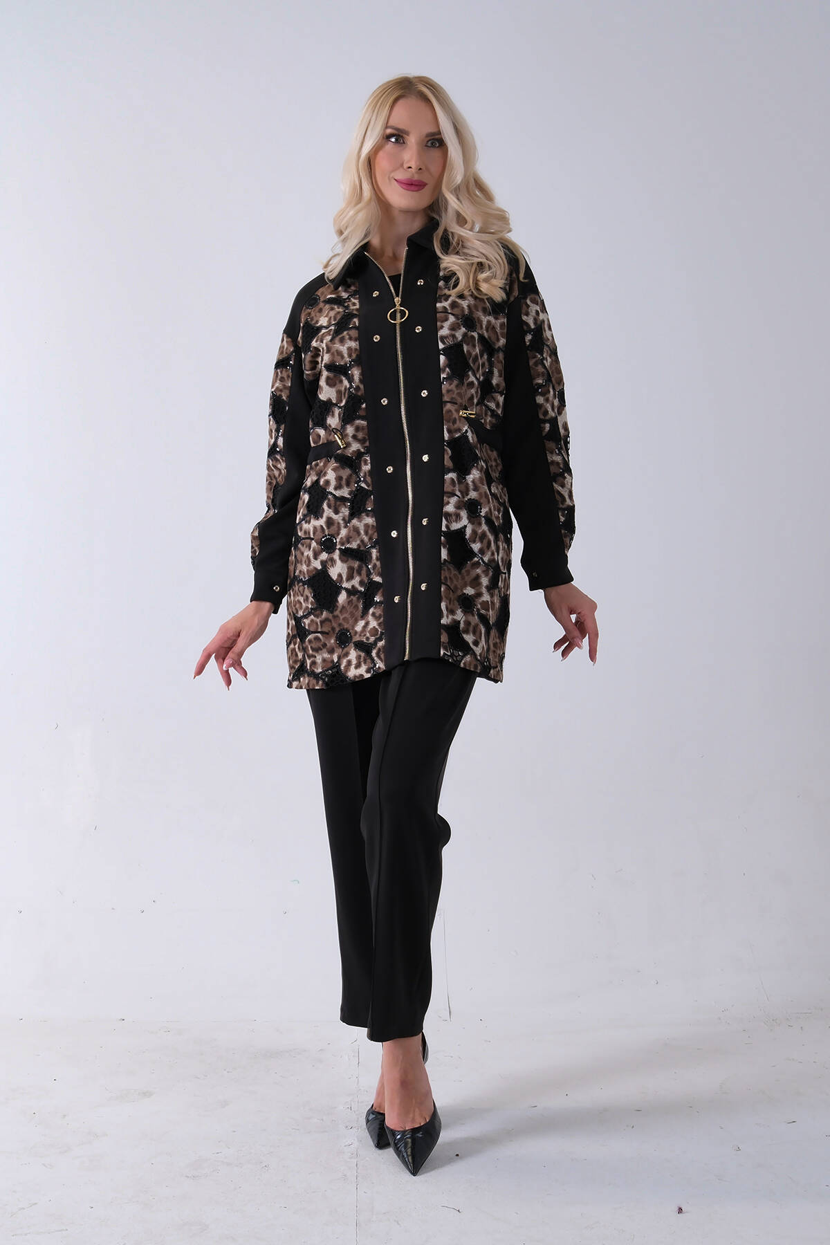 Taş Üzeri Desenli Yaka Deri Detaylı Fermuar Kapamalı Tunik Pantolonlu Takım 4703058.50