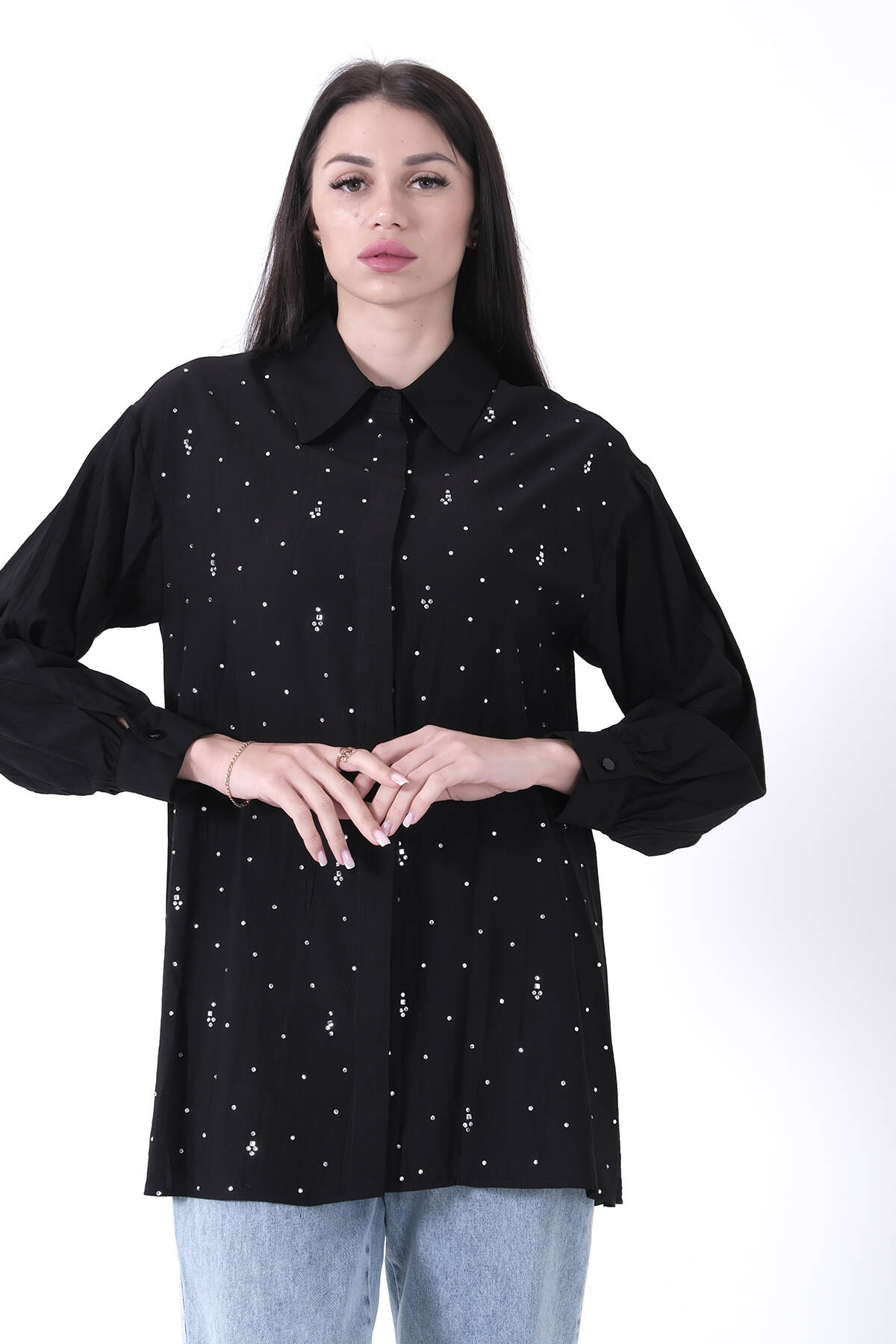 Siyah Üzeri Taş Detaylı Gizli Düğmeli Tunik 44510646.01