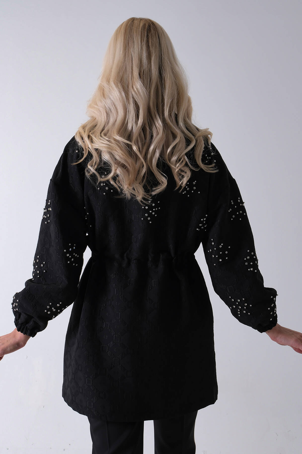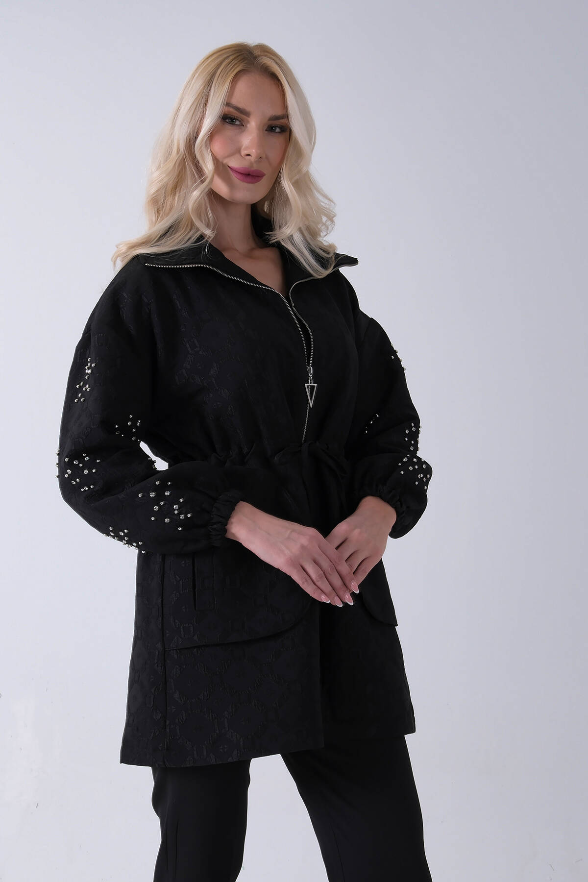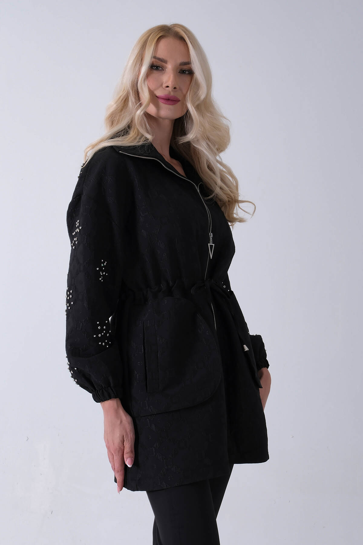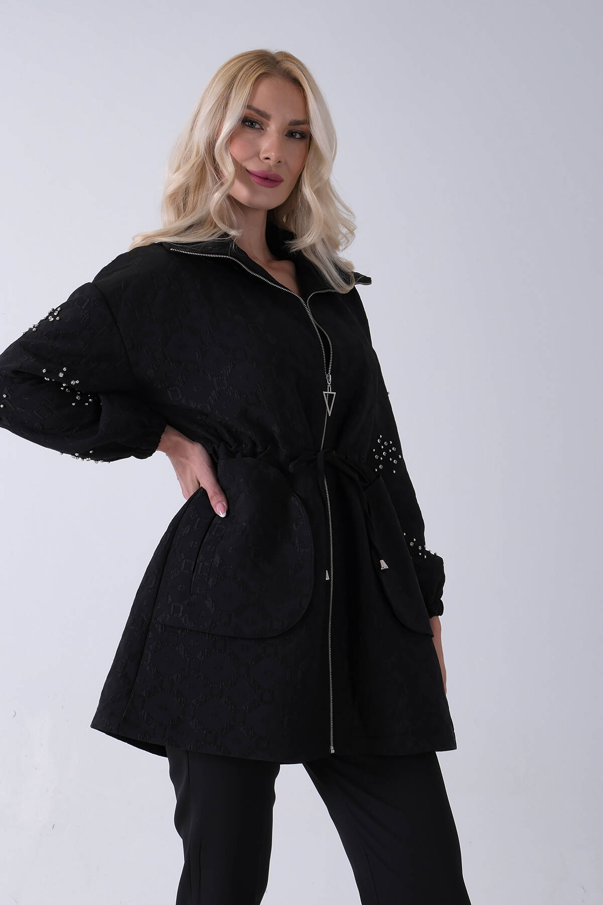 Siyah Üzeri Taş Detaylı Yandan Cepli Trenç 940140177.01