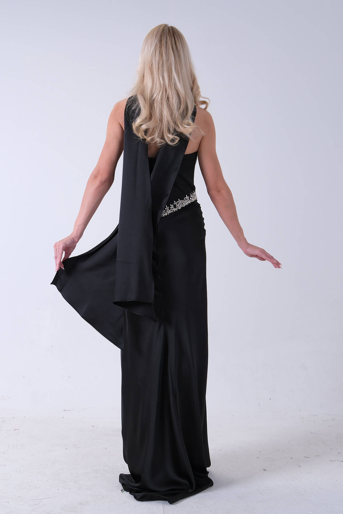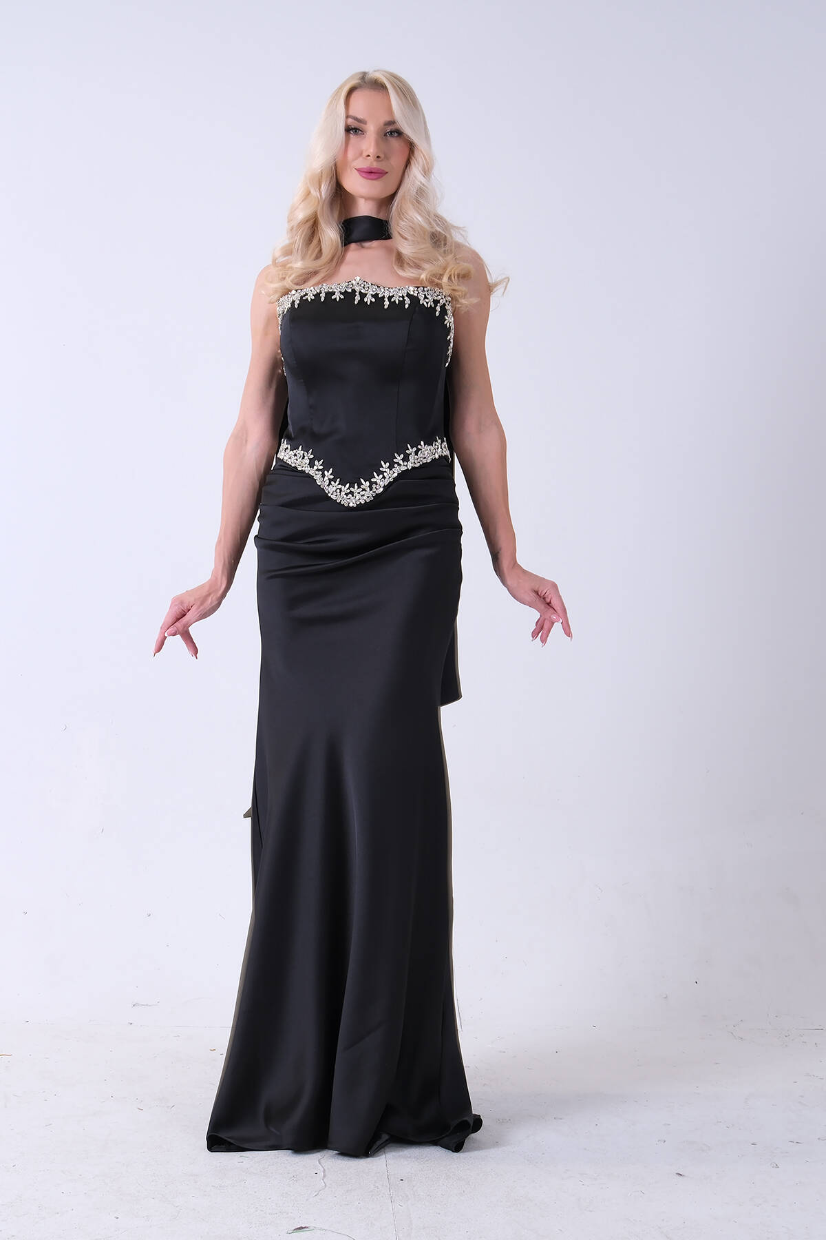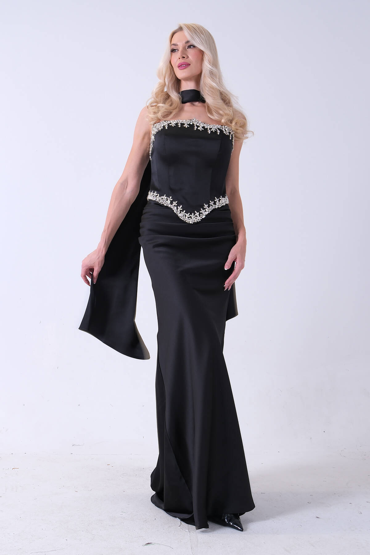 Siyah Üzeri Taş İşleme Detaylı Kuşak Bağlama Detaylı Straplez Abiye 08011801.01