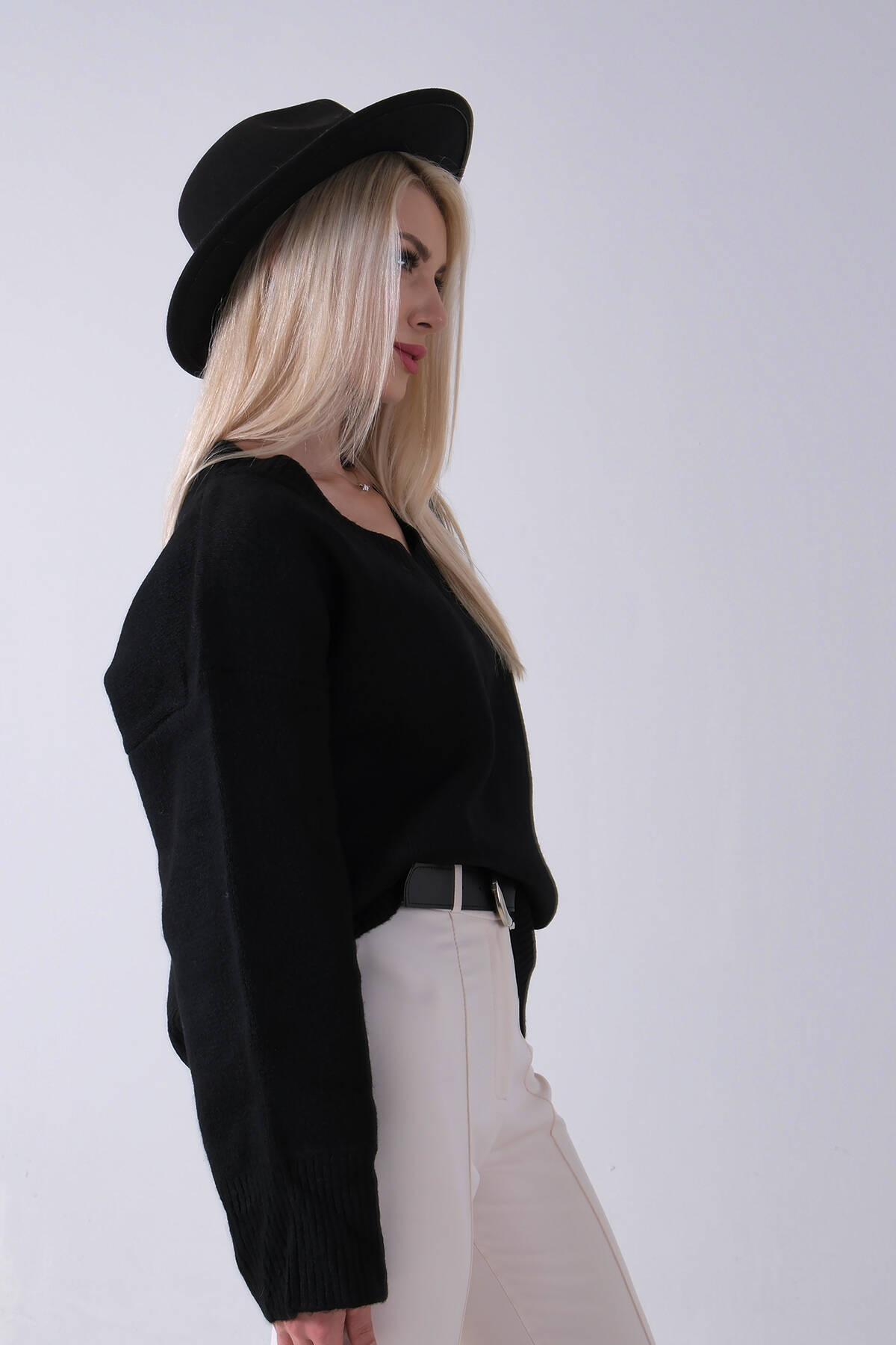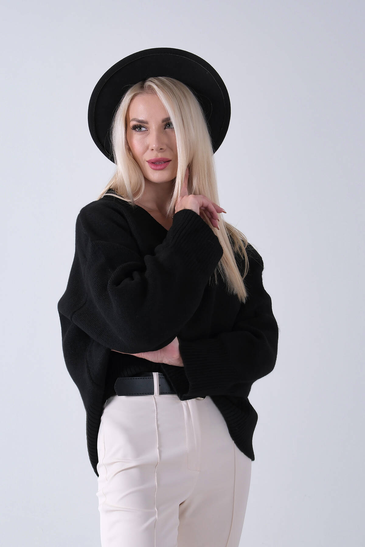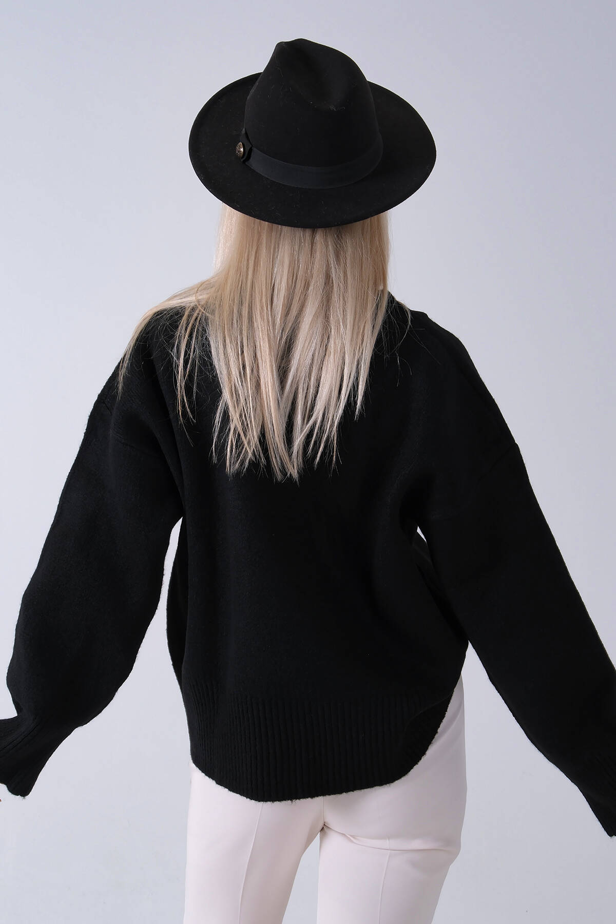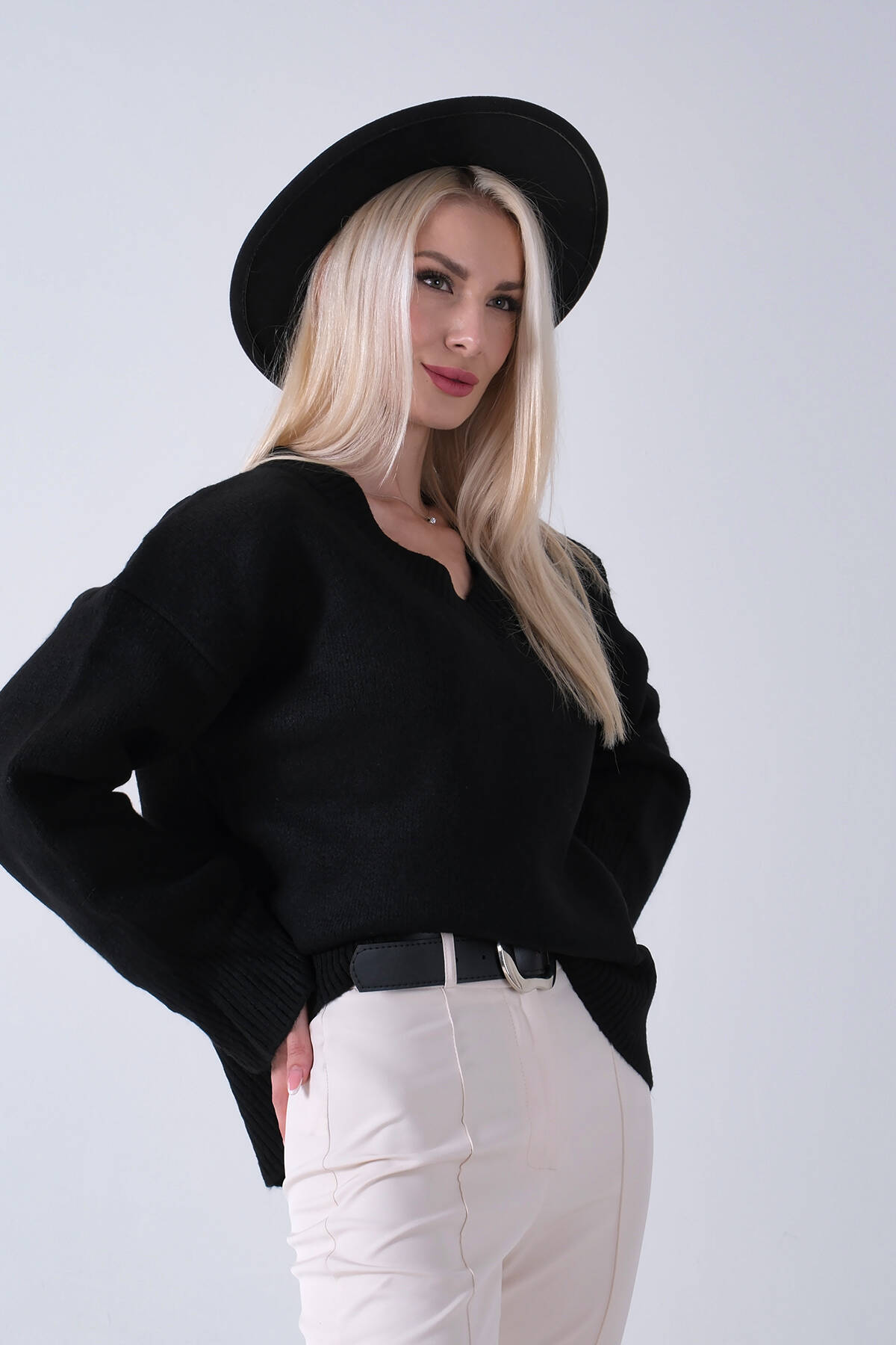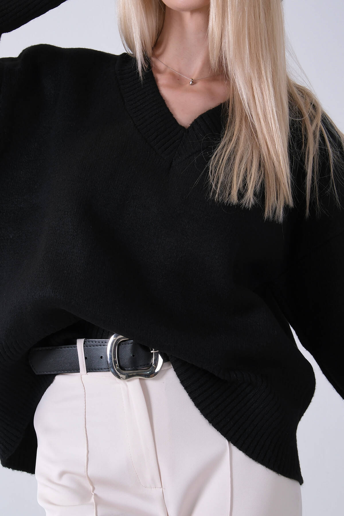 Siyah V Yaka Beli Lastikli Triko Kazak 46892623.01