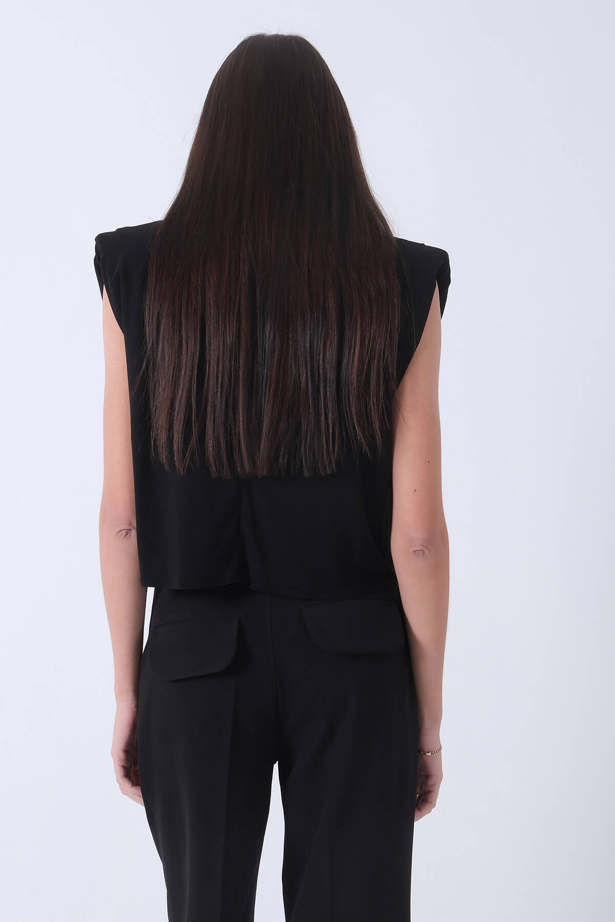 Siyah Vatkalı Sıfır Kol Bluz 4202720.01