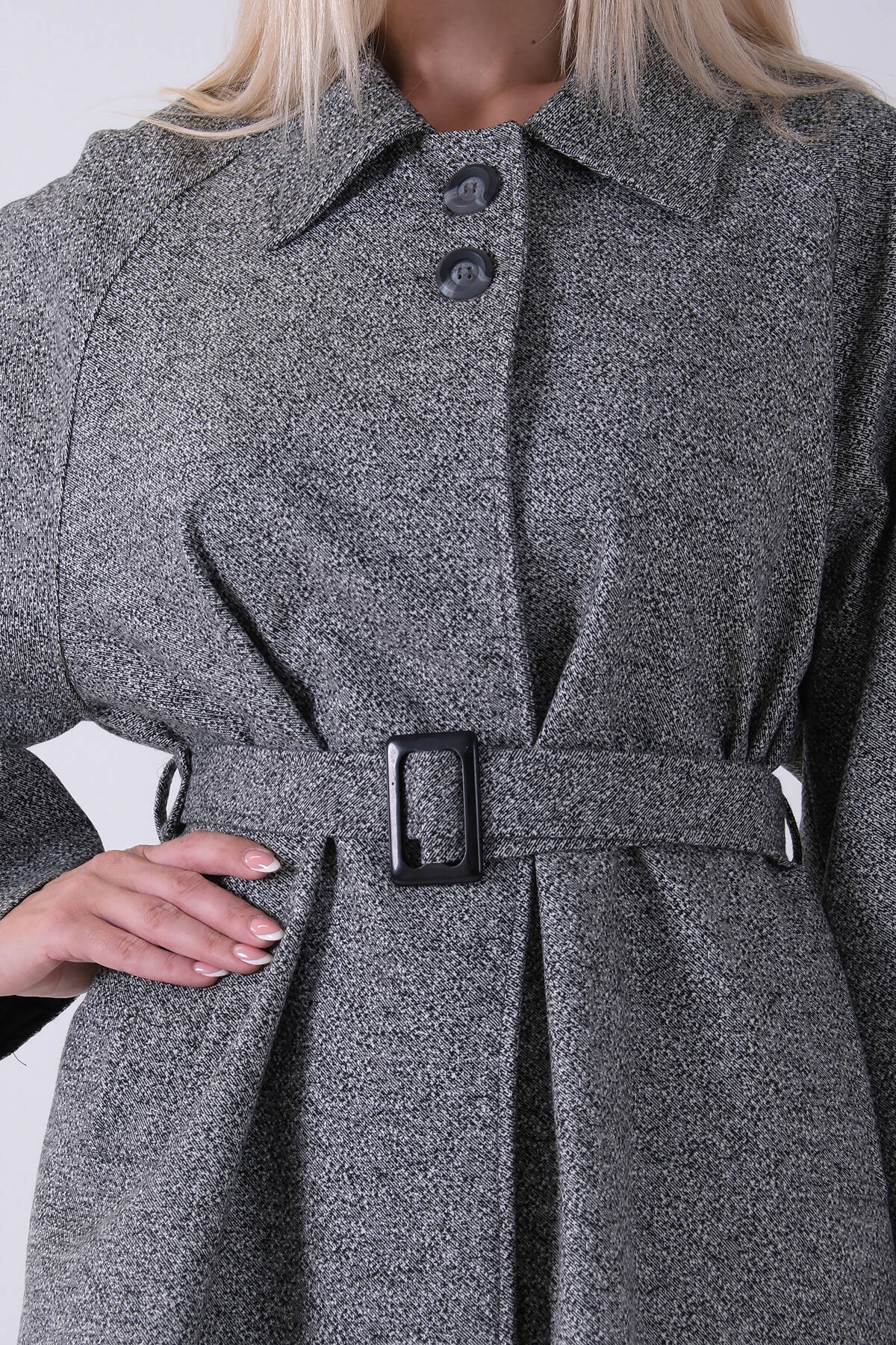 Siyah Yaka 2 Düğme Kapamalı Yandan Cepli Kemerli Kaban 4578039.01