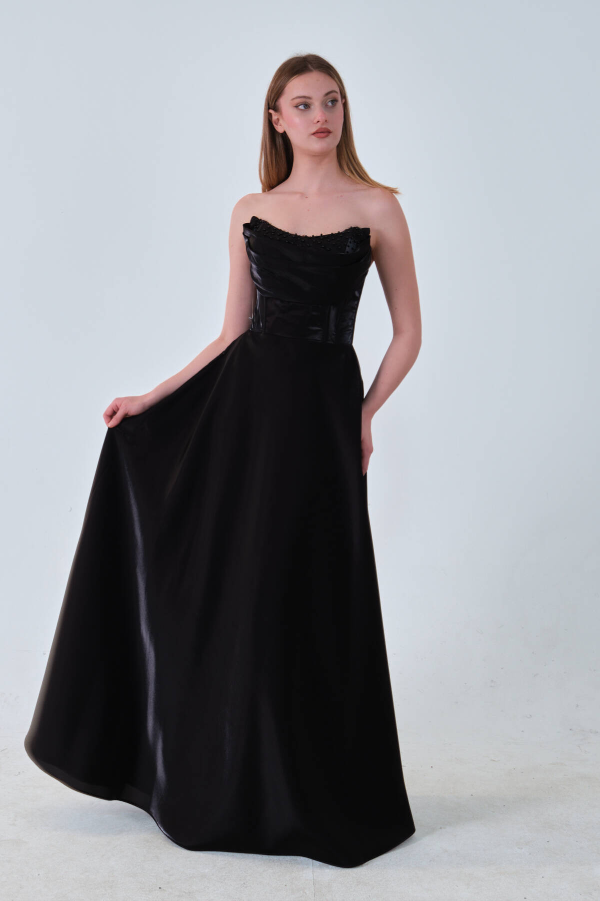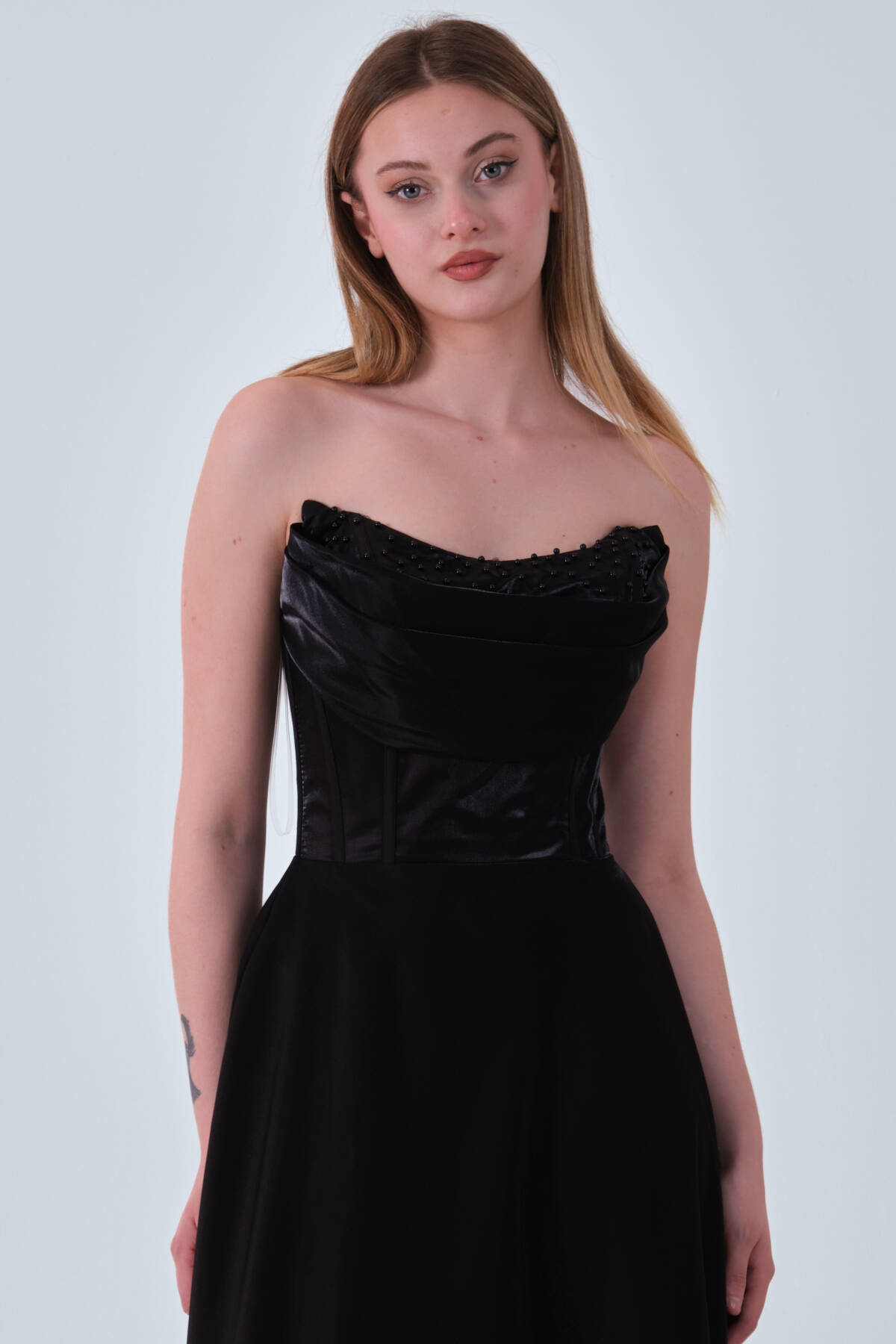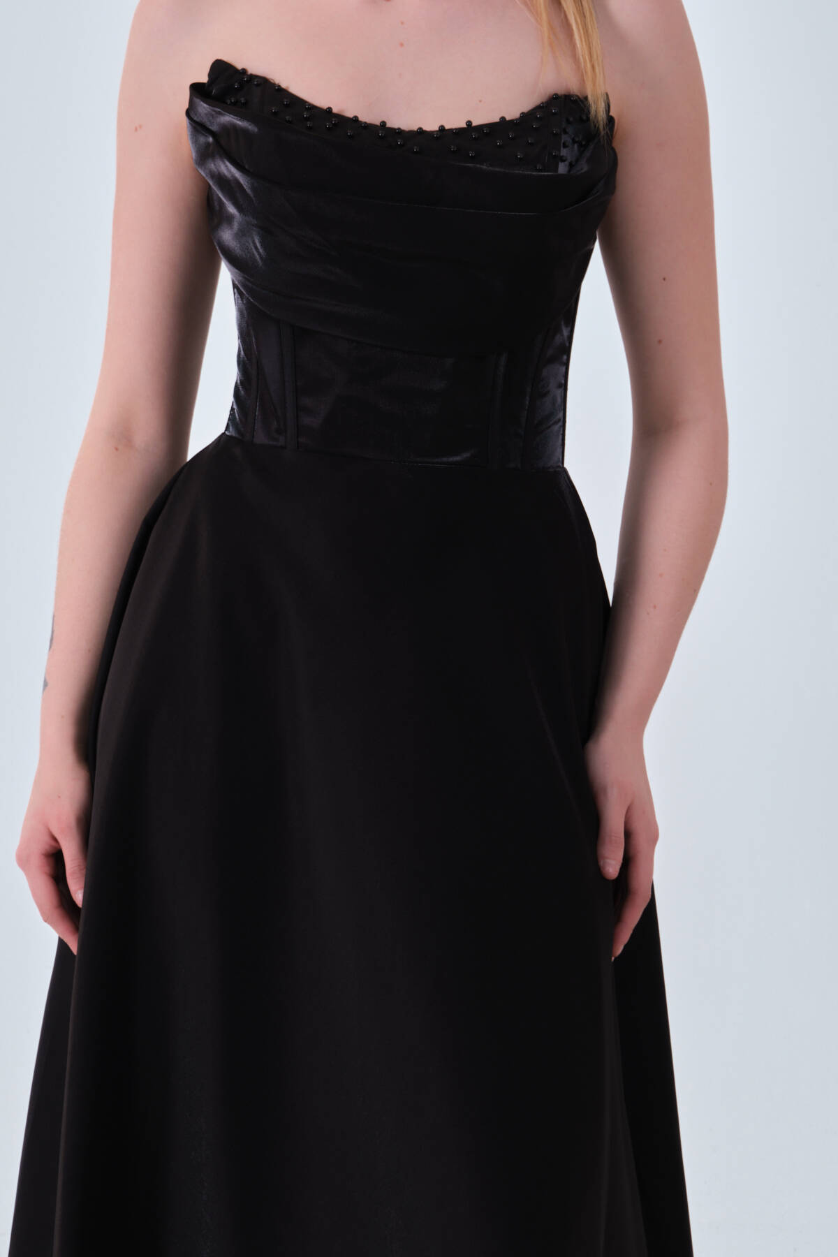 Siyah Yaka Boncuk Detaylı Drapeli Abiye 0801087.01