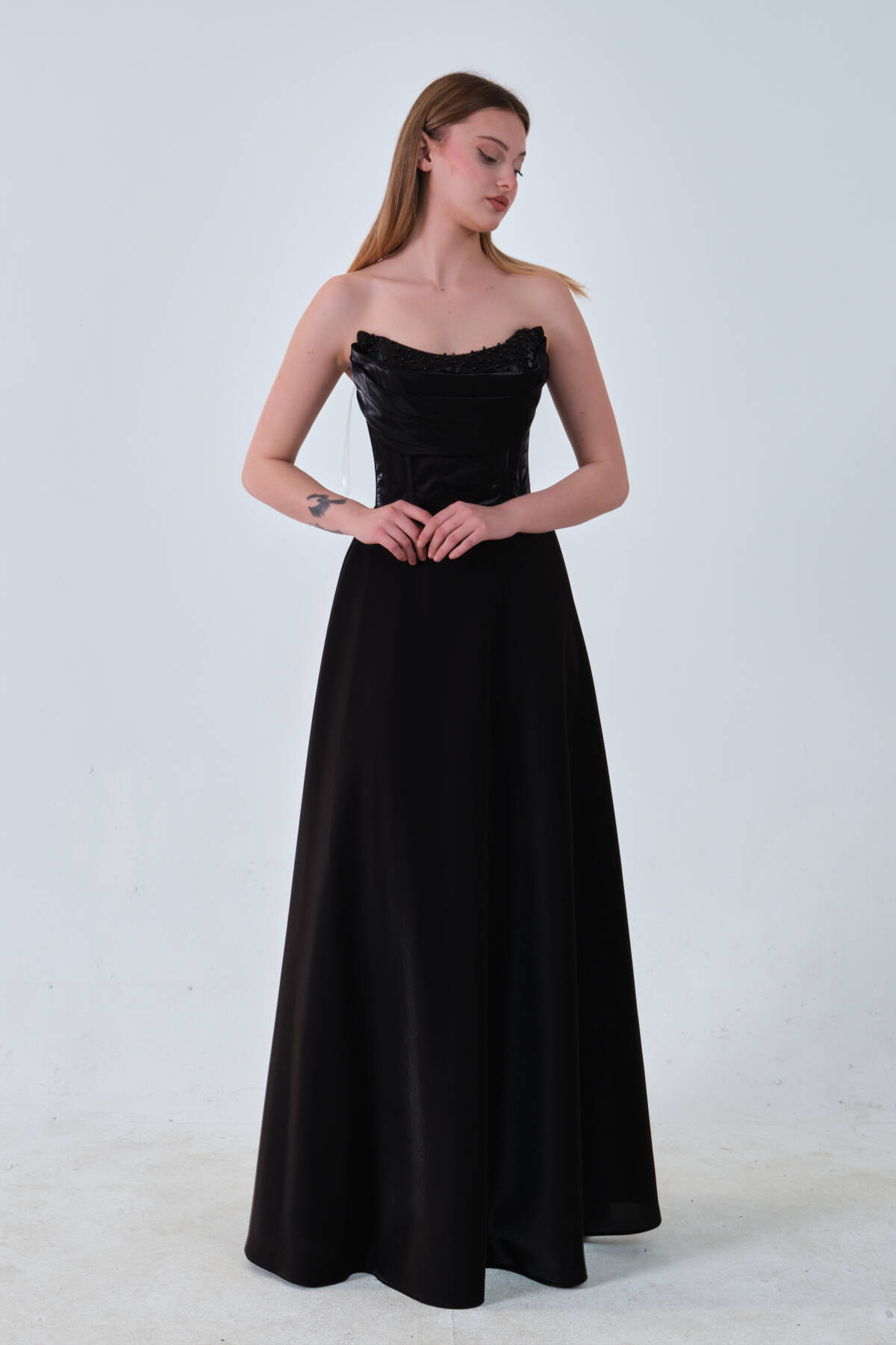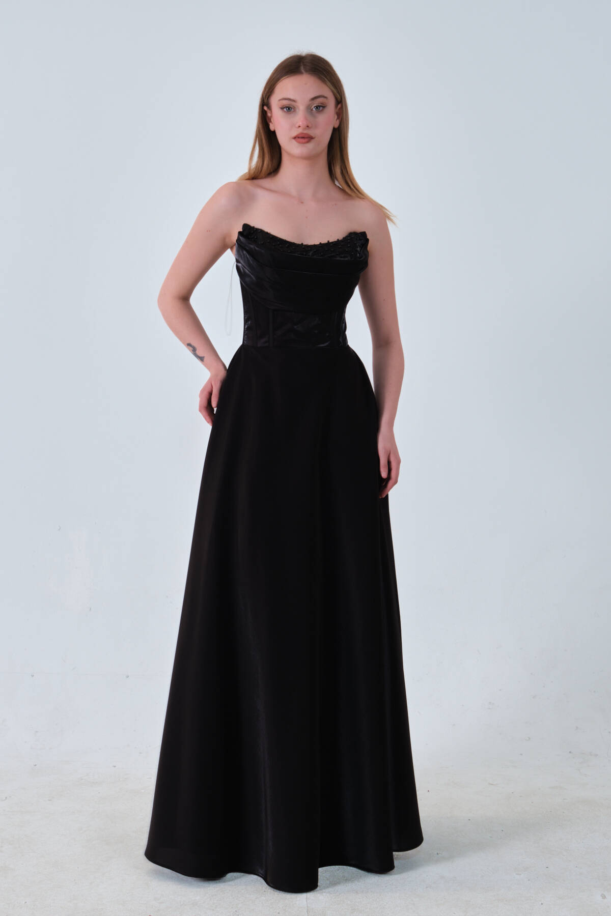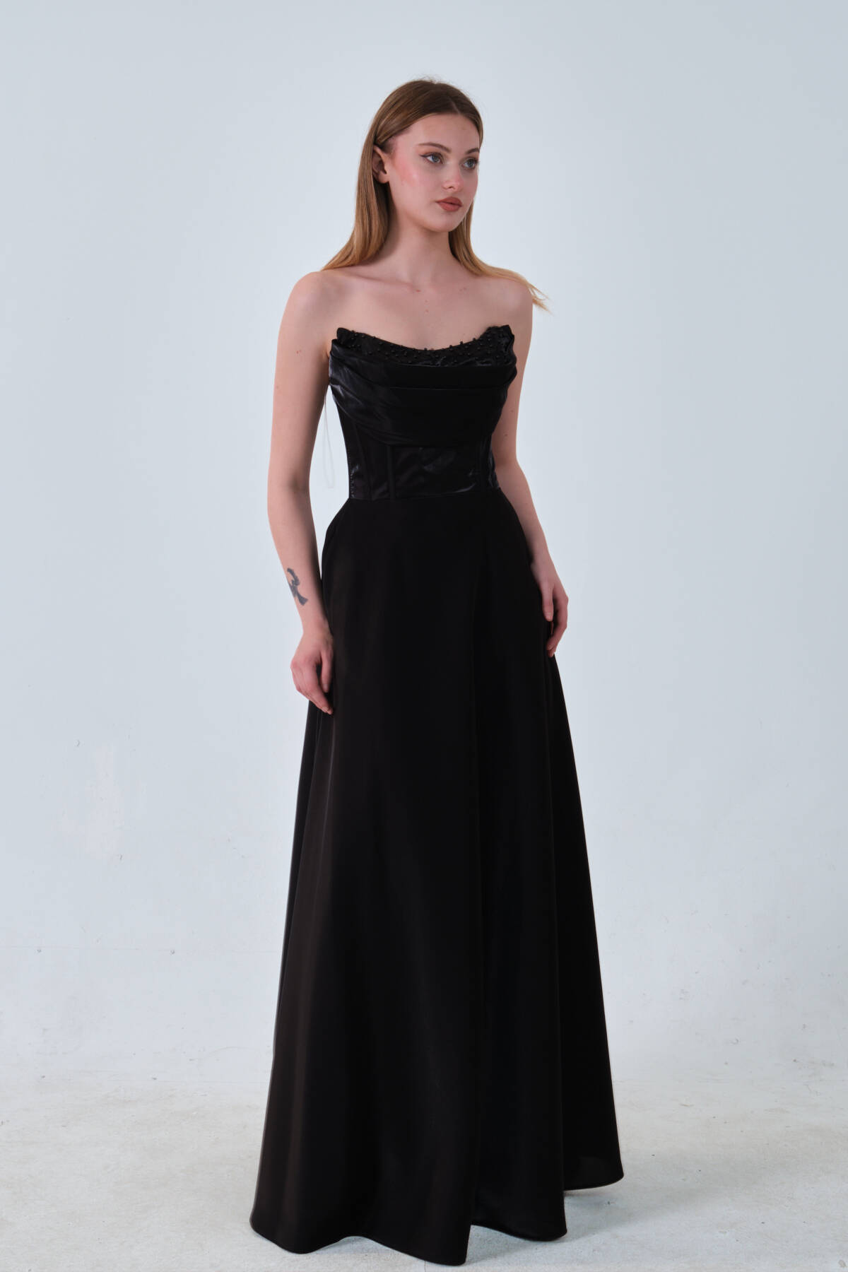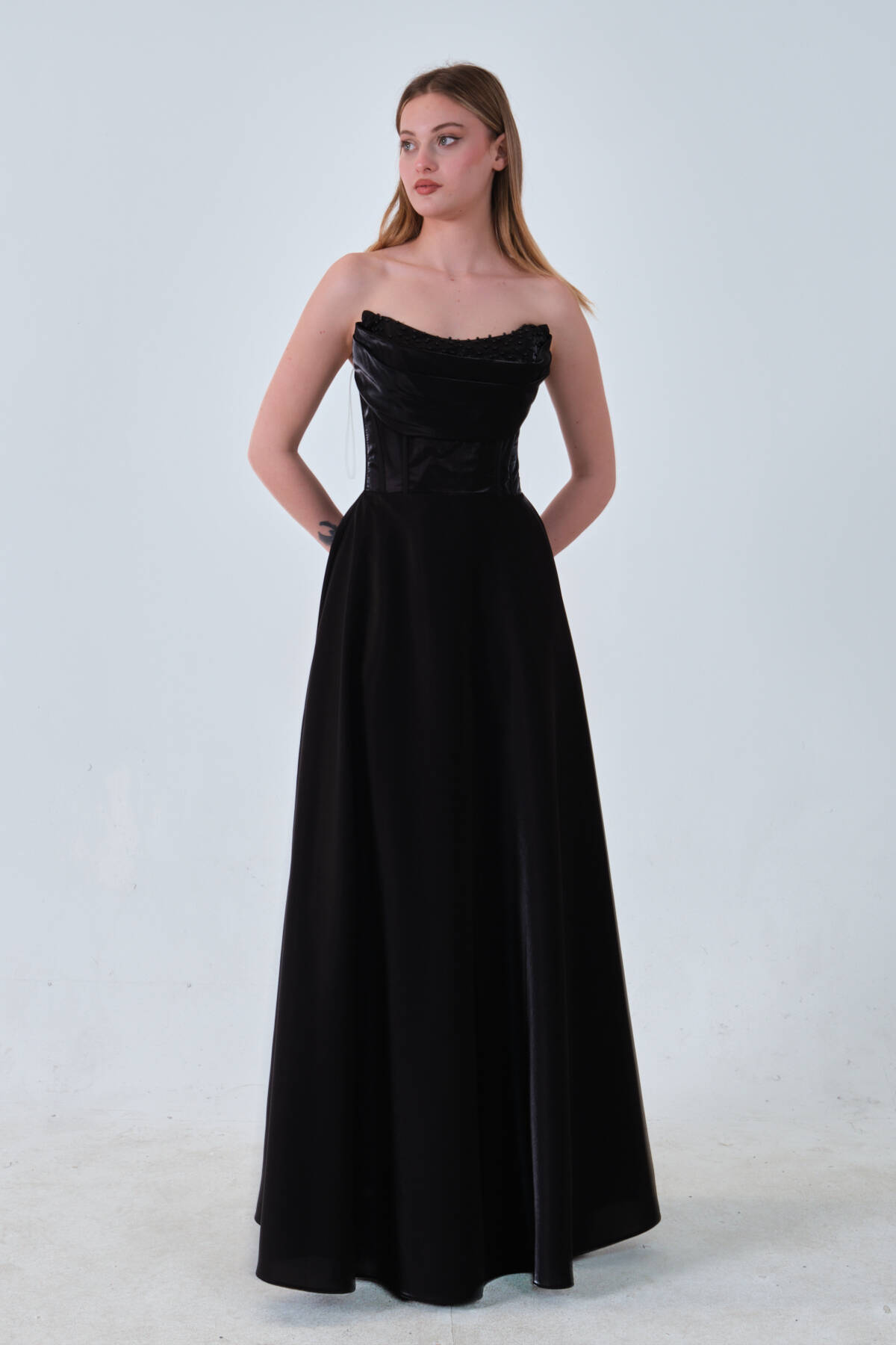 Siyah Yaka Boncuk Detaylı Drapeli Abiye 0801087.01