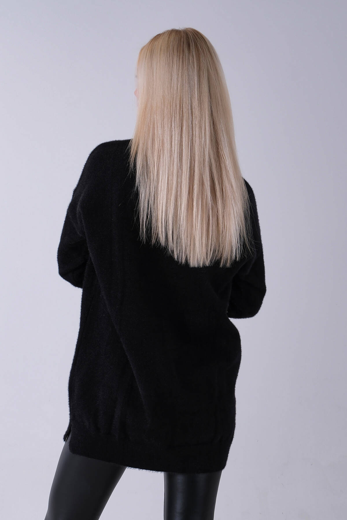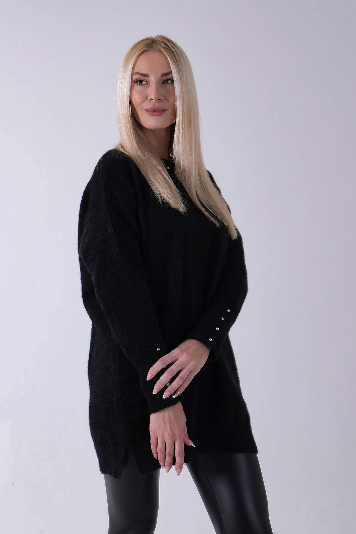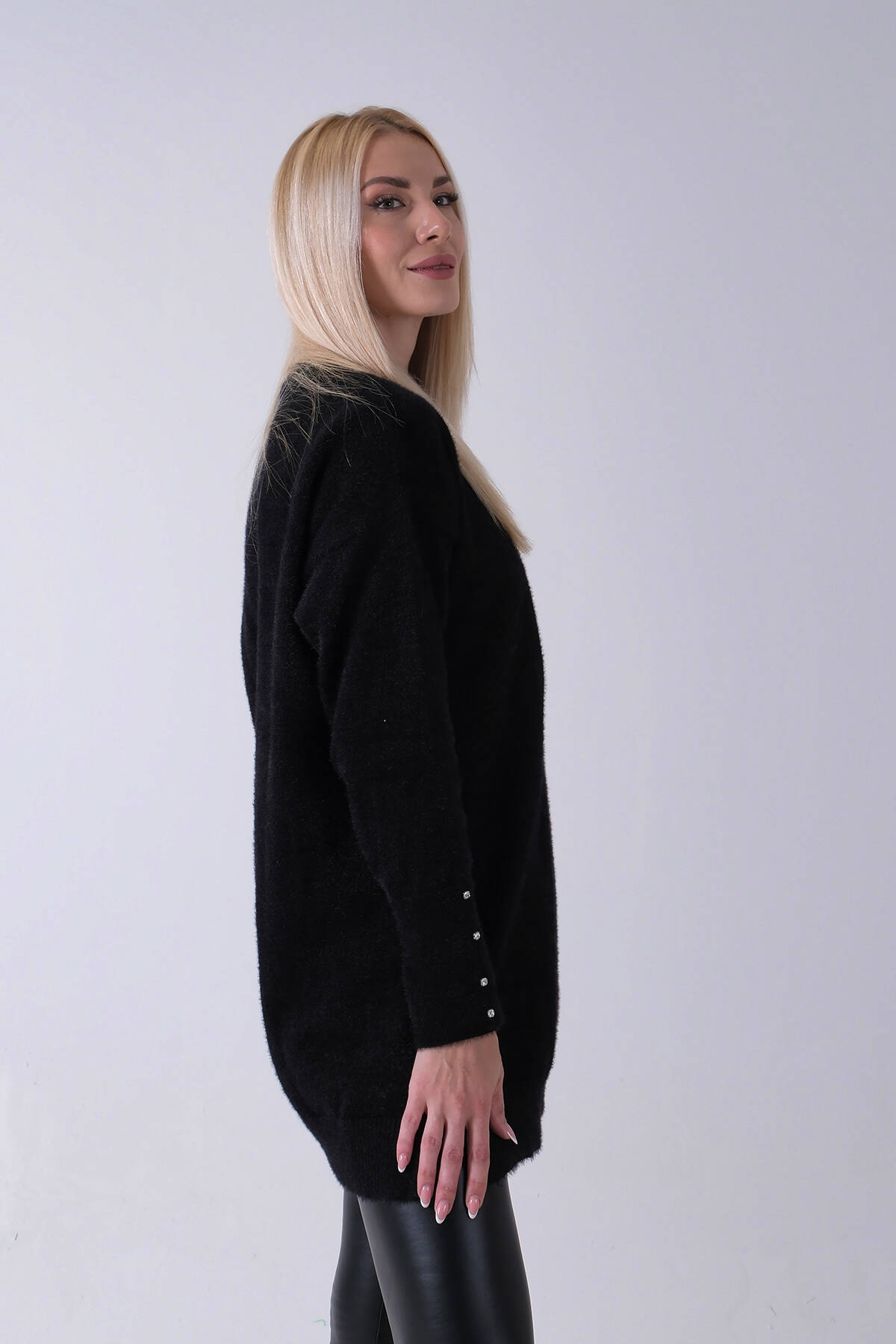 Mürdüm Yaka ve Kolları Taş Detaylı Bisiklet Yaka Kazak 44530206.21