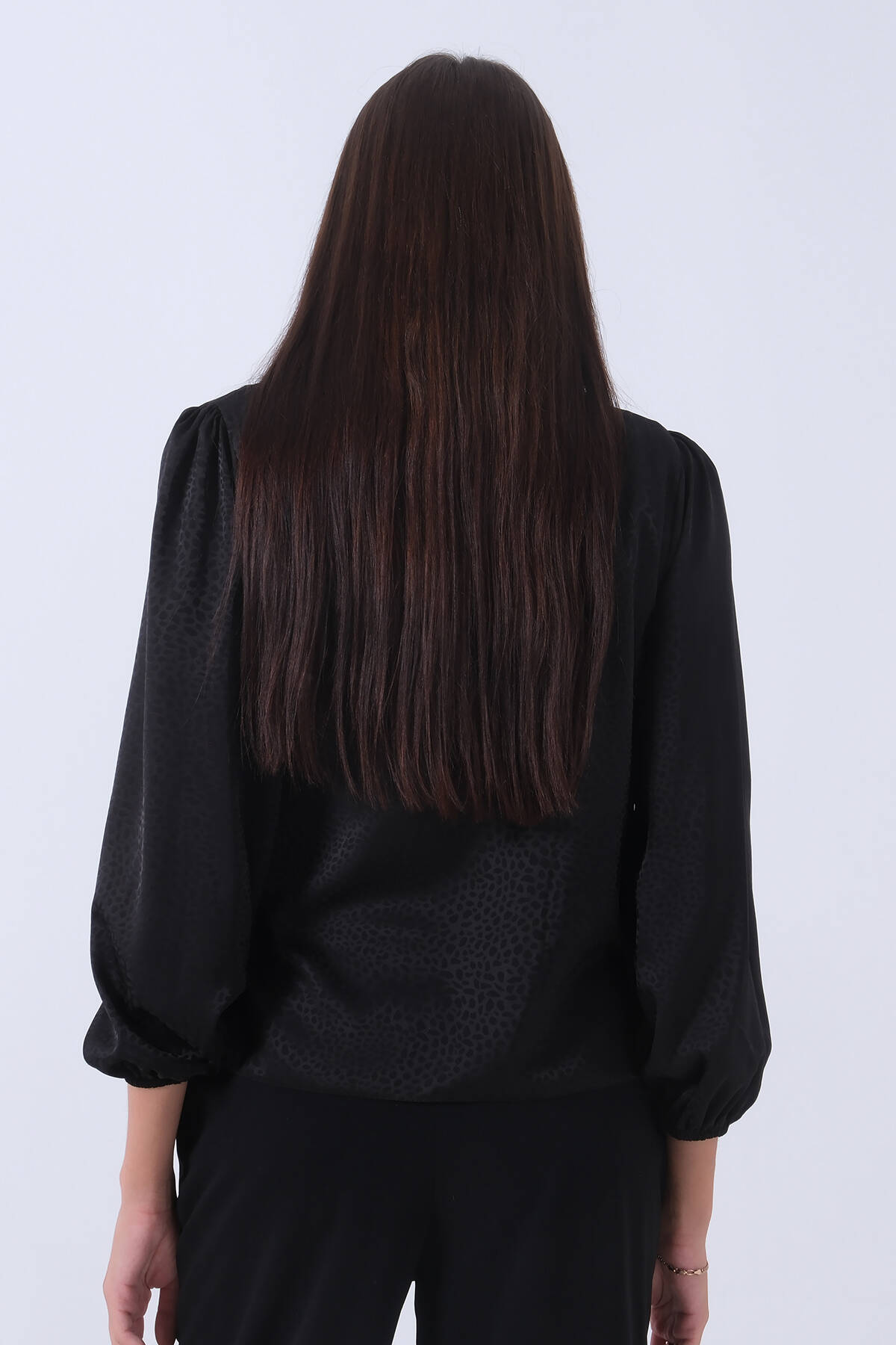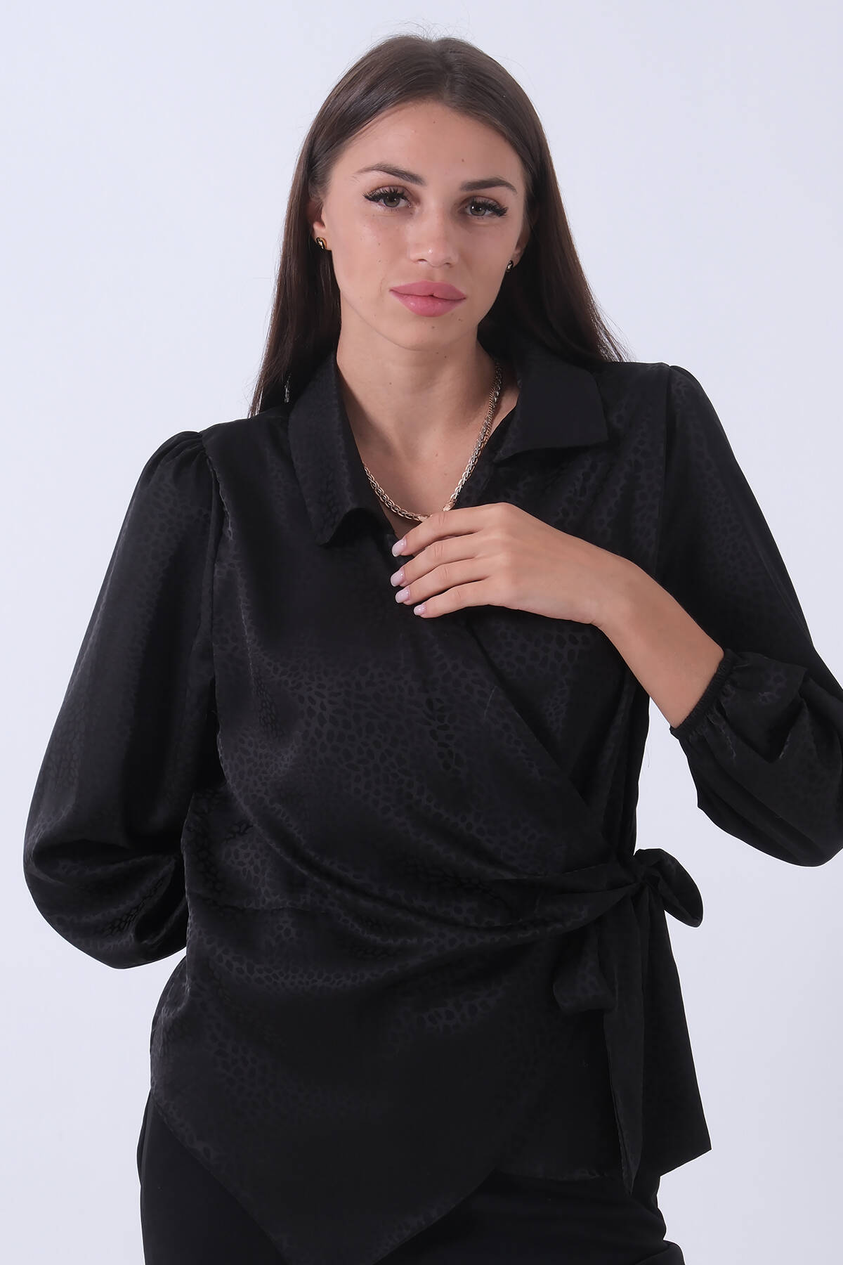 Siyah Yandan Bağlama Detaylı Bluz Gömlek 41620075.01