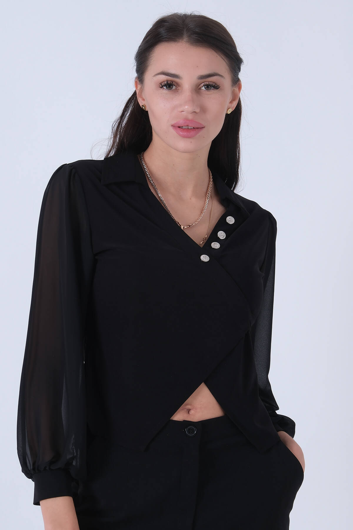Siyah Önü 4 Düğme Detaylı Taş İşlemeli Bluz 4202891.01