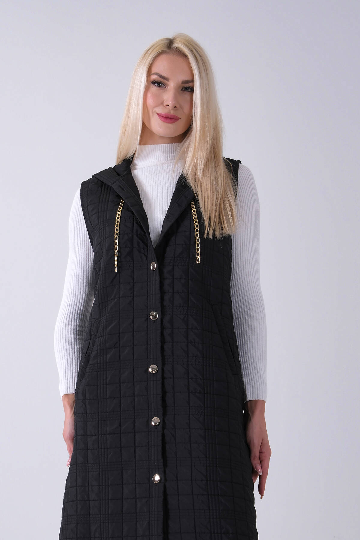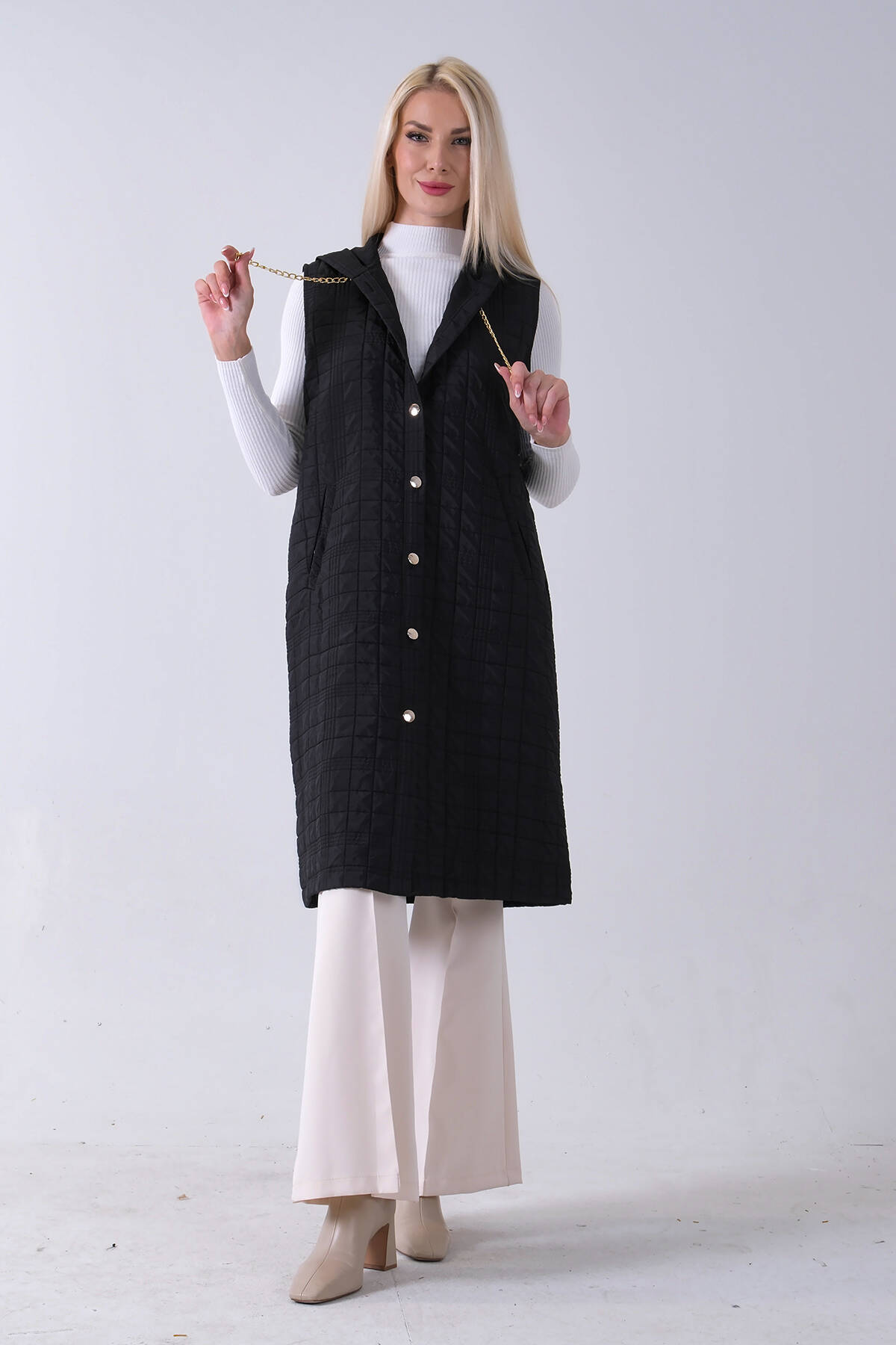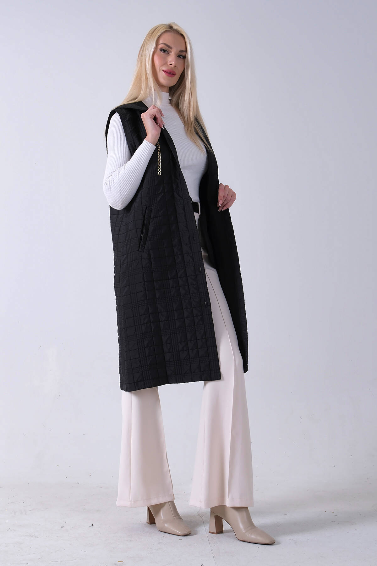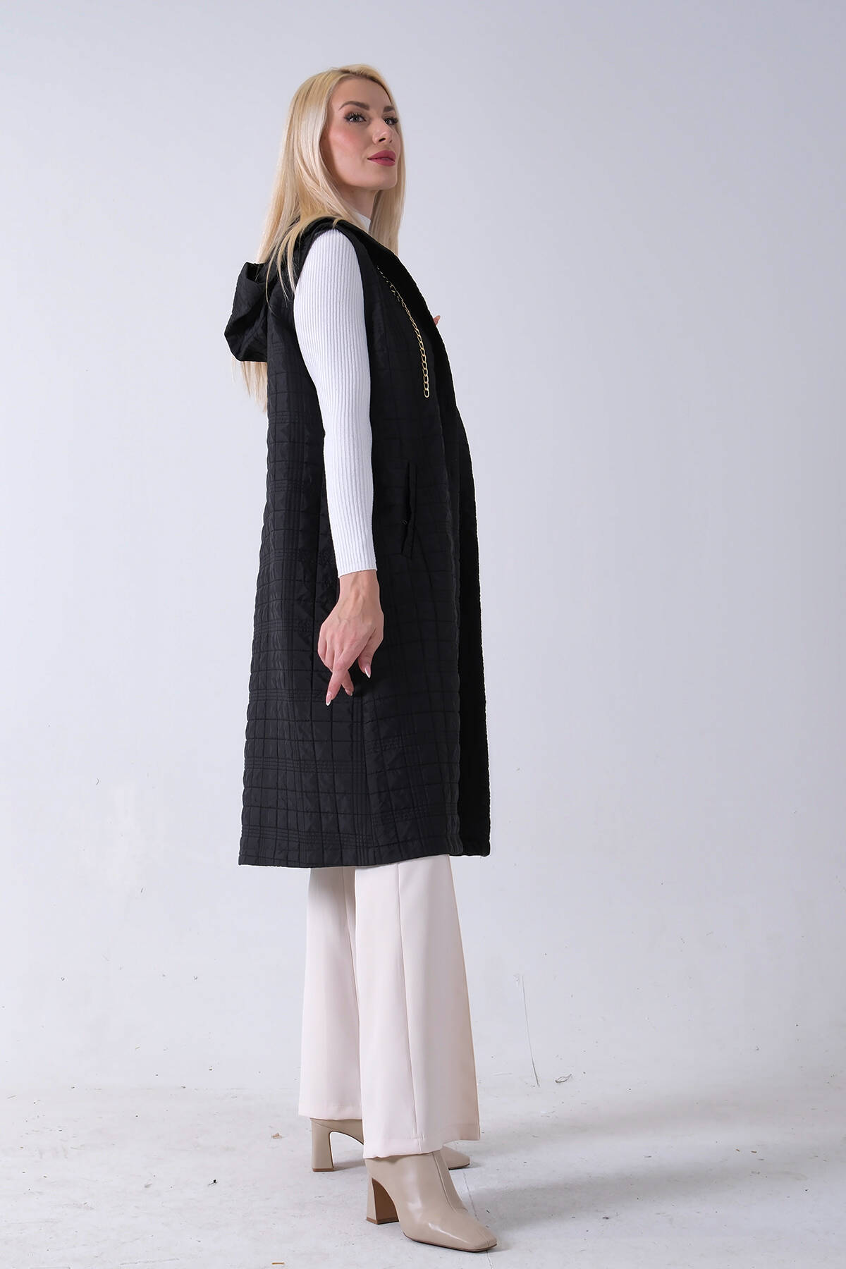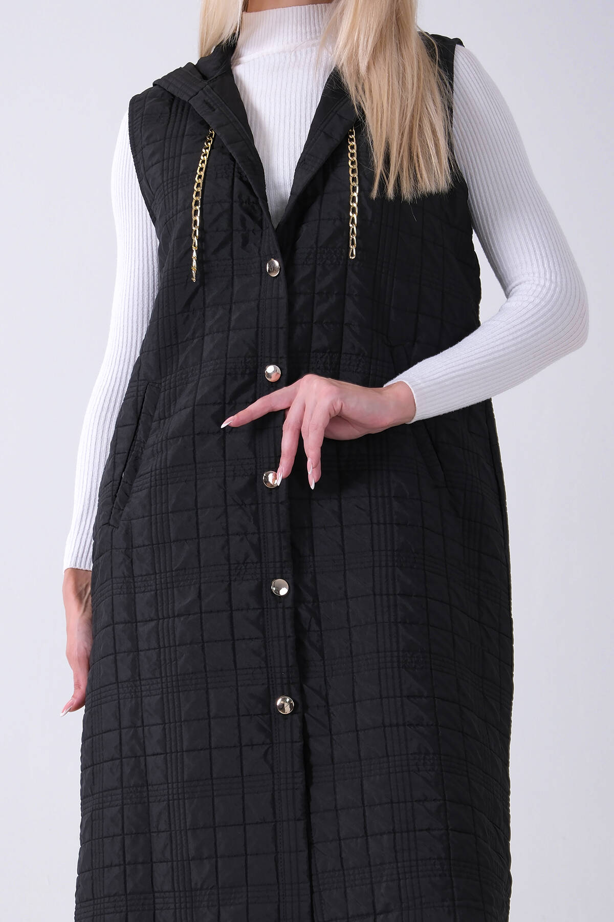 Siyah Zincir Detaylı Fleto Cepli Kapitone Yelek 31070195.01