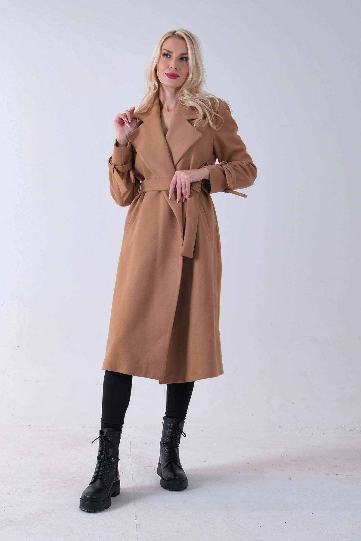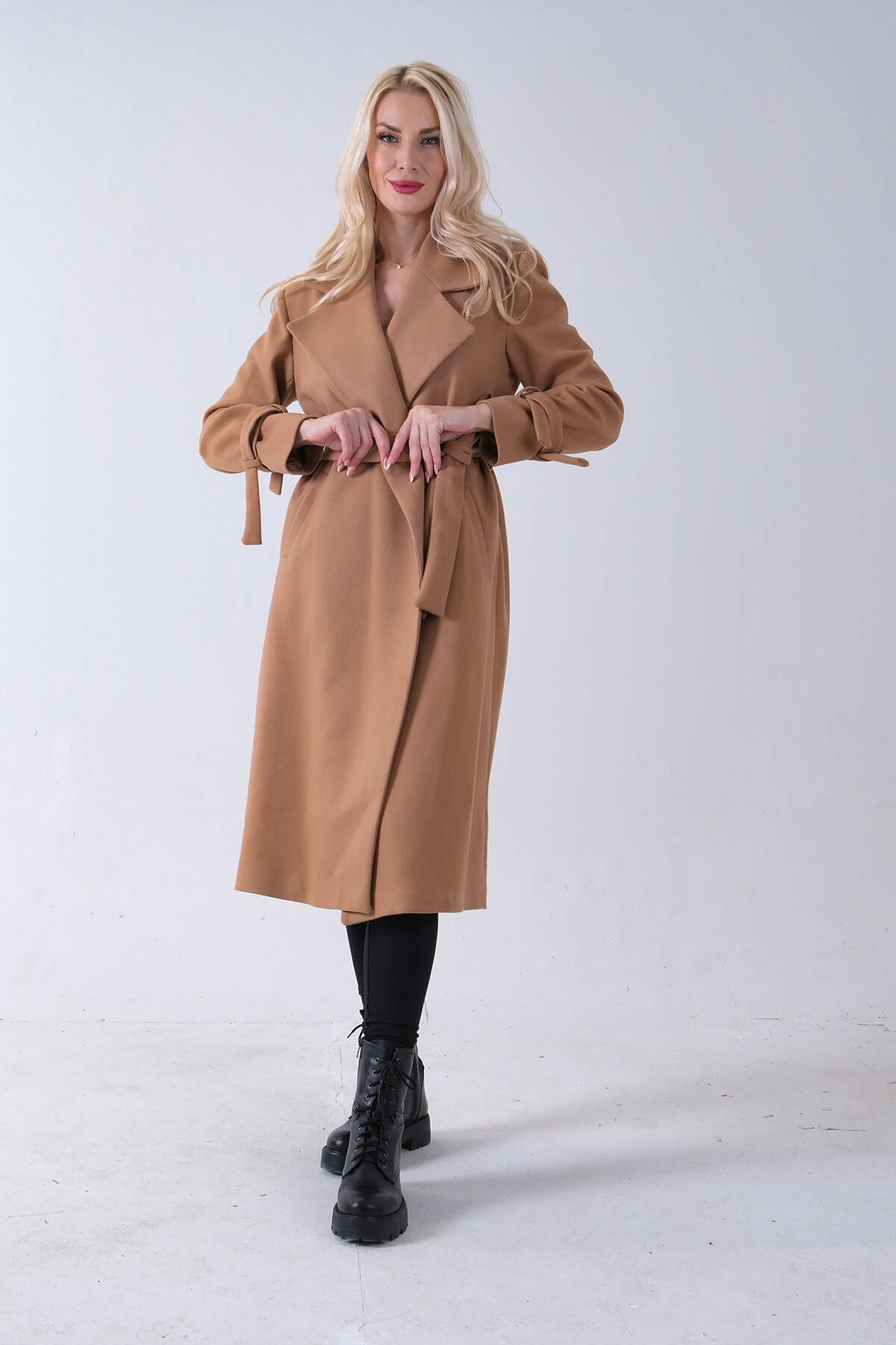 Camel Kol Bağlamalı Seyyar Kuşaklı Uzun Kaşe Kaban 41630051.09